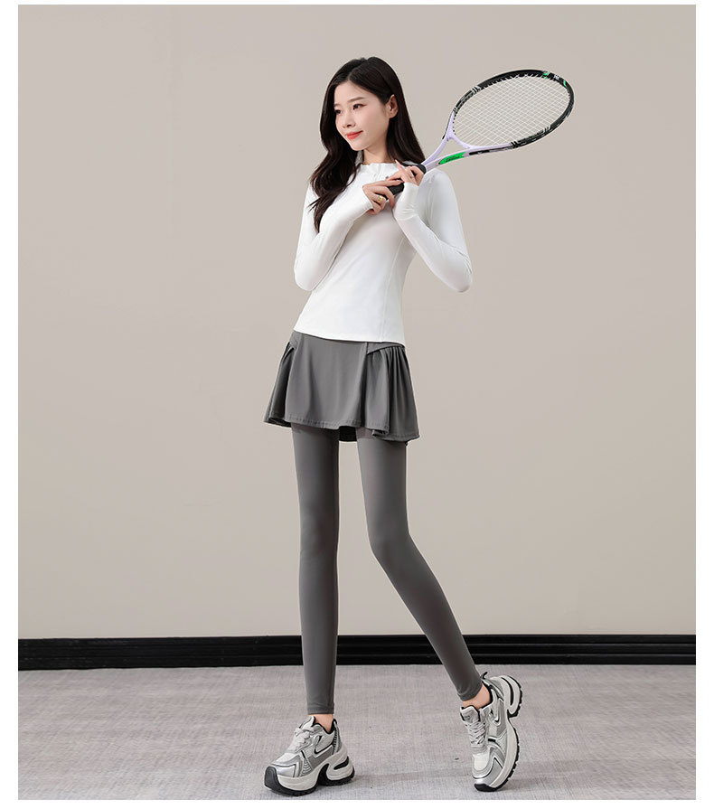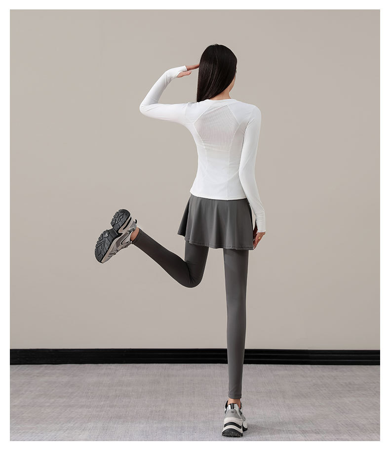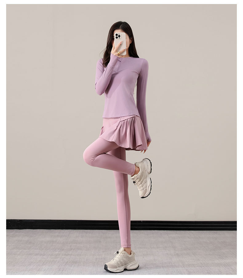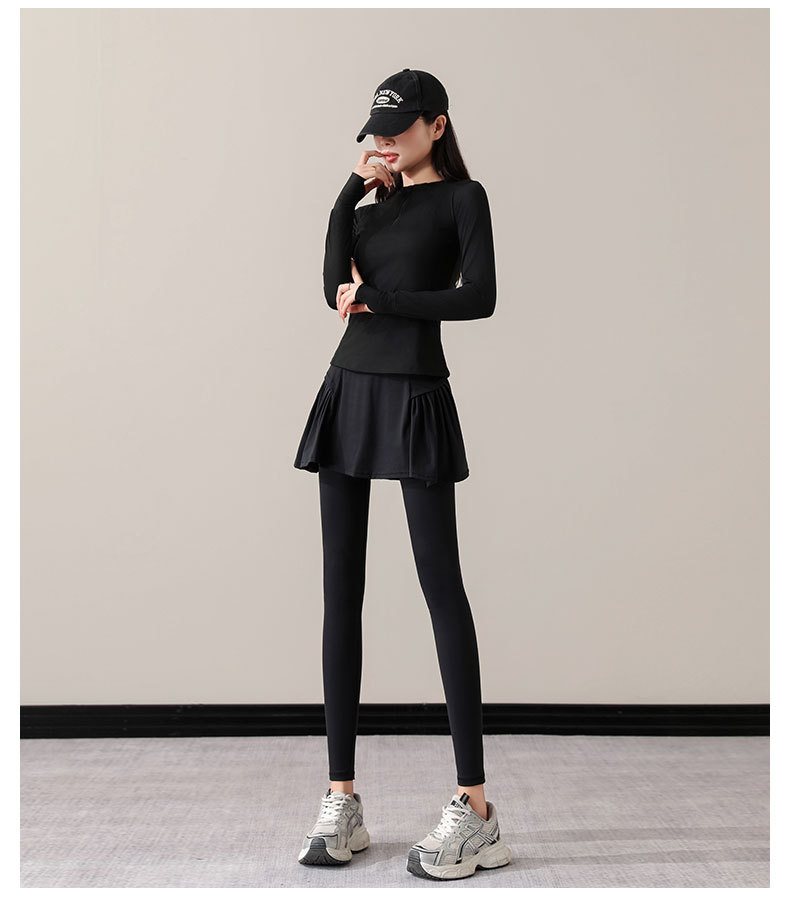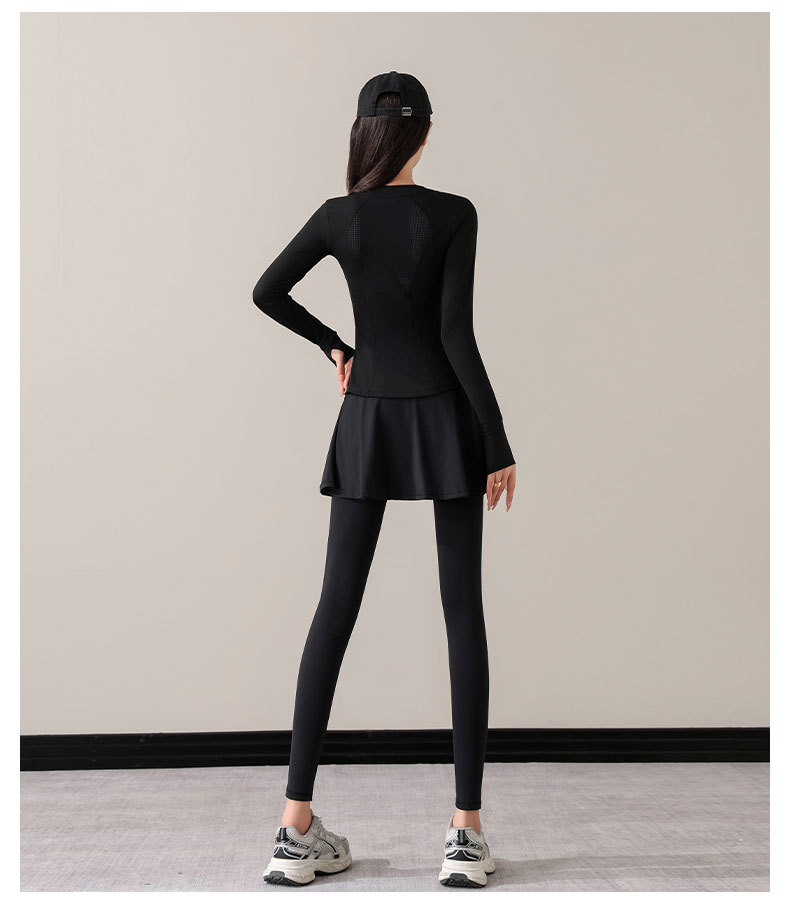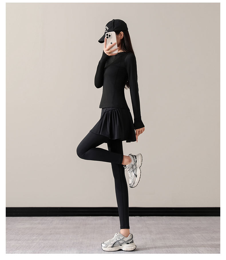 テニス服女性秋冬ランニングスポーツスーツ2024新型朝ランニング服ファッションヨガスカート長袖フィットネスウェア