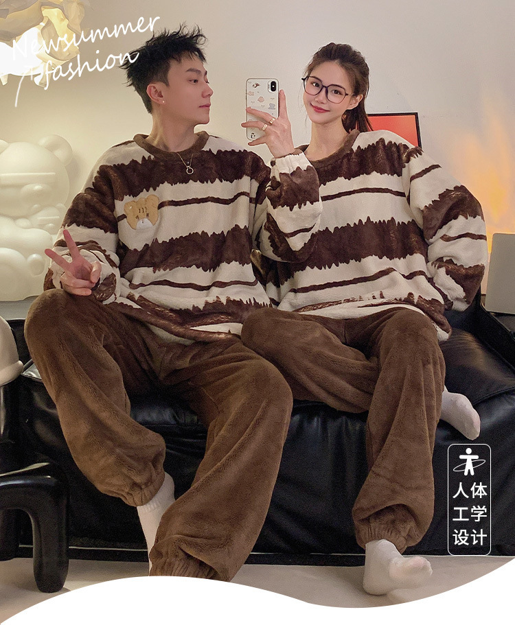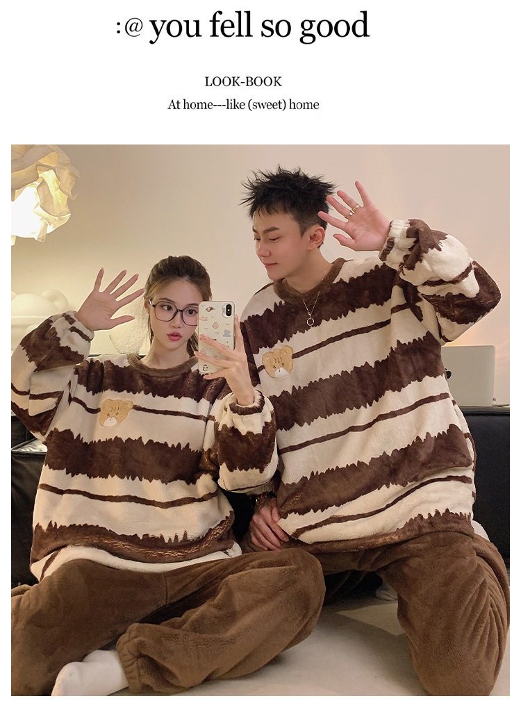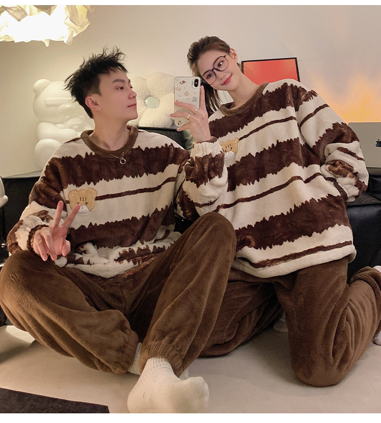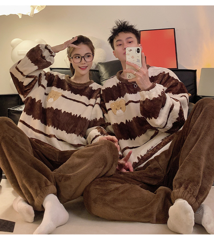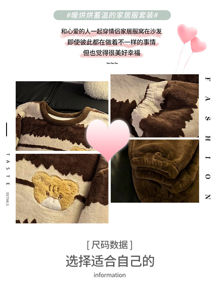秋冬フランネルのカップルのパジャマは女性のサンゴのベルベットの家の服の男性の漫画の冬の新型を厚くします。