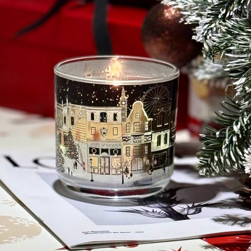 クリスマス香薫ろうそくロンドン街景莎平代金香薫ろうそく光感電子ろうそくクリスマスろうそく