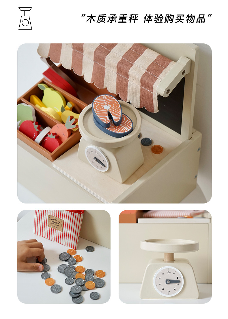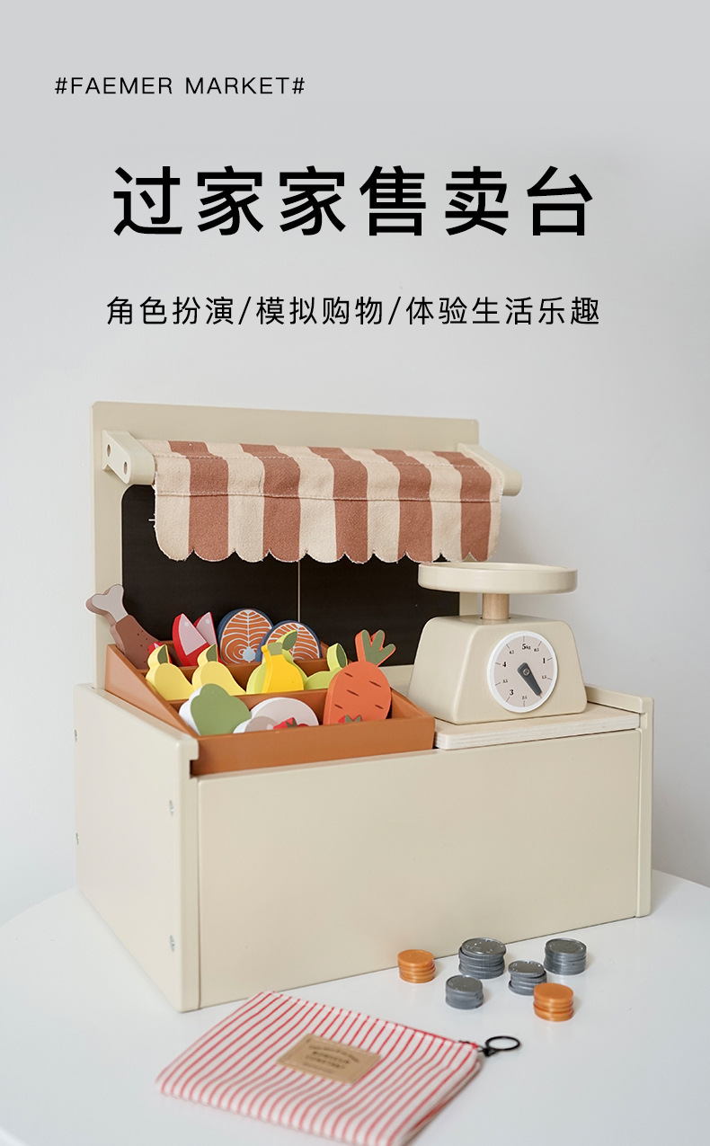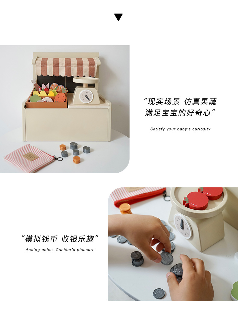 子供の売店のレジのおもちゃのままごとのデスクトップの小さい店の木製のシミュレーションの台所のアイスクリームの販売店