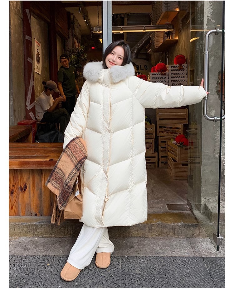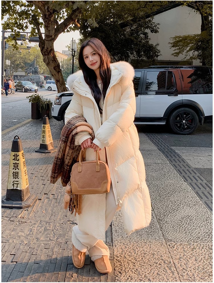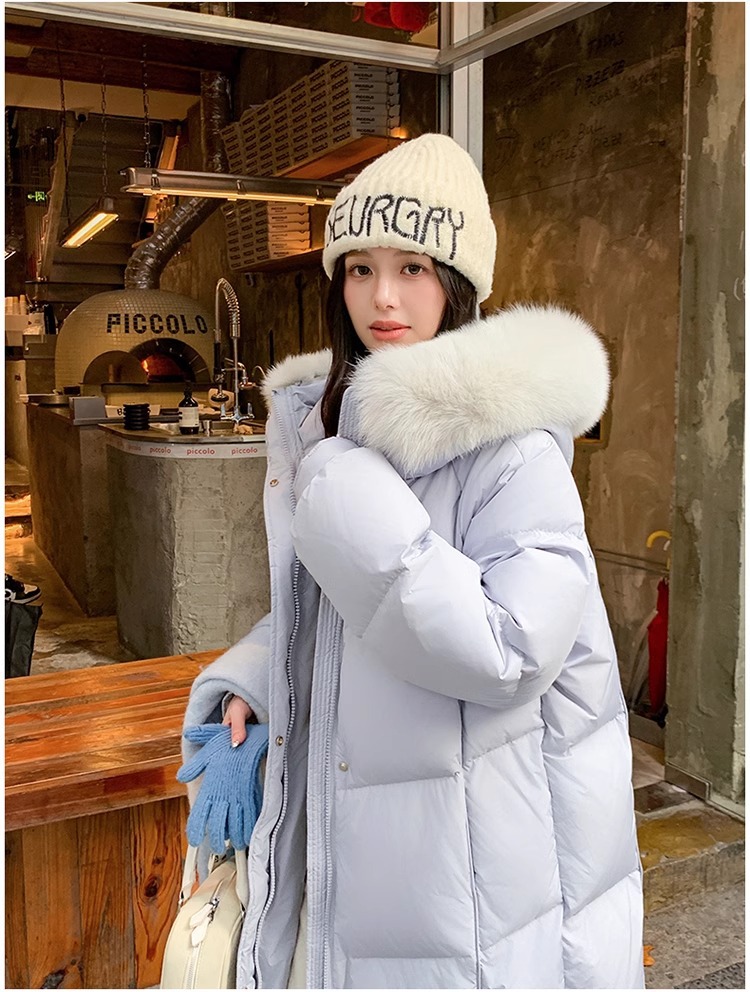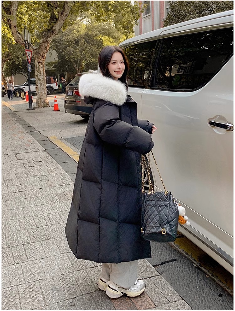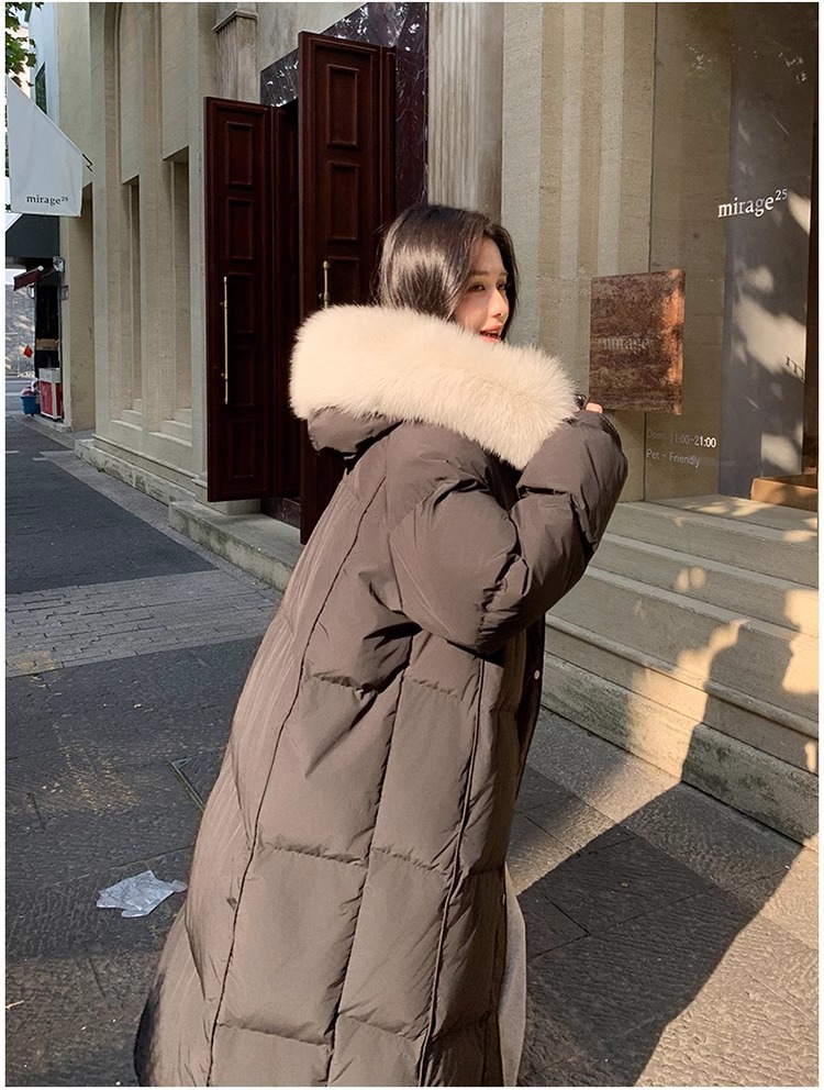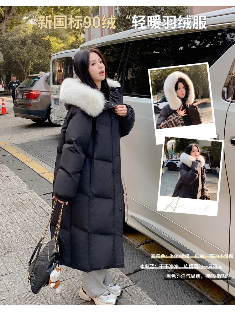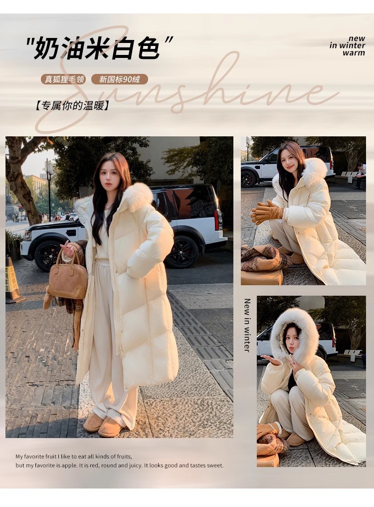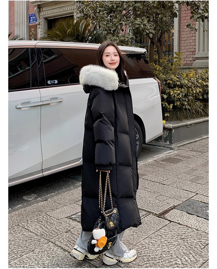 超見栄えの良いグースダウンダウンジャケット女性用25冬新スタイルフォックスファー襟ミルクスリム膝上厚く暖かいジャケット