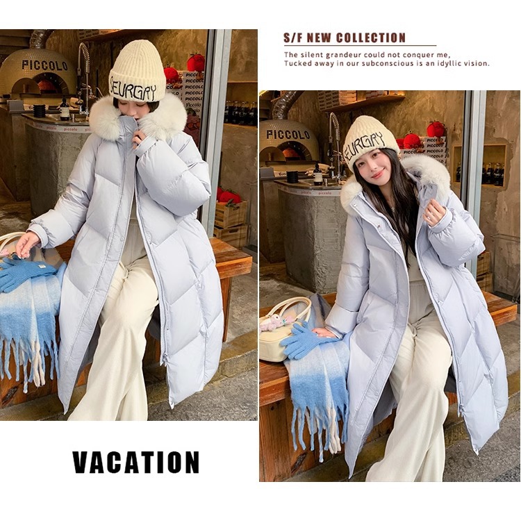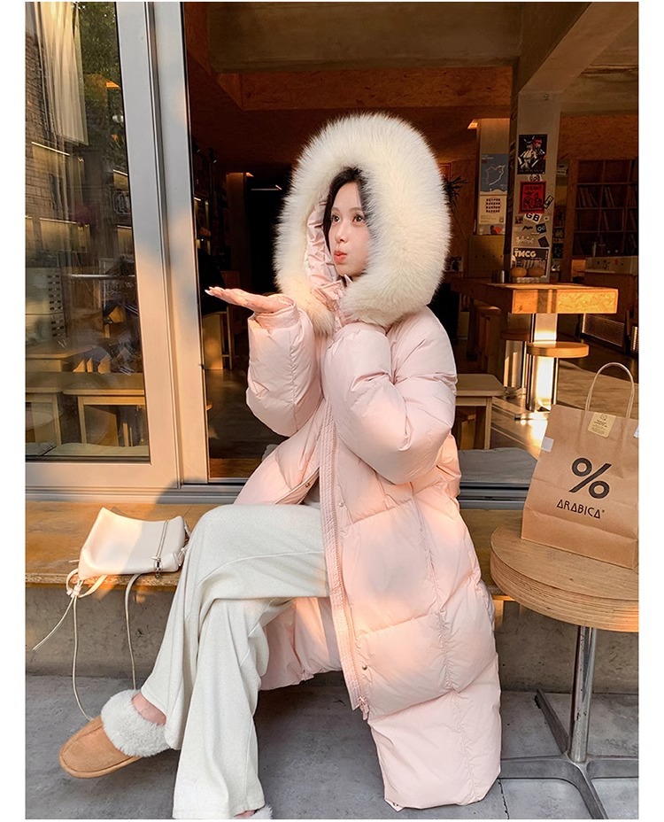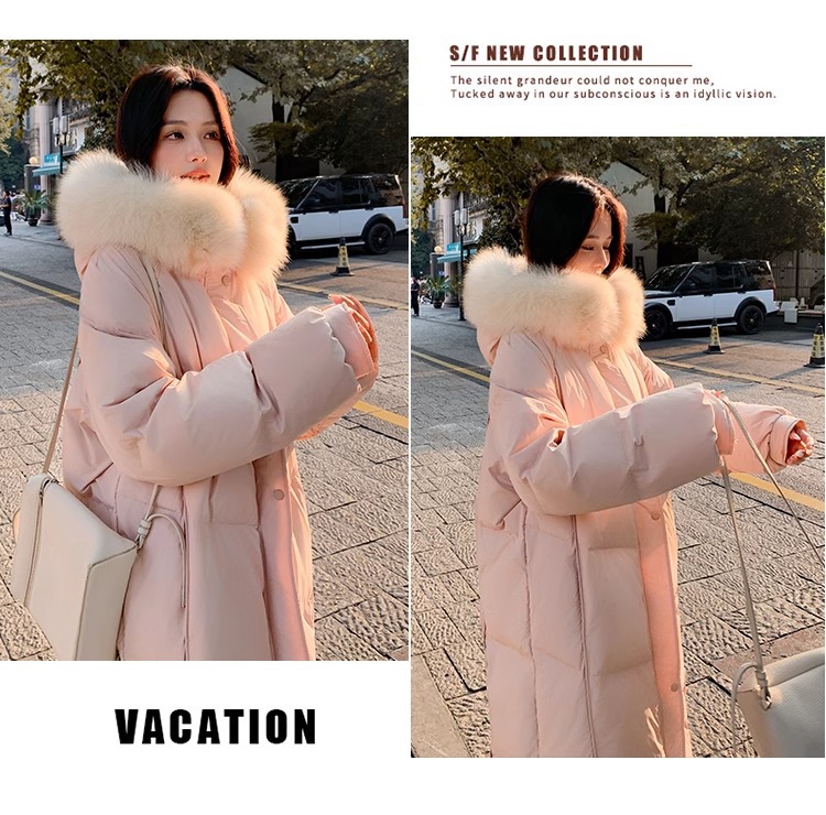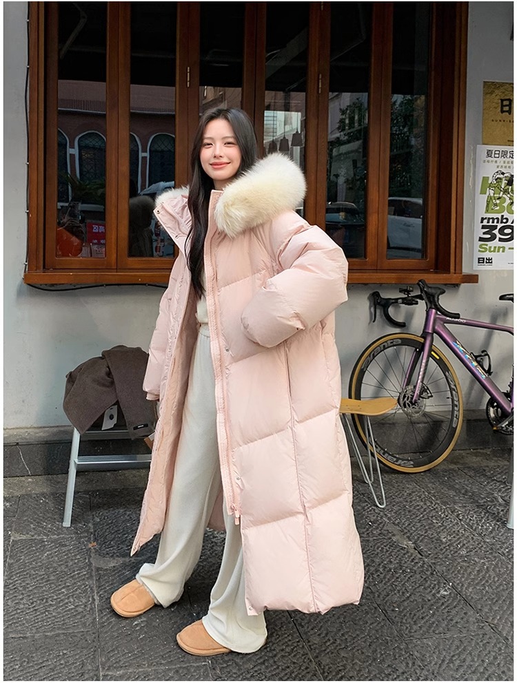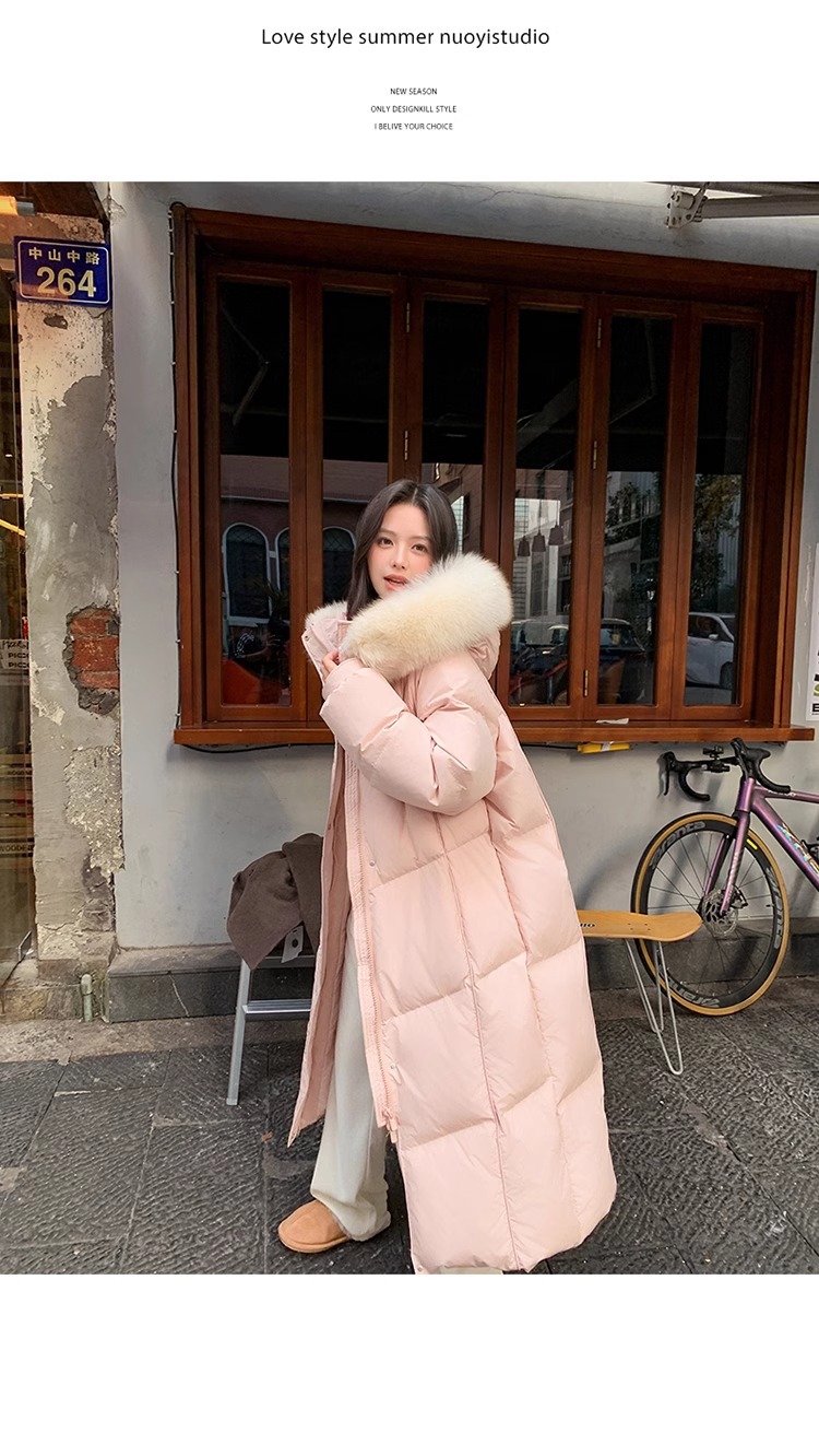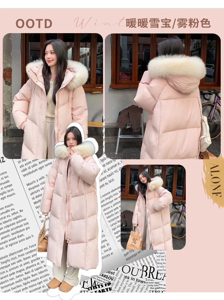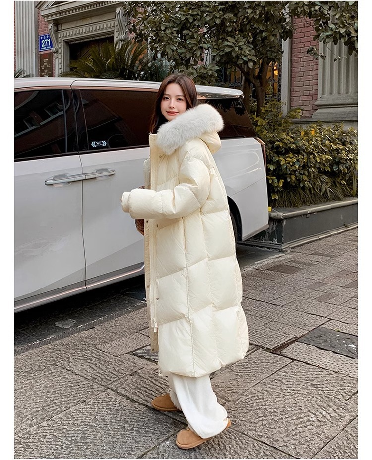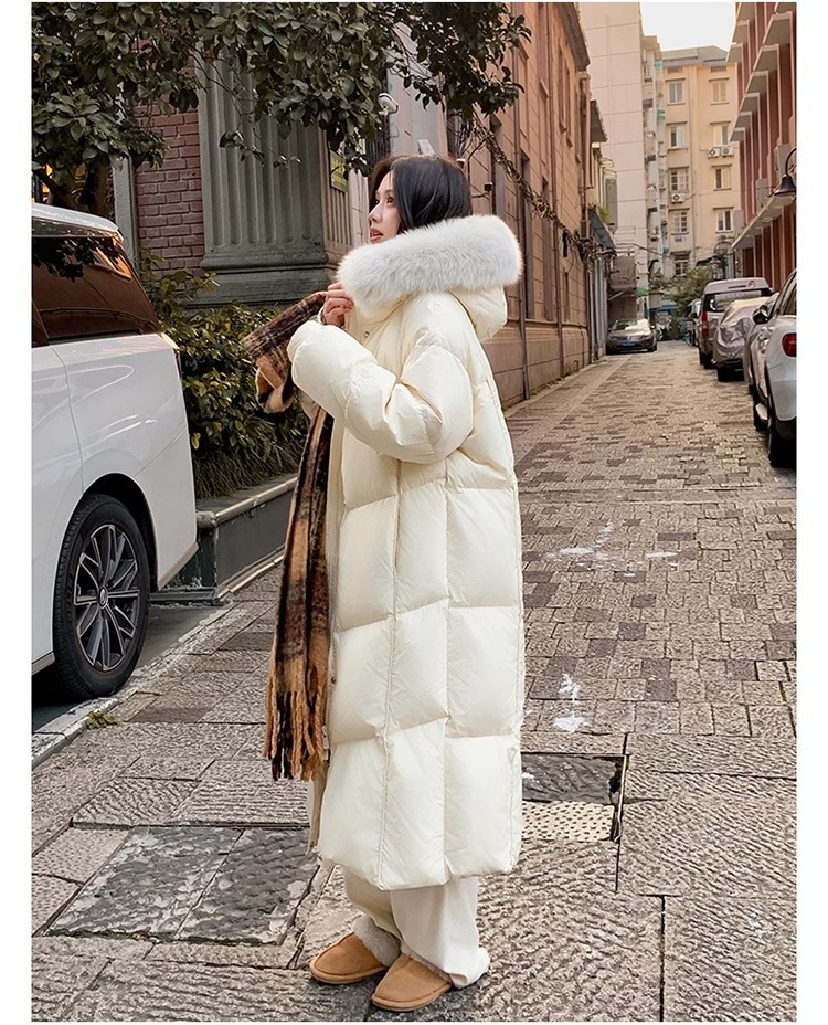 超見栄えの良いグースダウンダウンジャケット女性用25冬新スタイルフォックスファー襟ミルクスリム膝上厚く暖かいジャケット