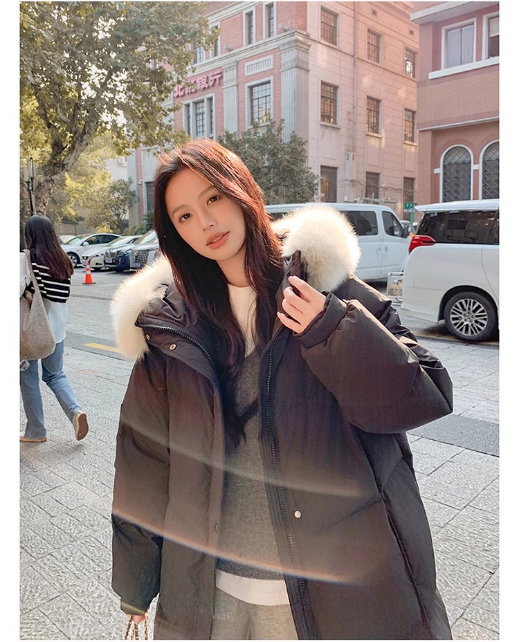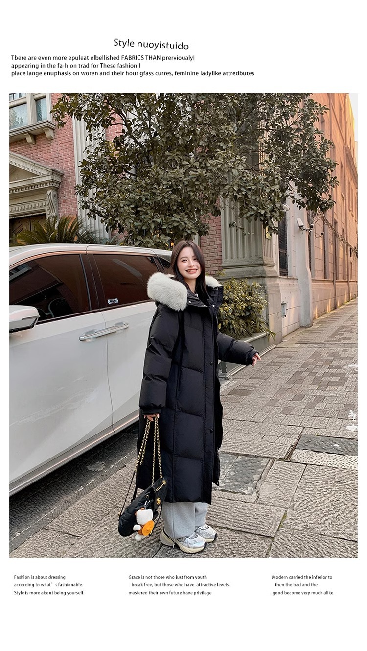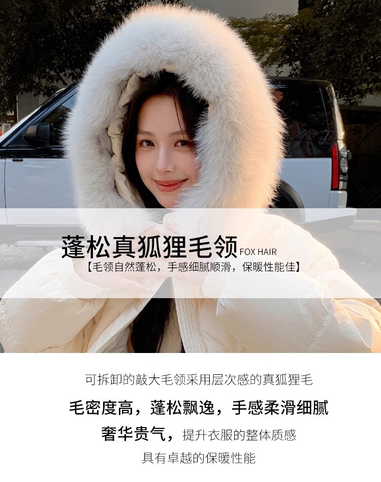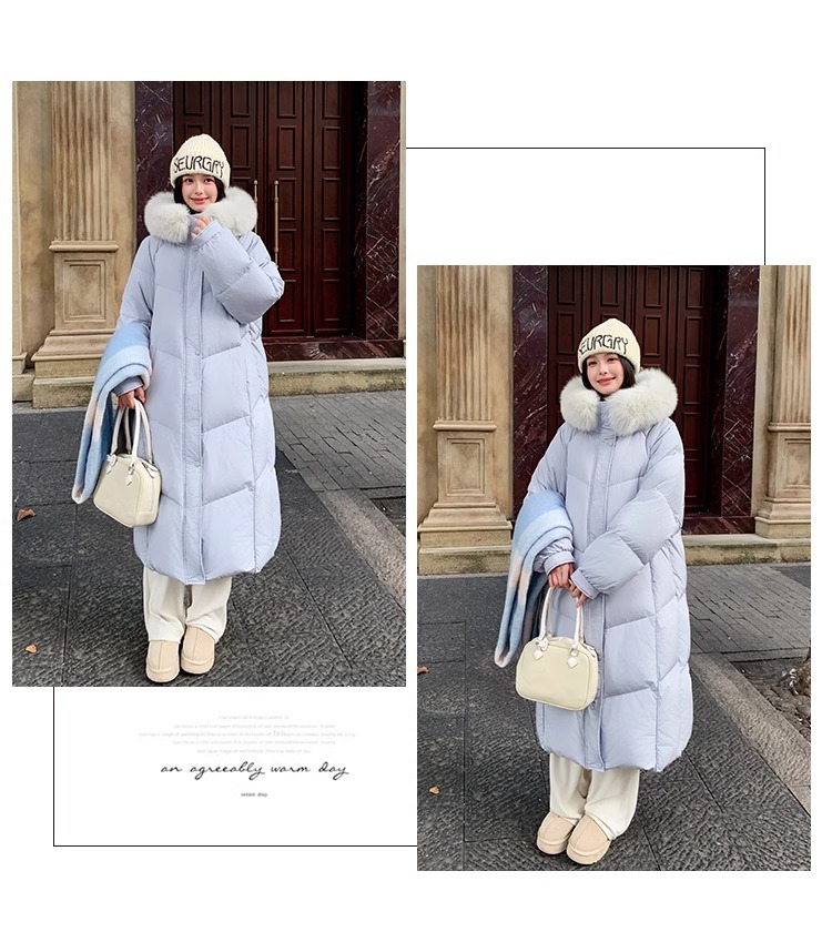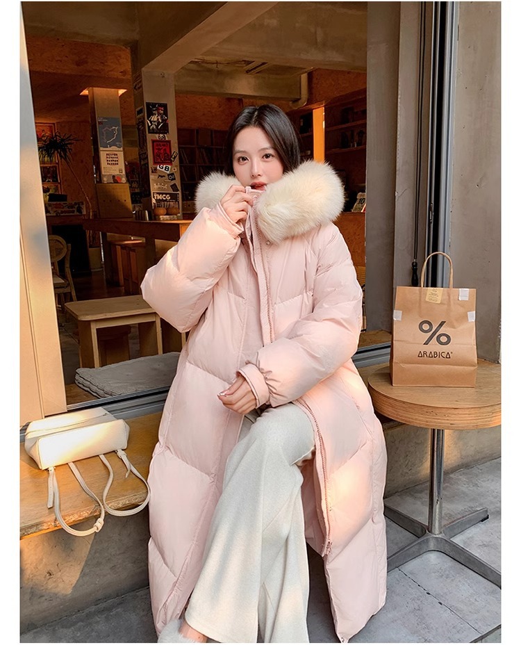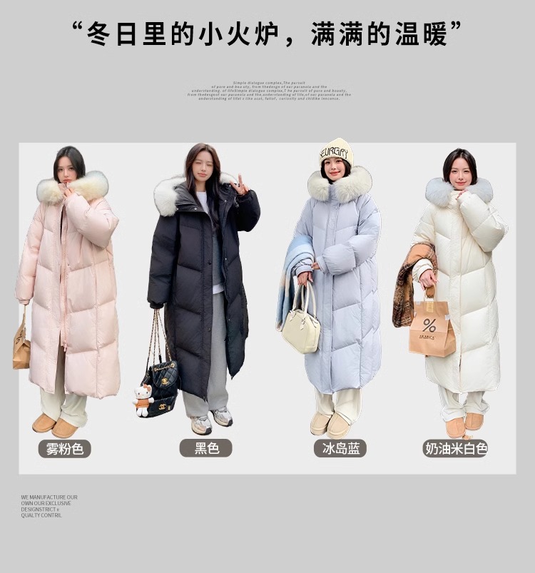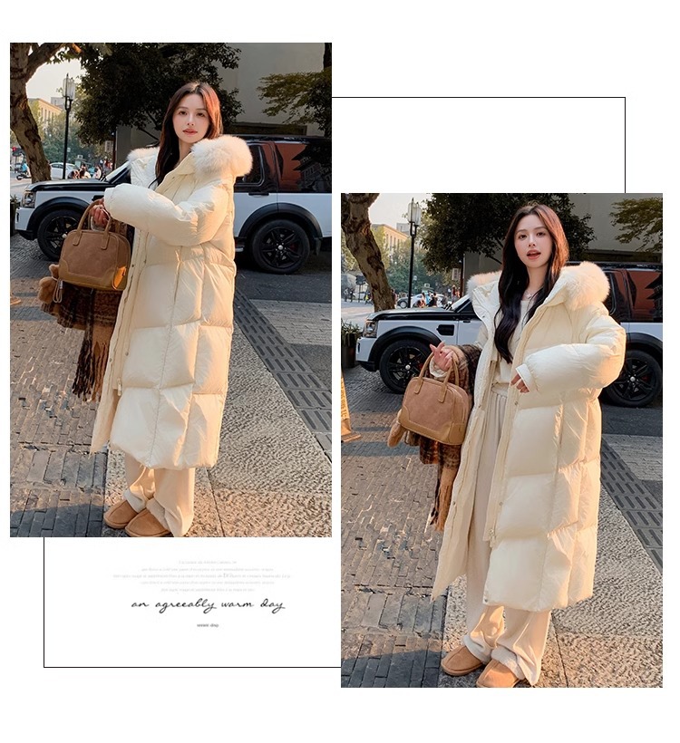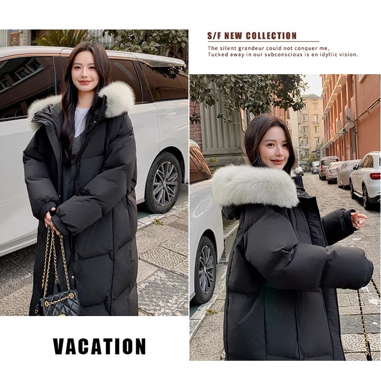 超見栄えの良いグースダウンダウンジャケット女性用25冬新スタイルフォックスファー襟ミルクスリム膝上厚く暖かいジャケット