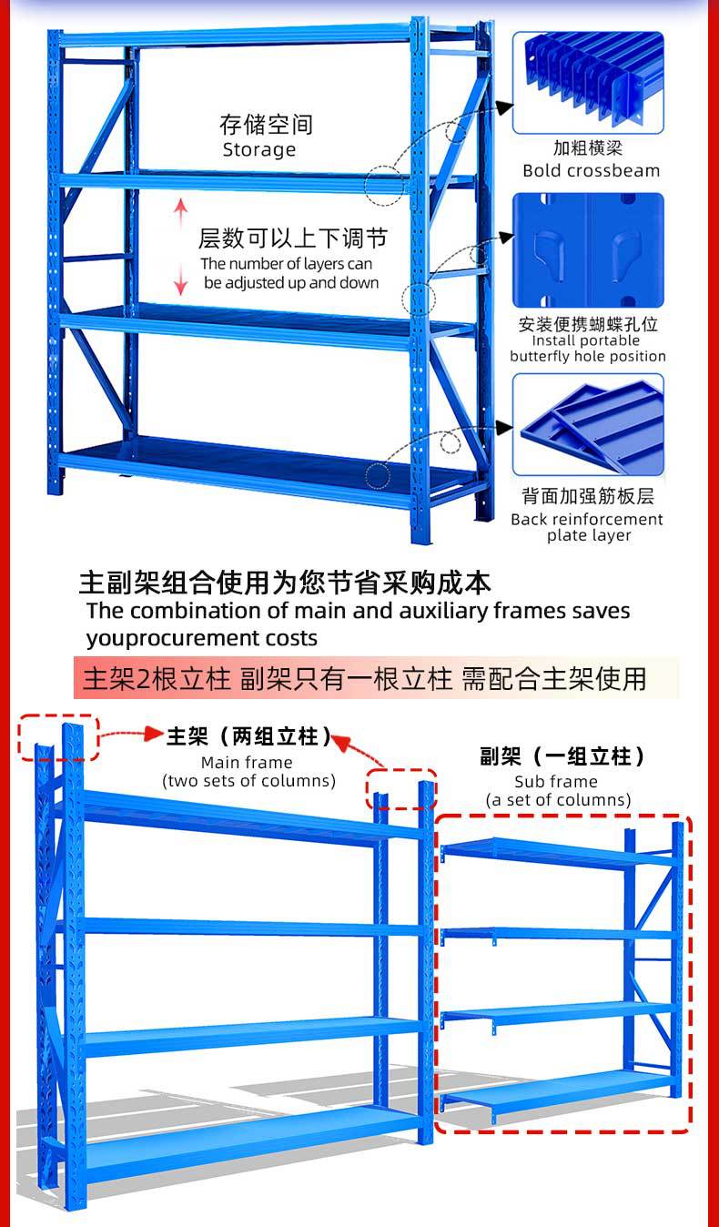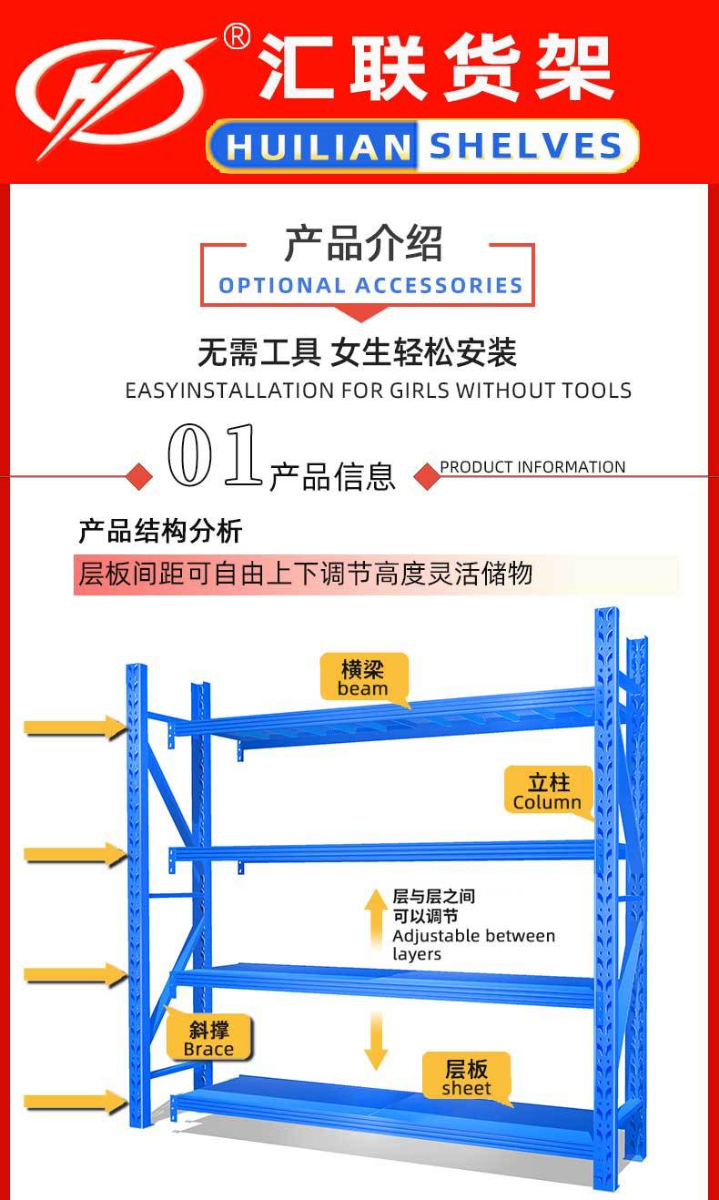 広州倉庫棚工場作業場収納棚、速達物流鉄製棚、中型・重量級倉庫棚収納棚