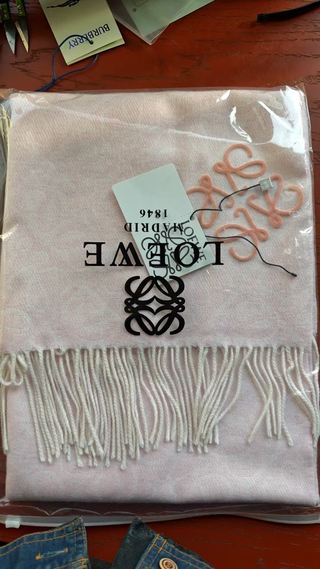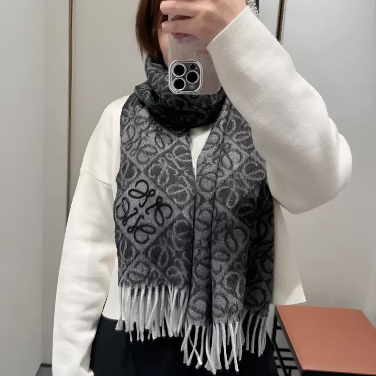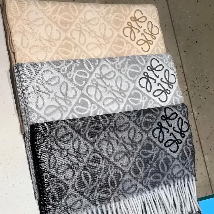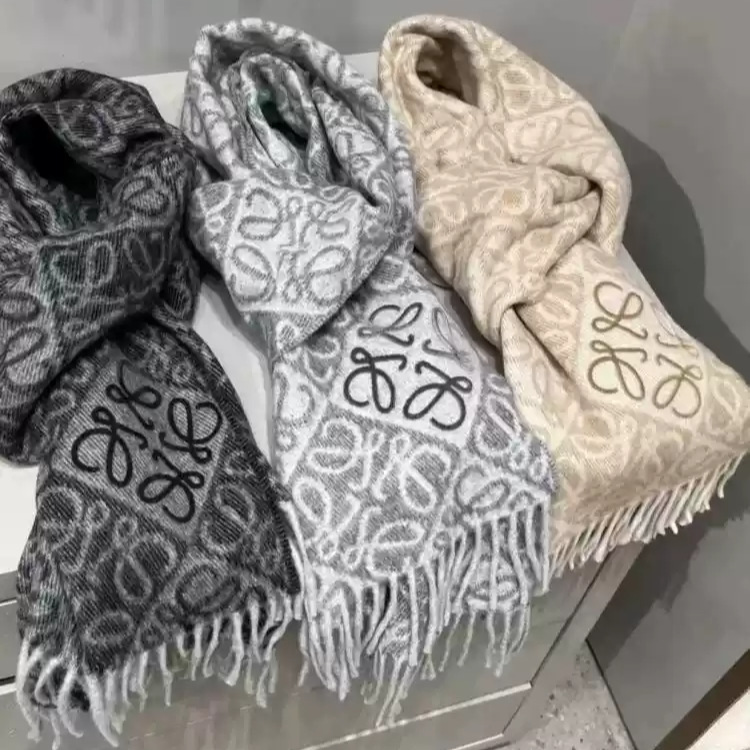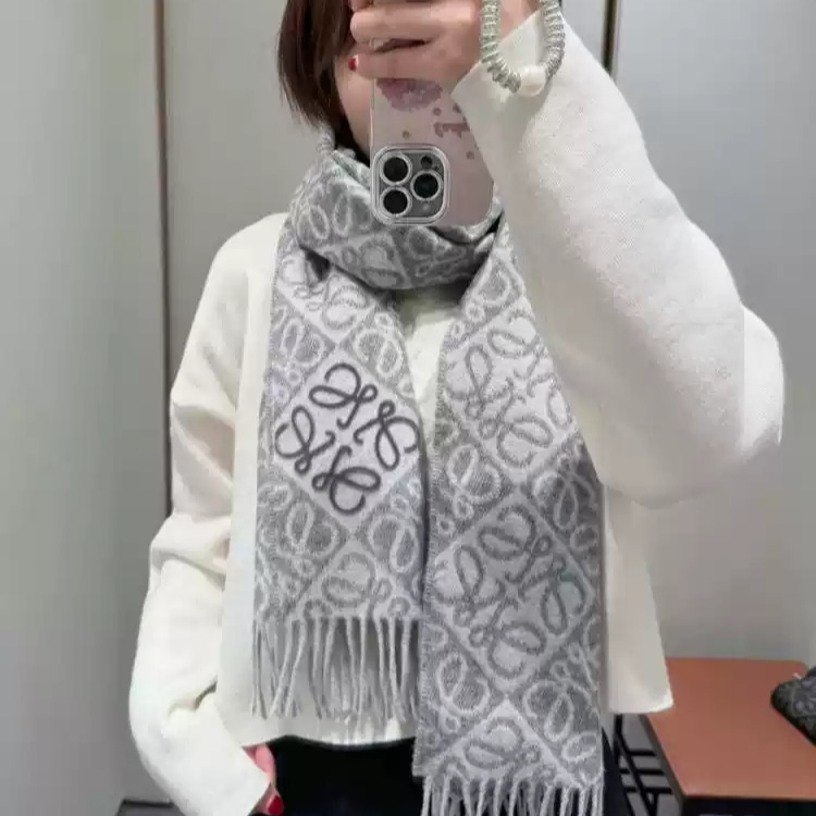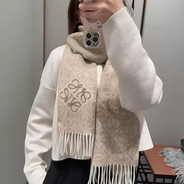 ラオルー スカーフ購入 24冬新作 チェッカーボード ミルクティーカラー スカーフ ウール フリンジ ショール BBR