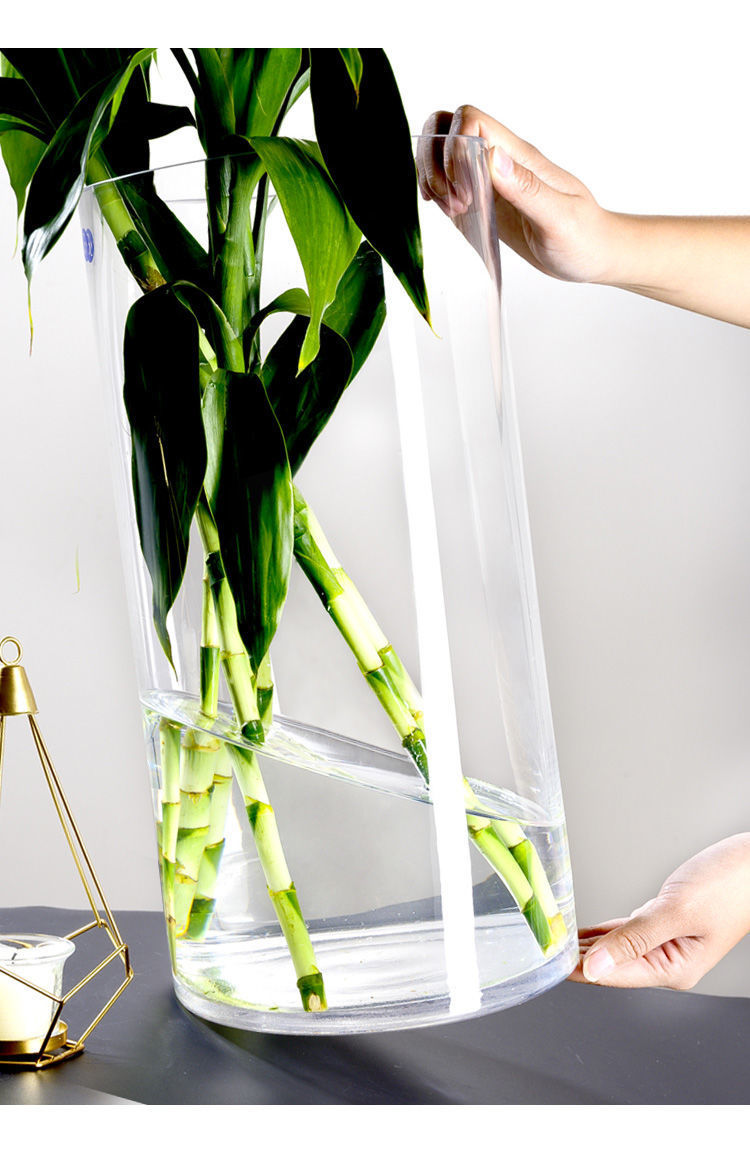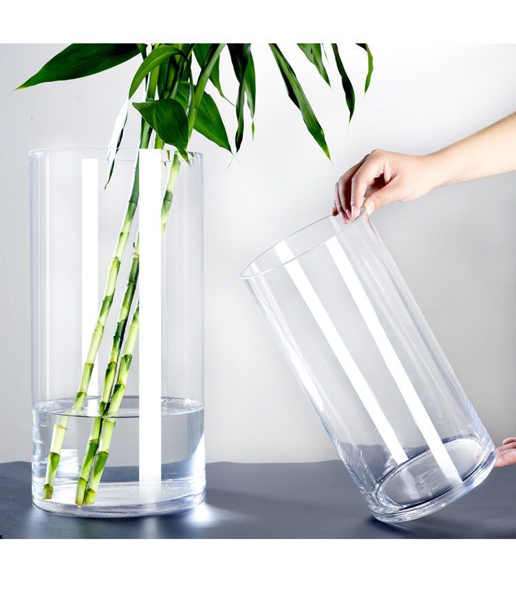 大型透明ストレートガラス花瓶高モデル卸売り客間富貴竹生花水培シンプル円柱着地厚