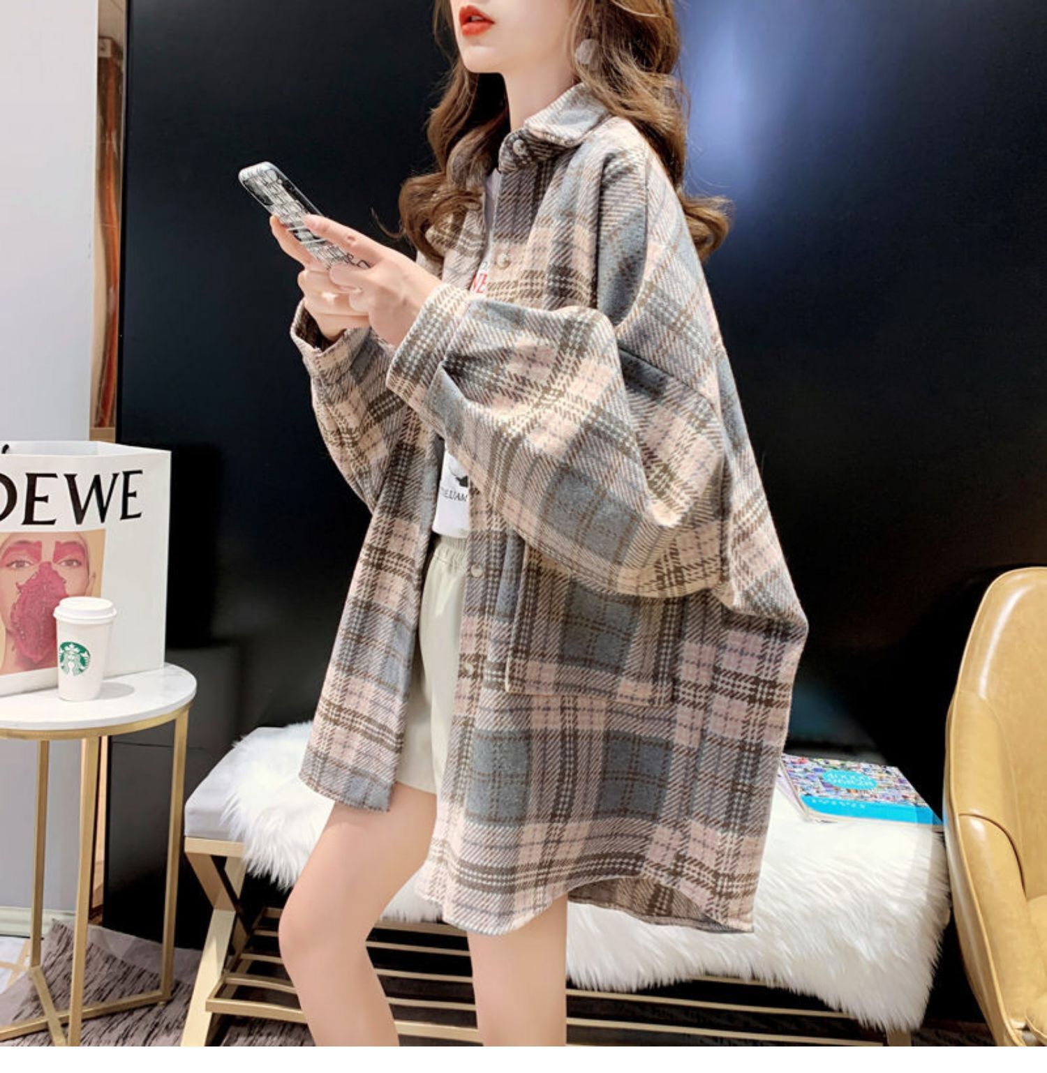 クロスボーダーチェック柄シャツ女性の秋と冬の新しいスタイルプラスベルベットレトロアウターウェア2025新しいヨーロッパ長袖シャツ女性のトレンド