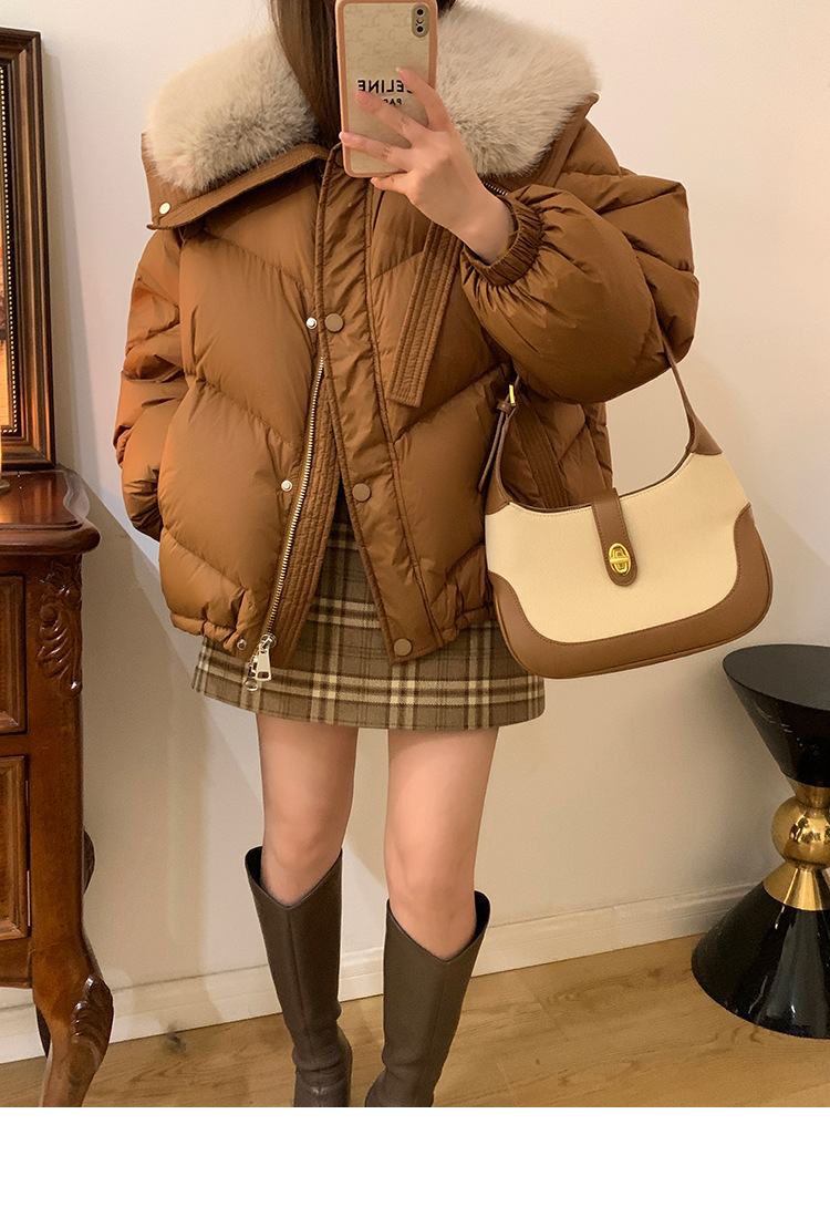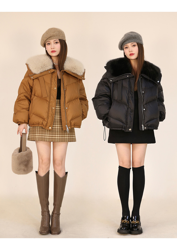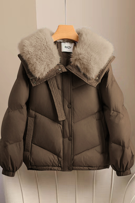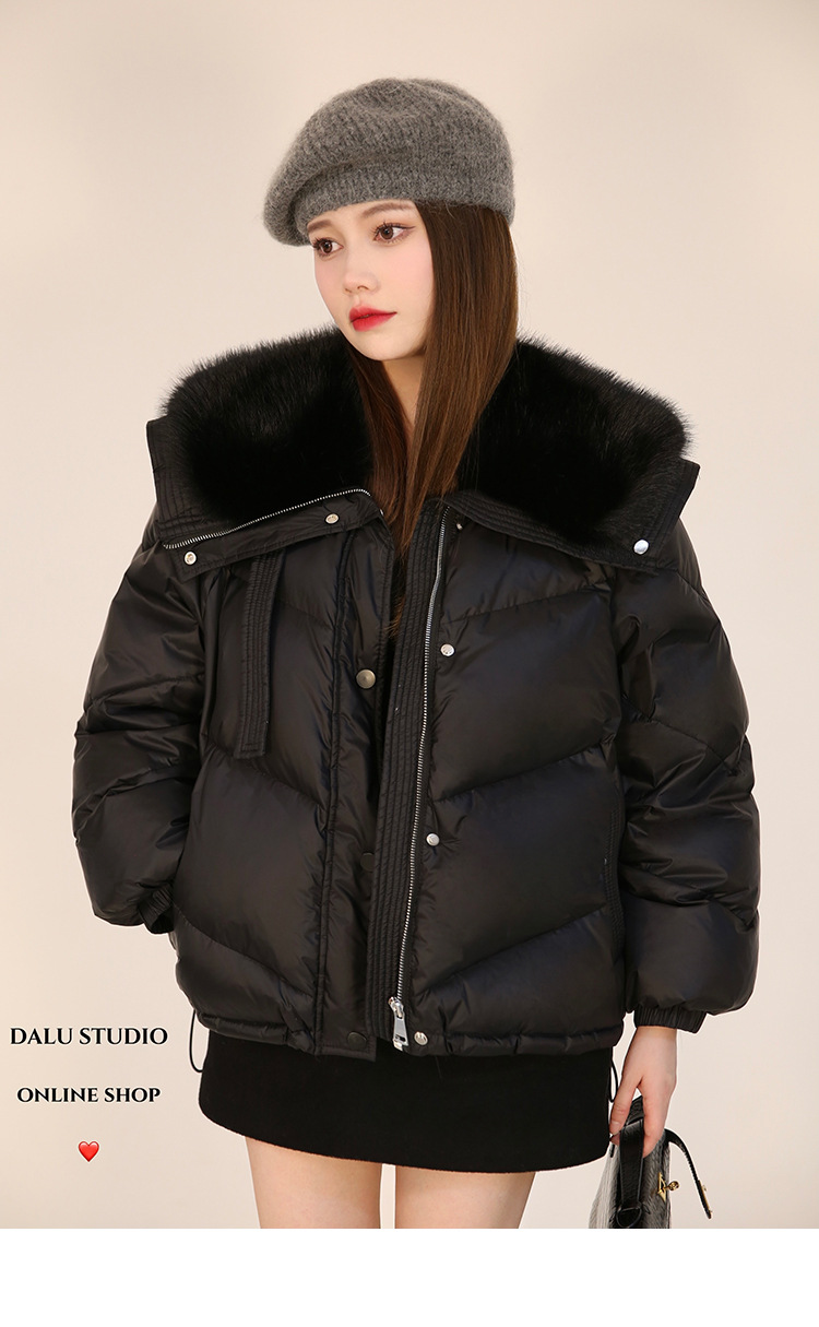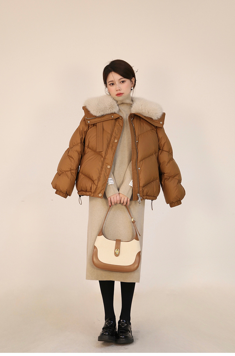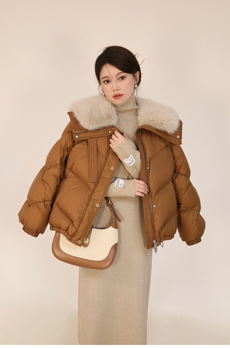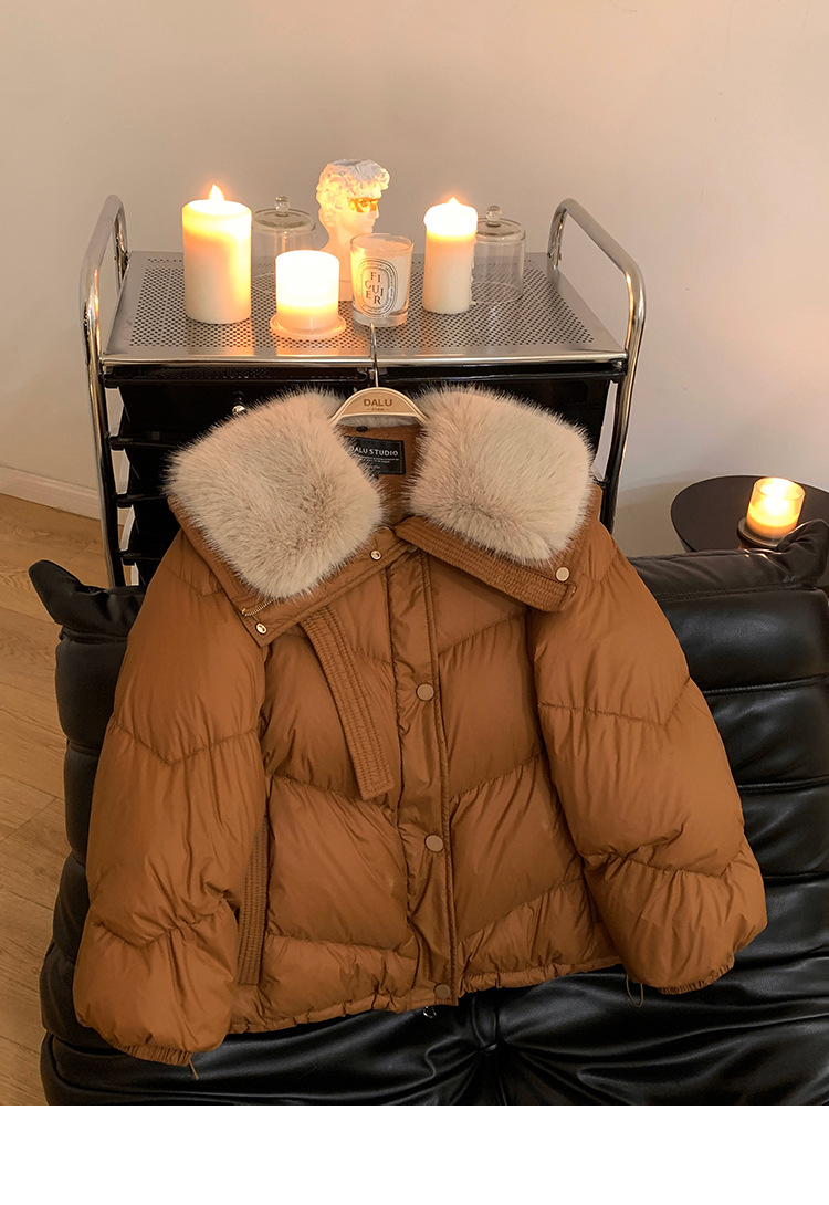 大きい毛の襟の小さい子供の羽毛の綿服の女性のタイプの冬の2024新型の韓国版は縄の短い綿入れの綿服のコートを引き出します。