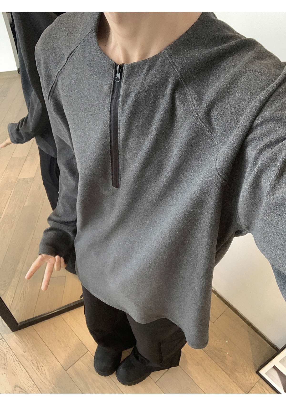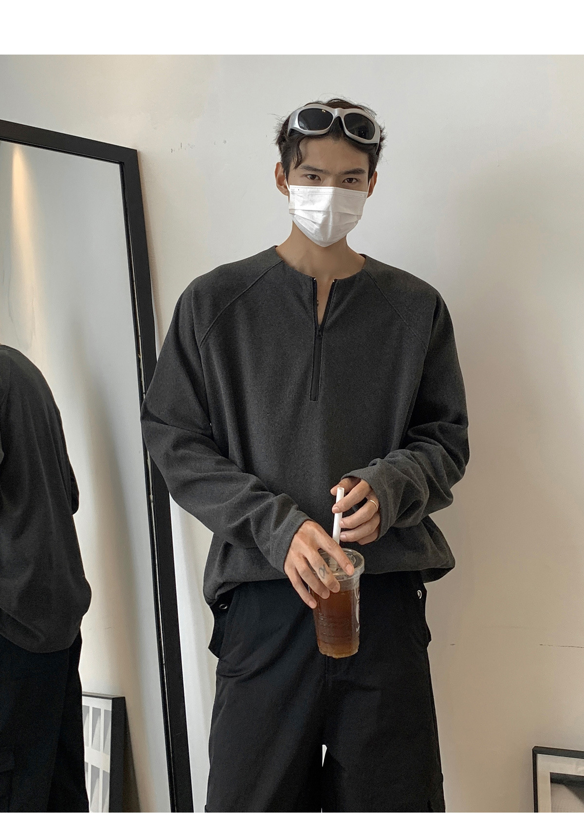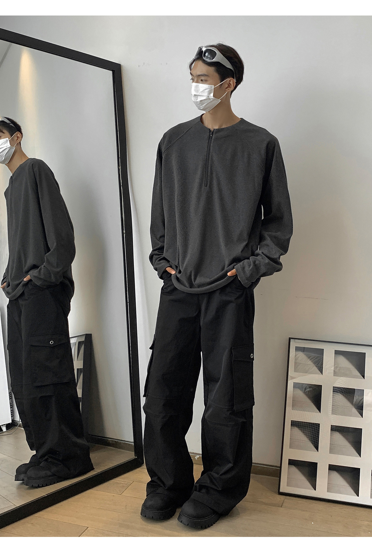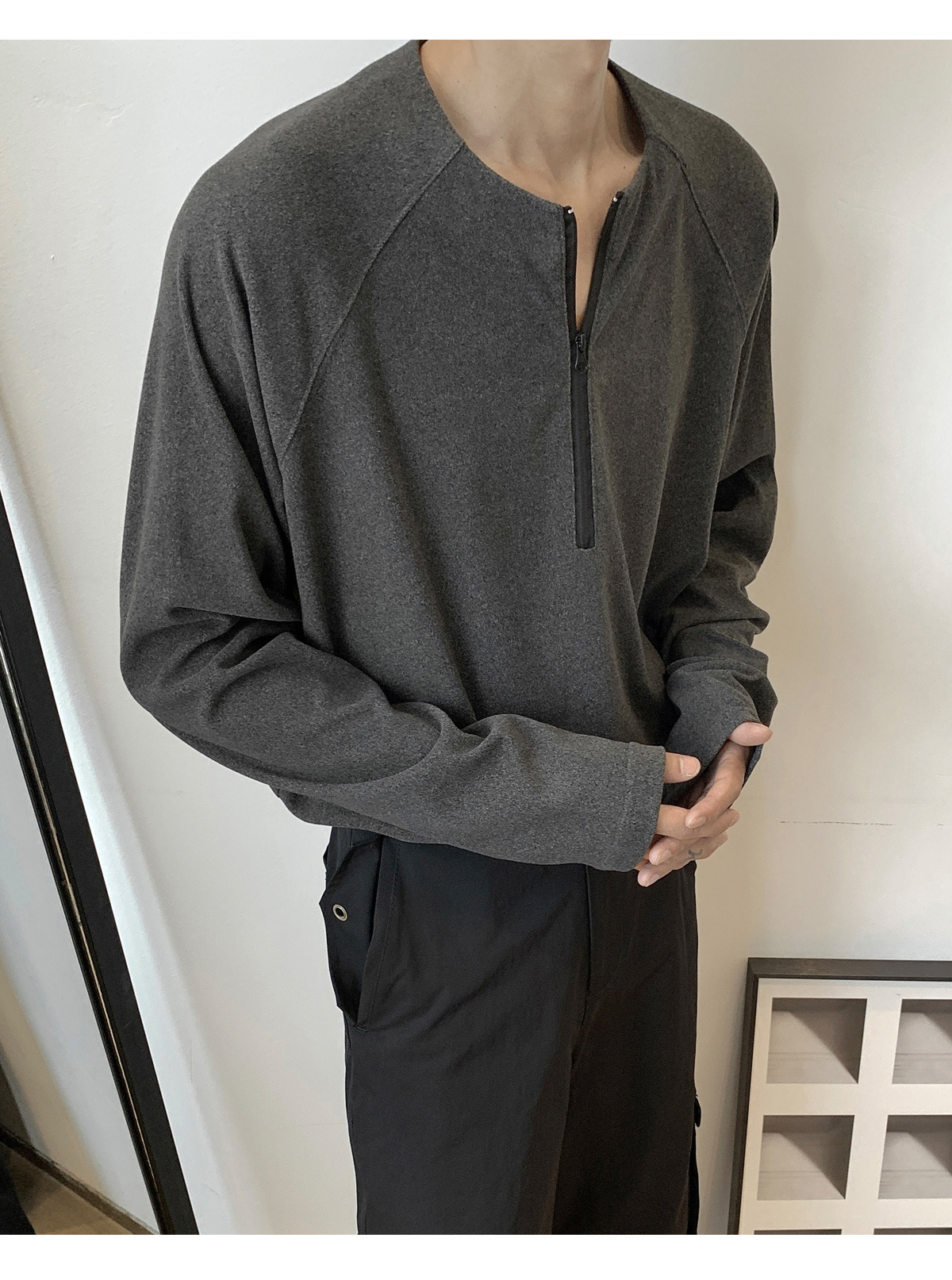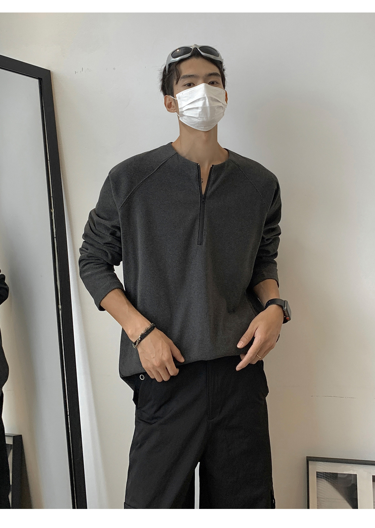 Cleanfitダークグレー長袖tシャツメンズ2024秋冬新作ヘンリー襟ゆるいインナーシャツ