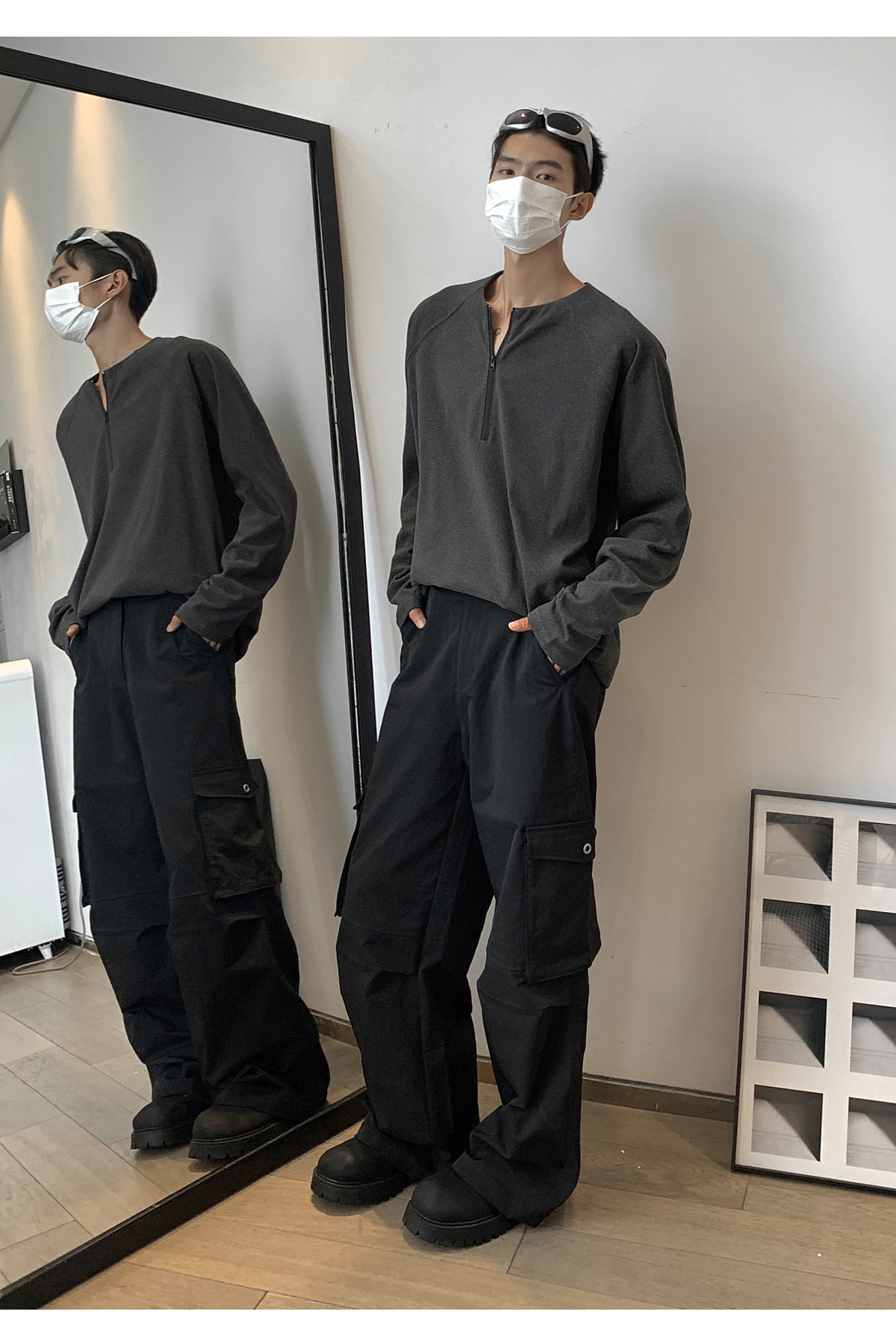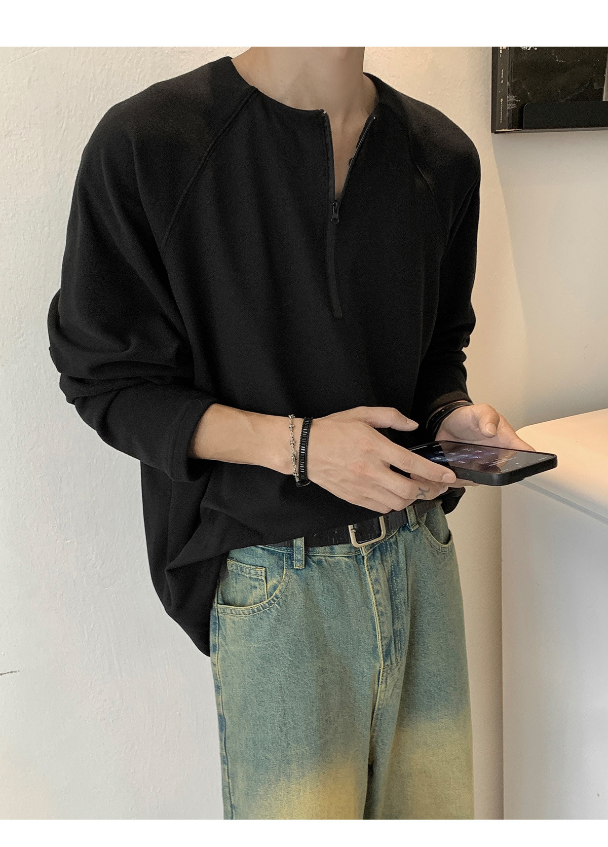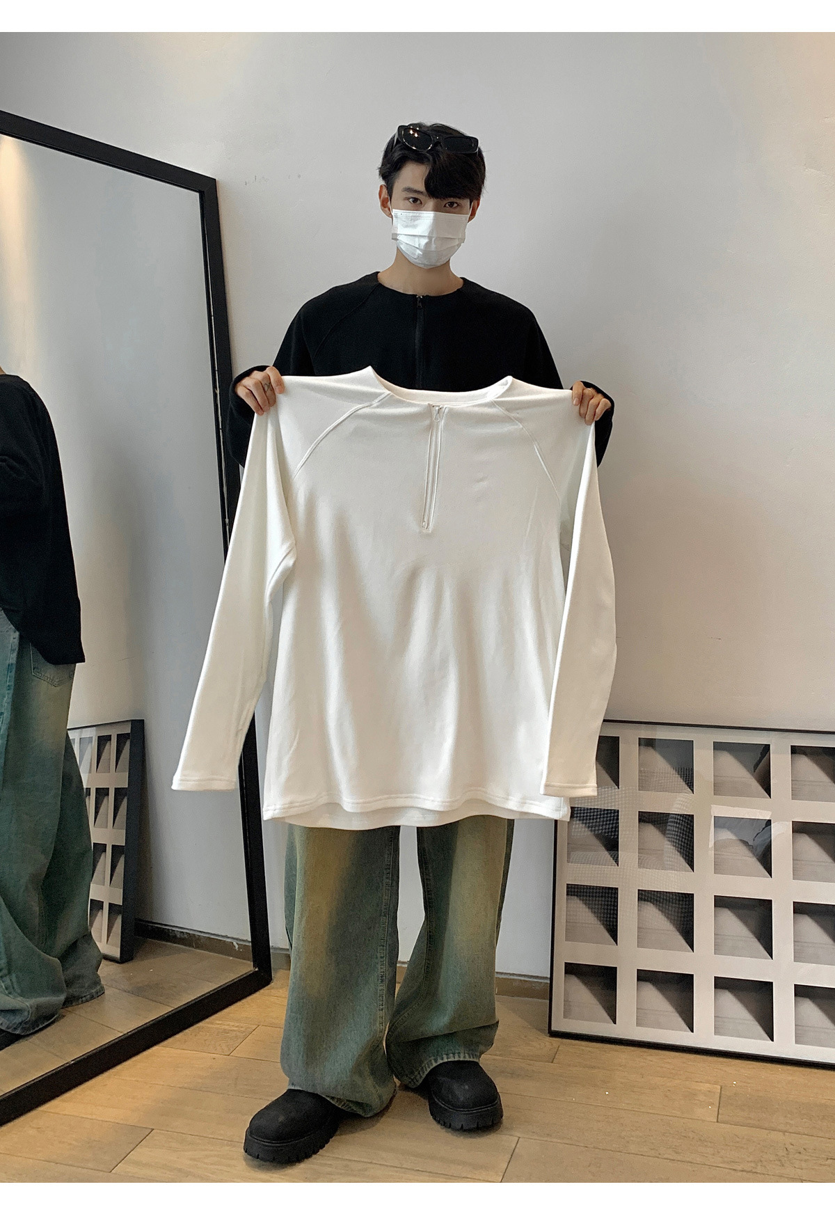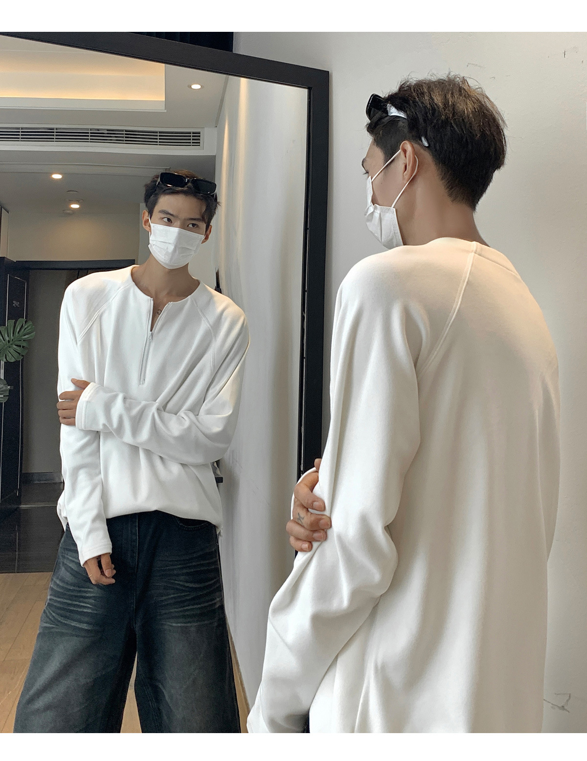 Cleanfitダークグレー長袖tシャツメンズ2024秋冬新作ヘンリー襟ゆるいインナーシャツ