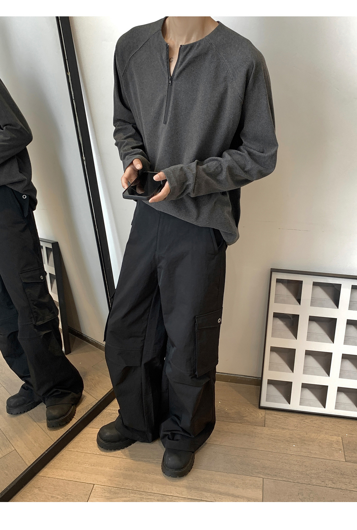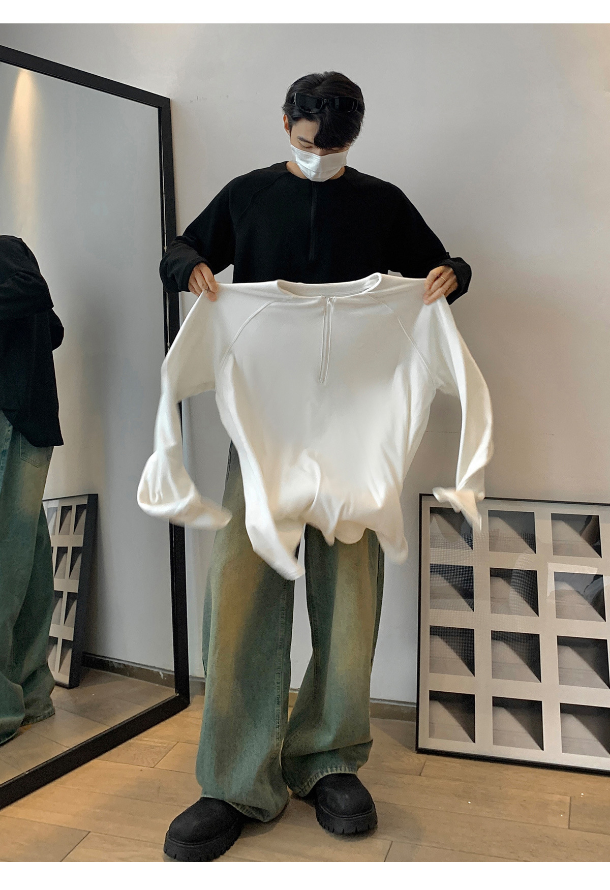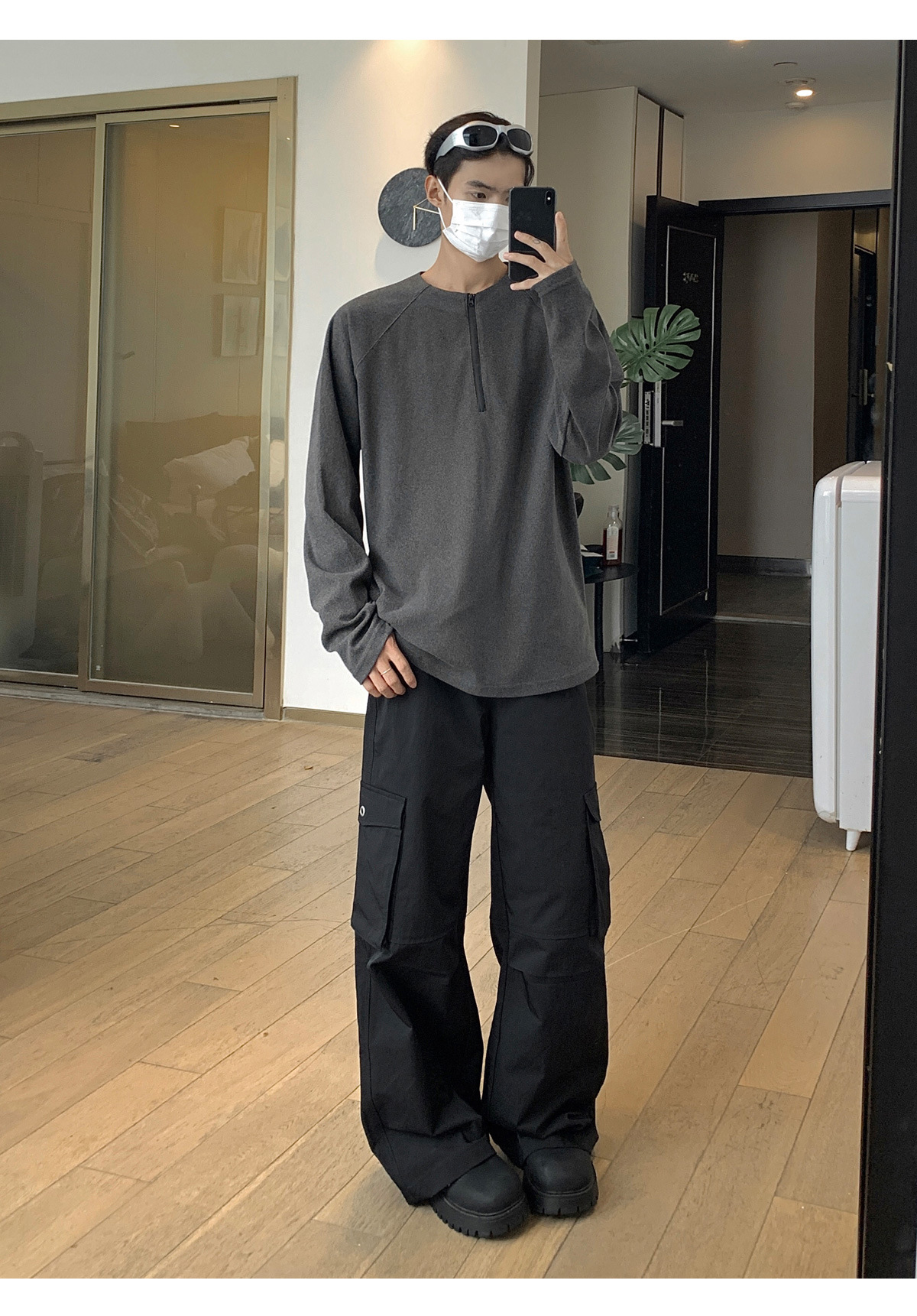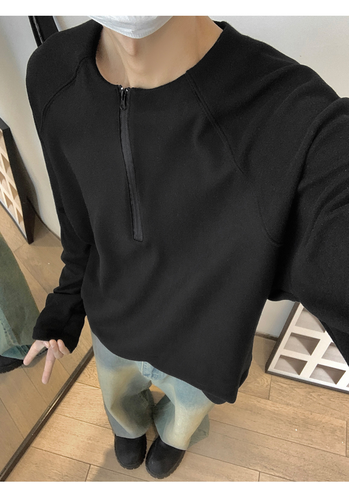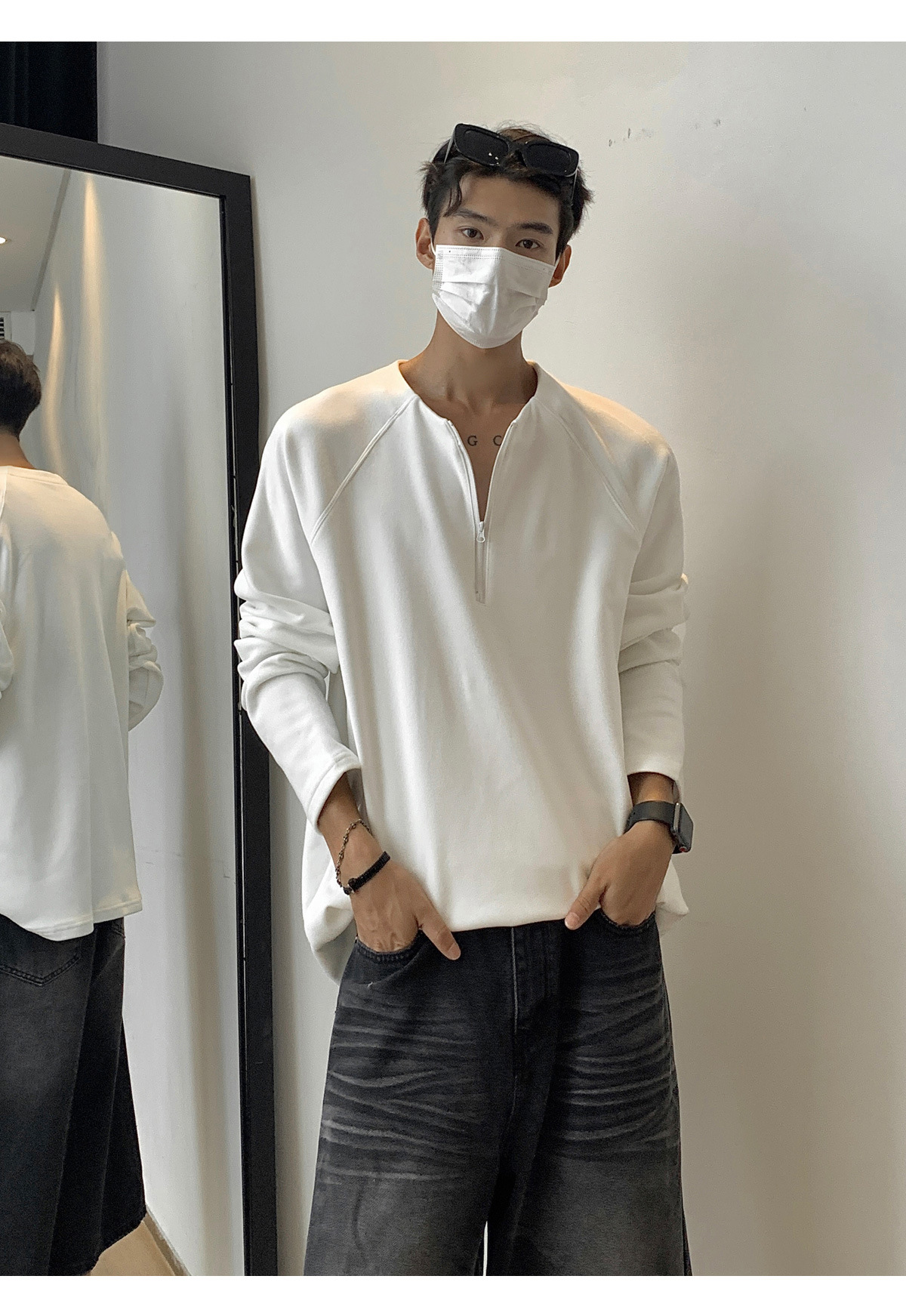 Cleanfitダークグレー長袖tシャツメンズ2024秋冬新作ヘンリー襟ゆるいインナーシャツ