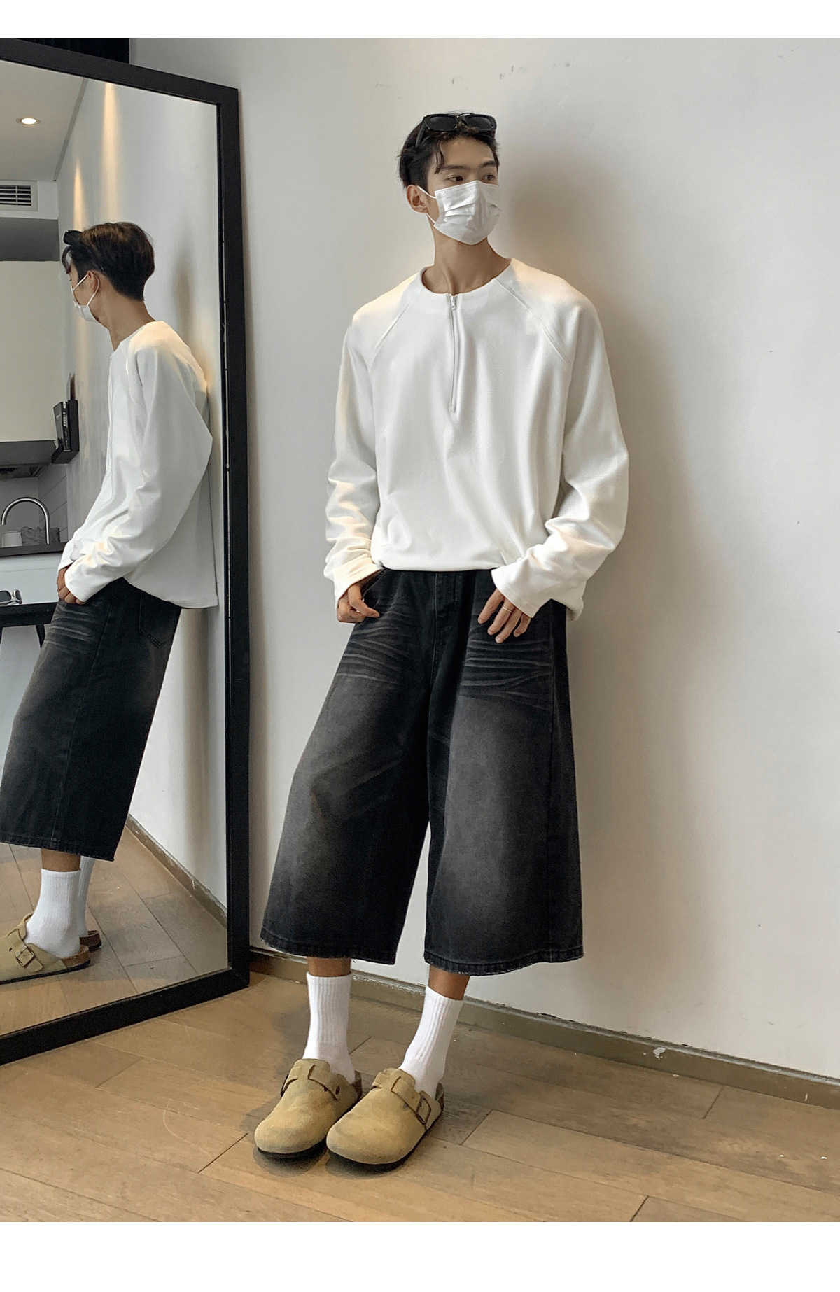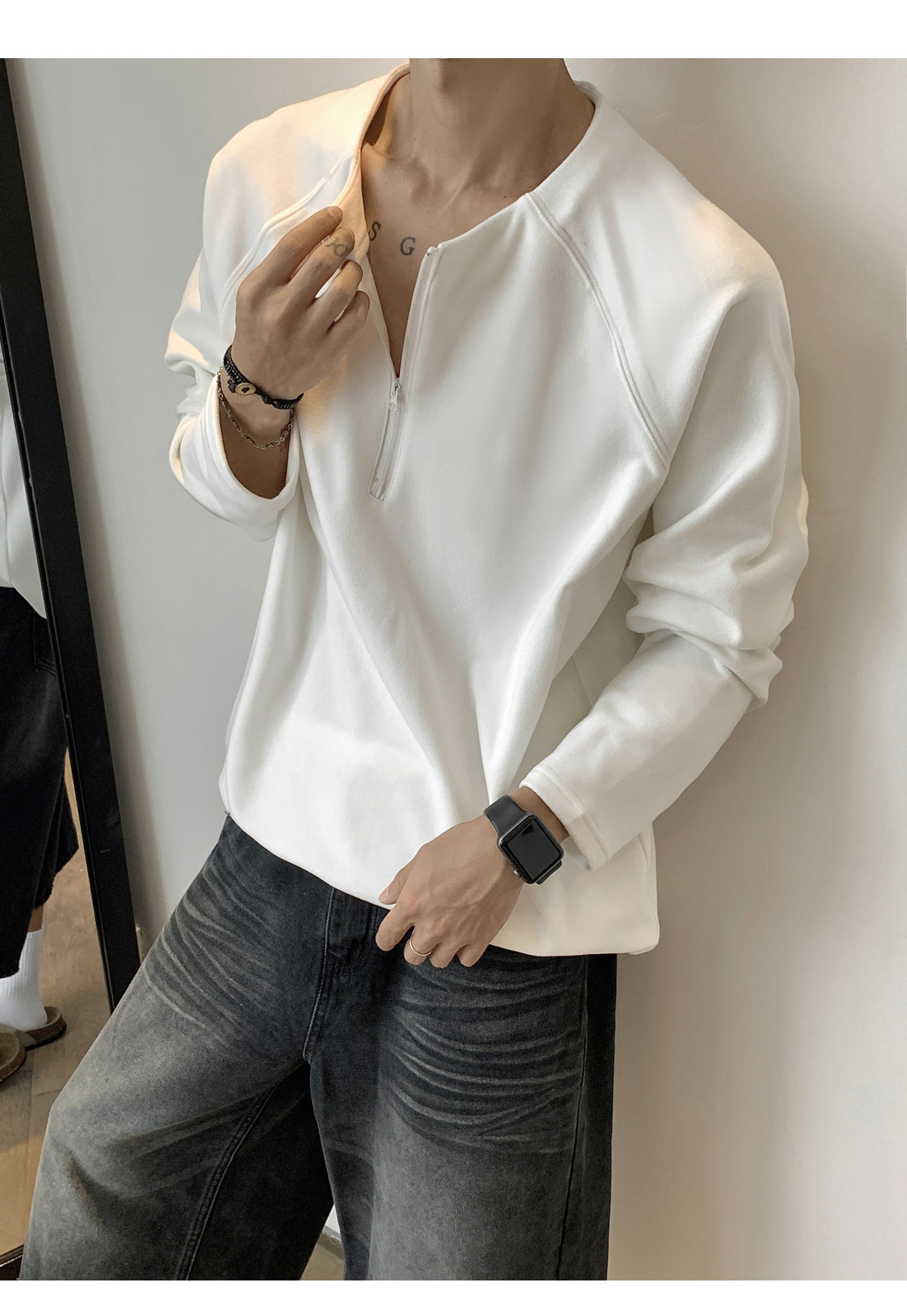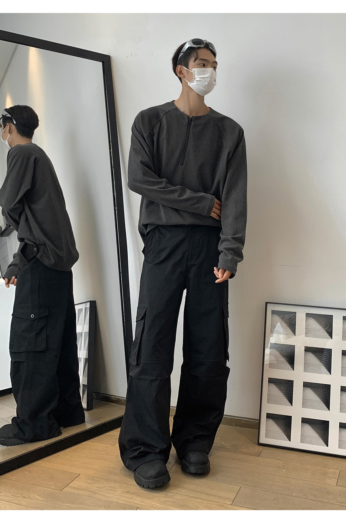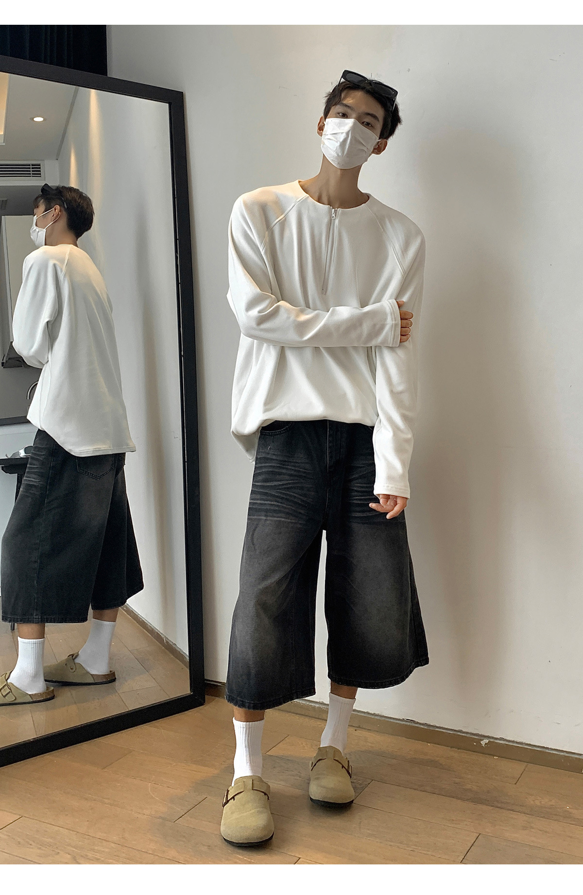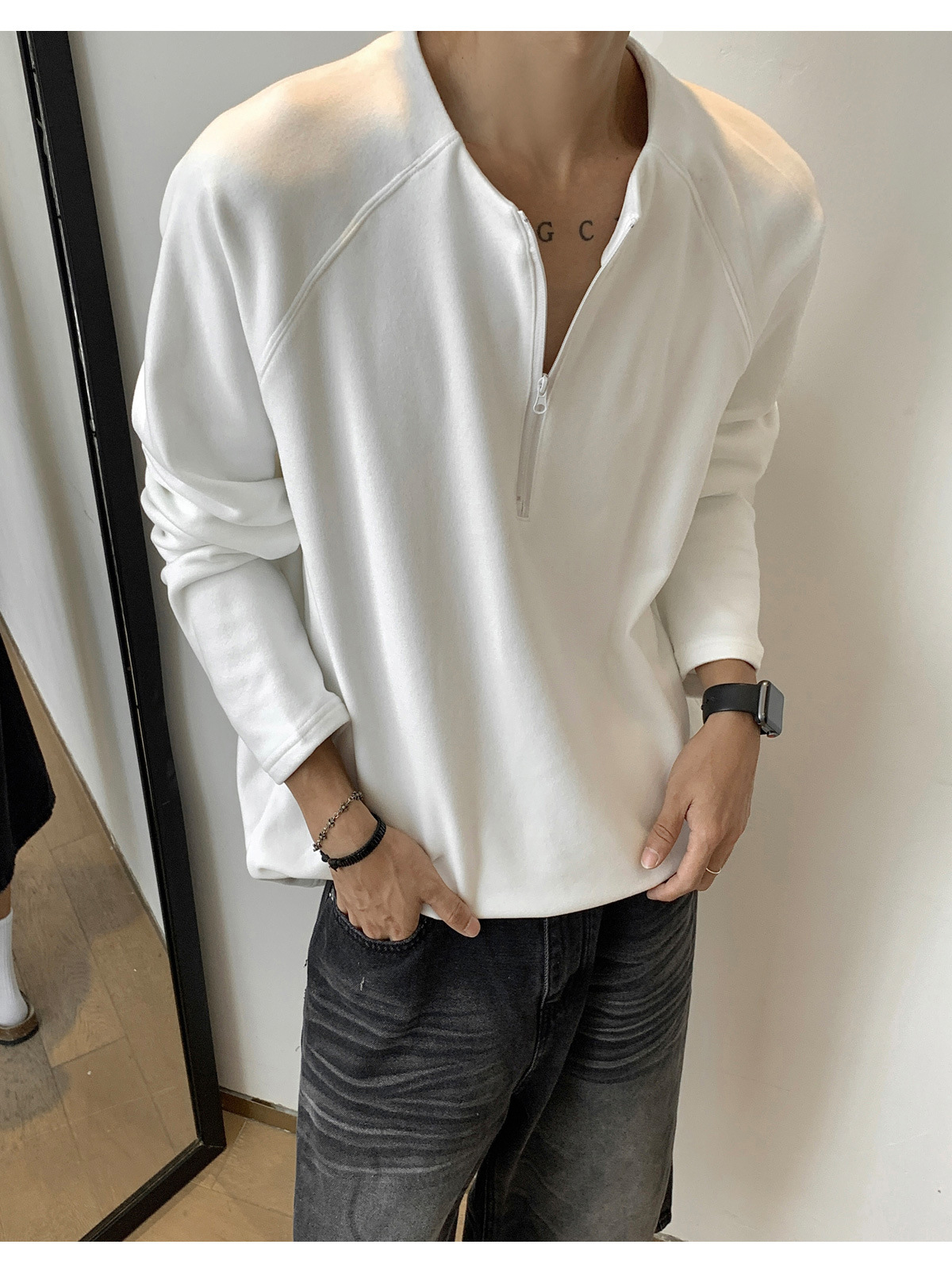 Cleanfitダークグレー長袖tシャツメンズ2024秋冬新作ヘンリー襟ゆるいインナーシャツ