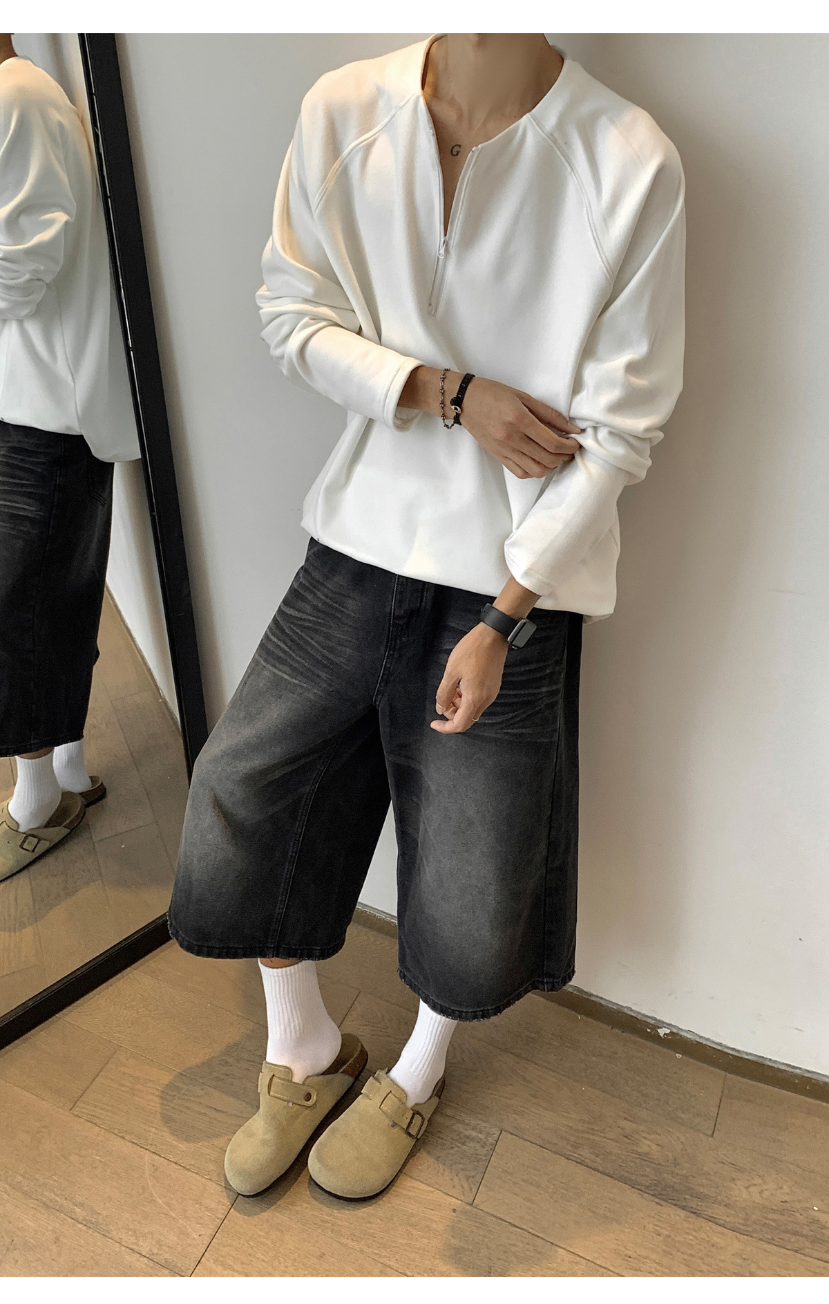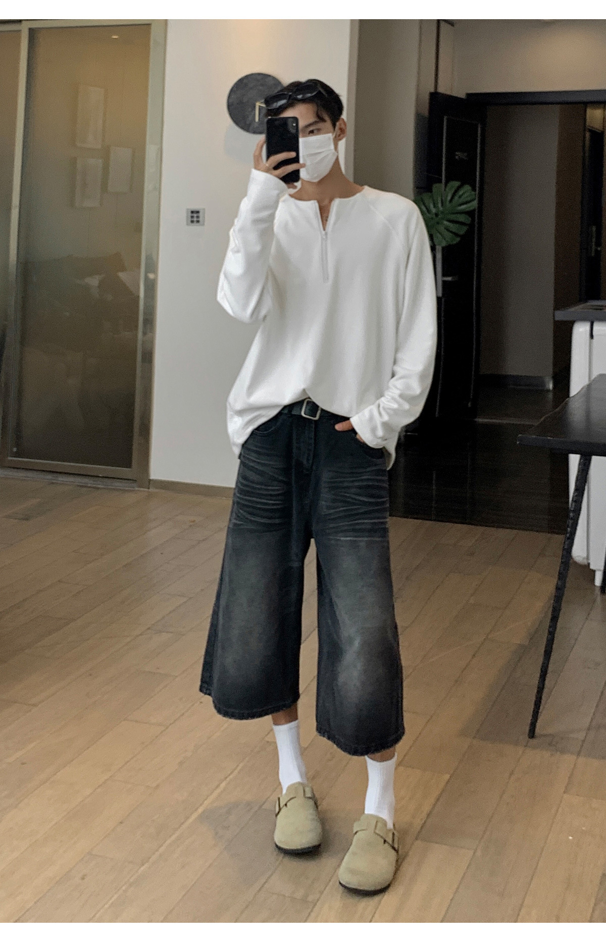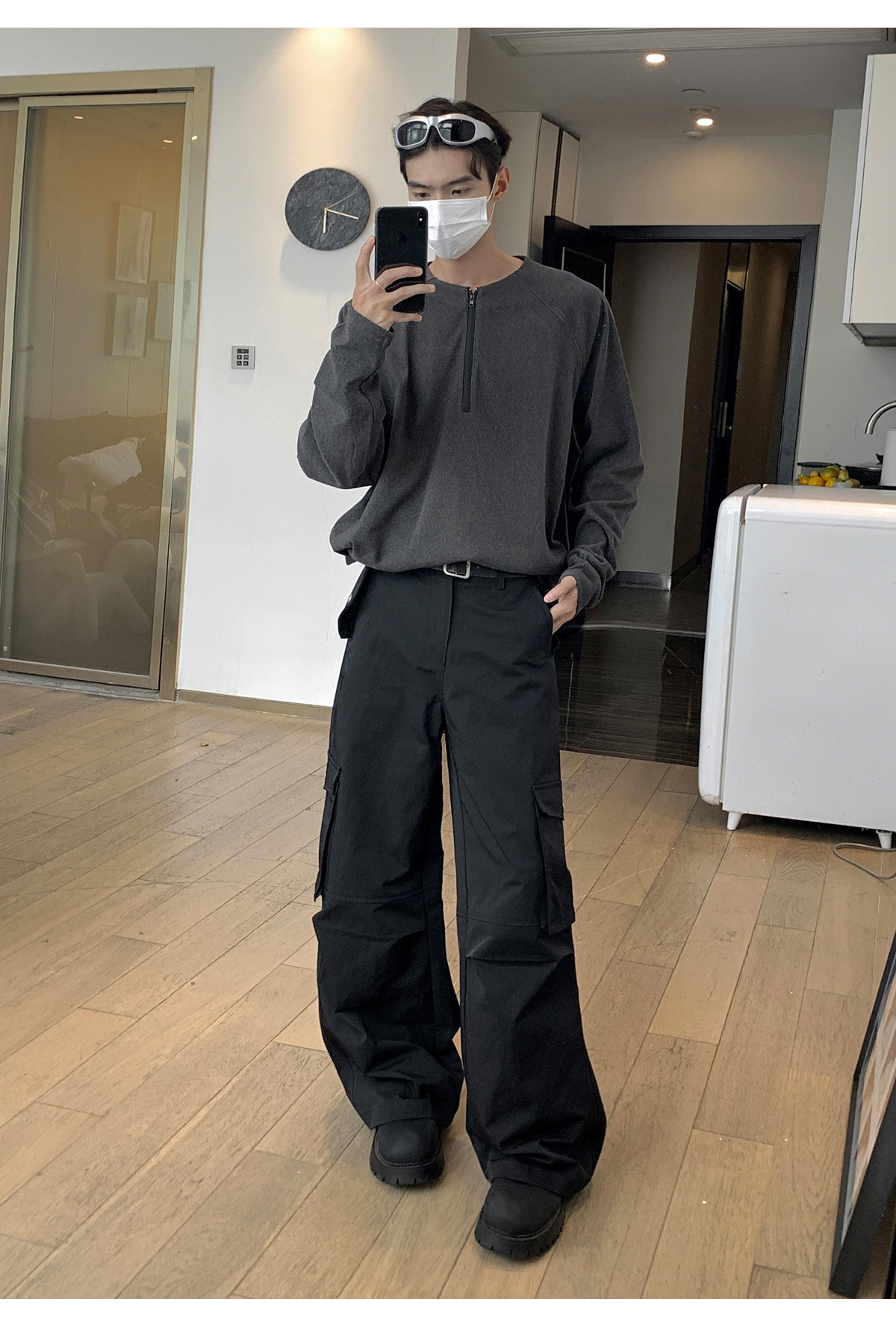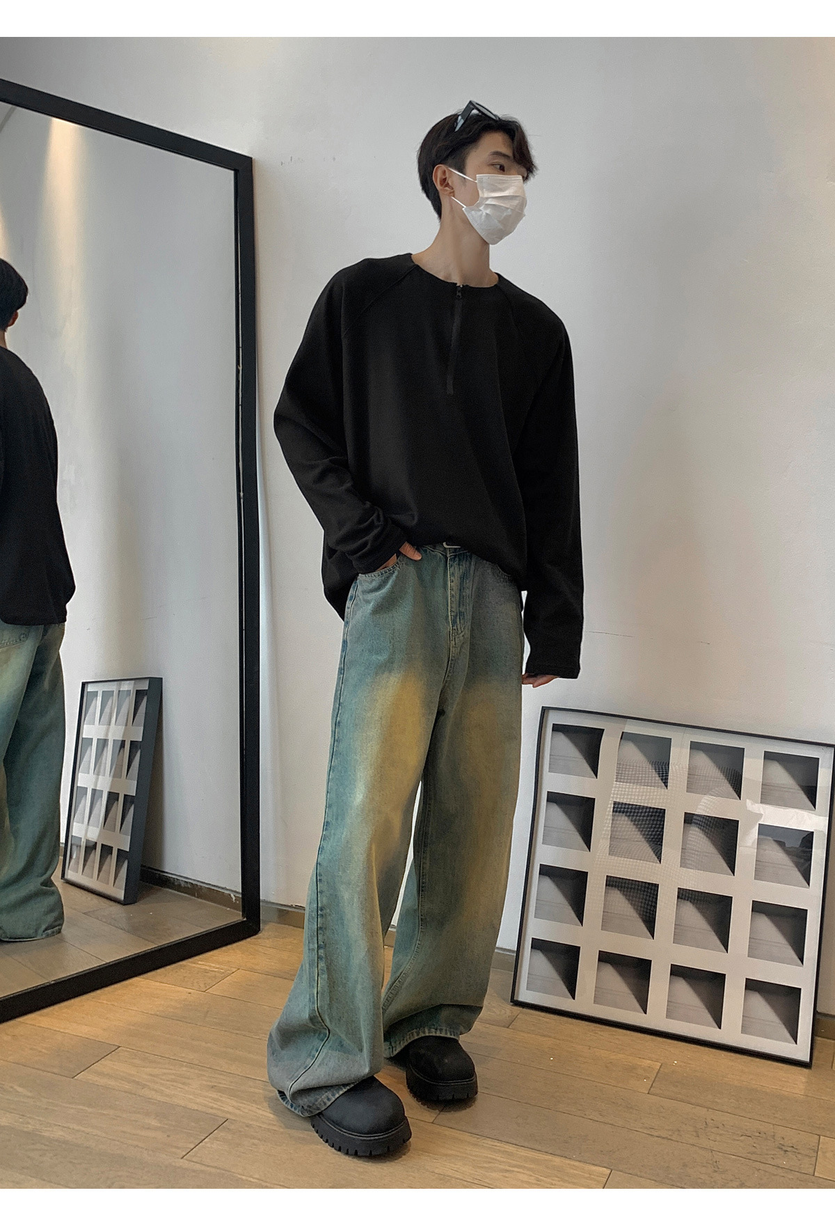 Cleanfitダークグレー長袖tシャツメンズ2024秋冬新作ヘンリー襟ゆるいインナーシャツ