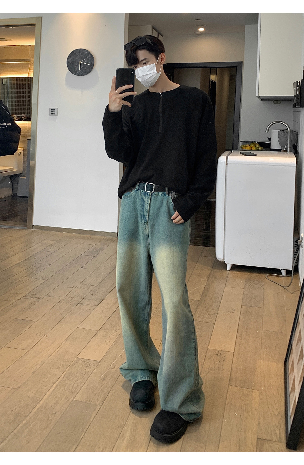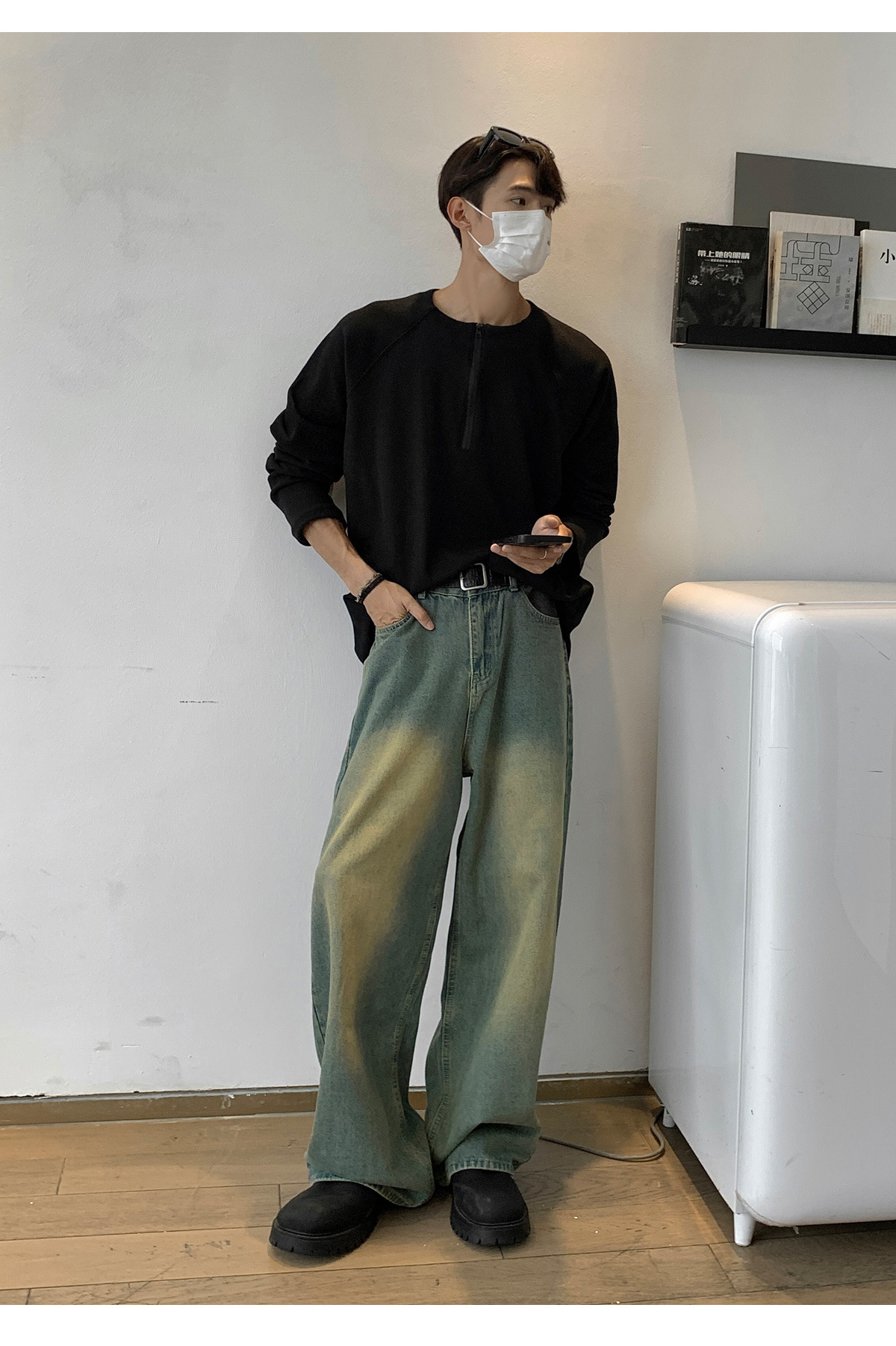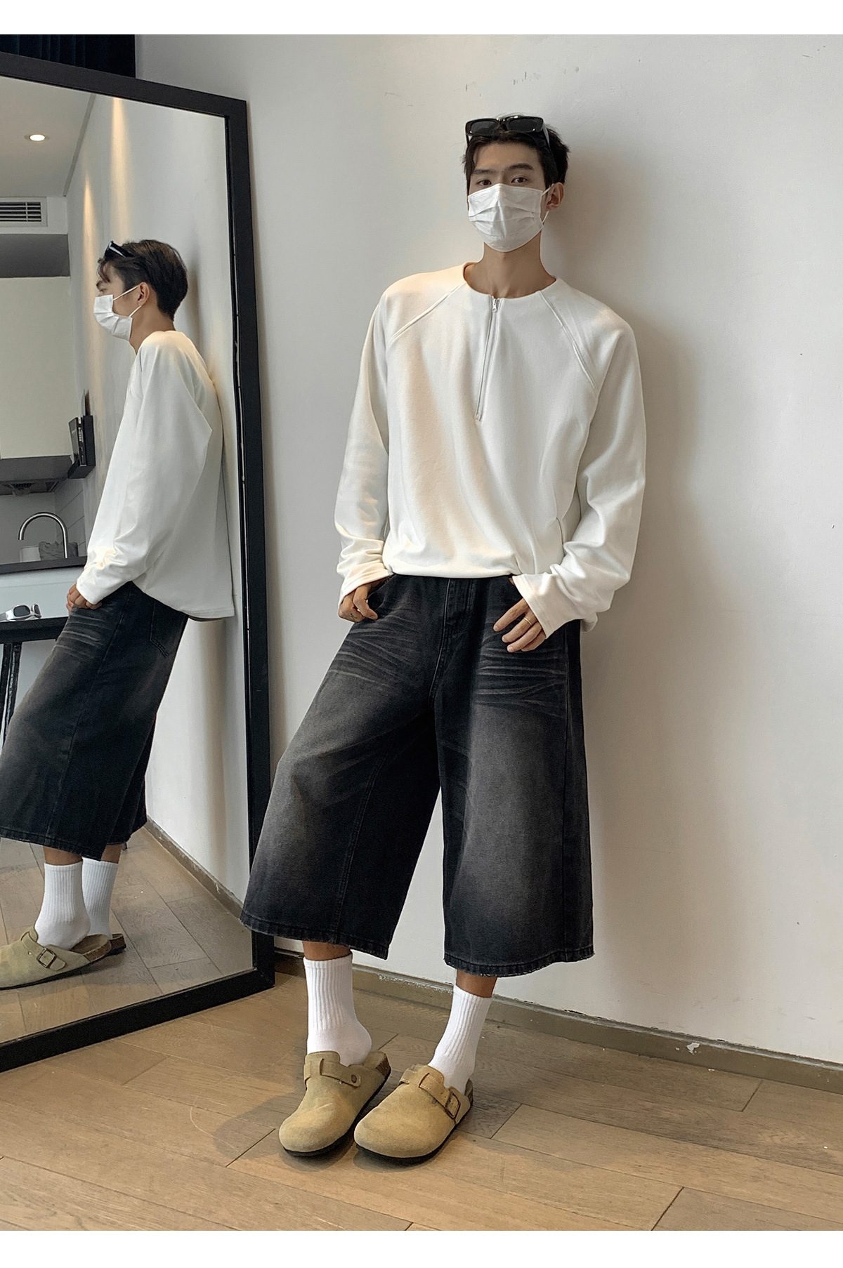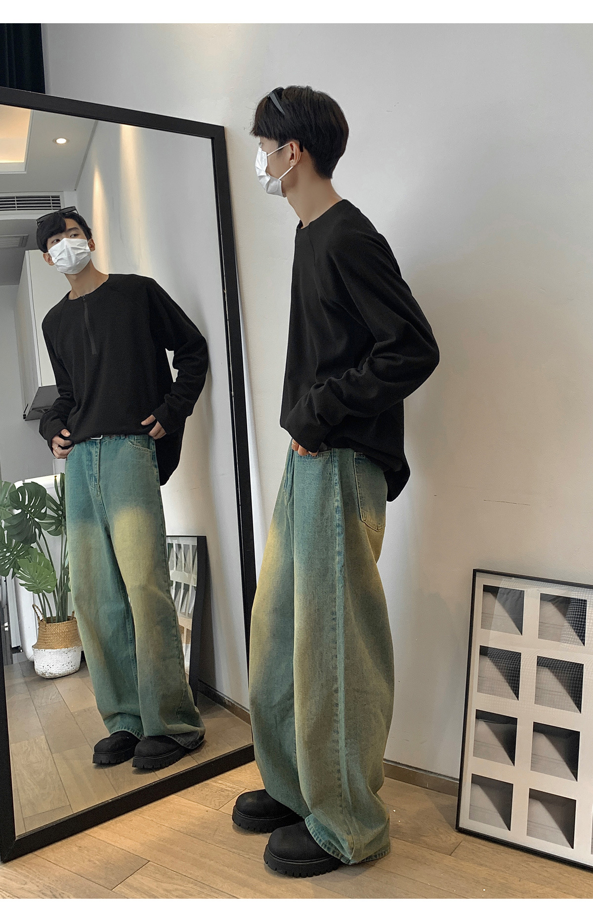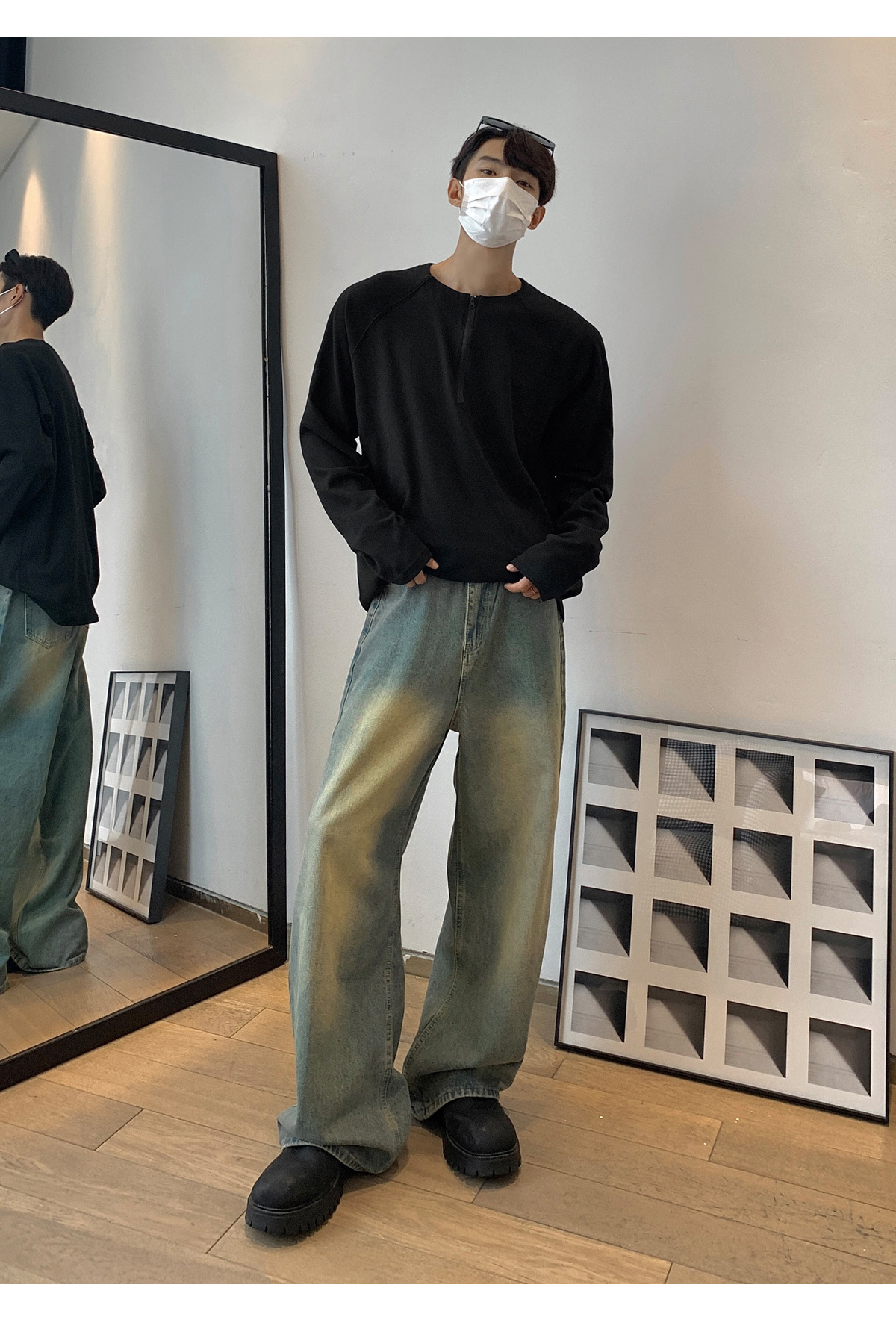 Cleanfitダークグレー長袖tシャツメンズ2024秋冬新作ヘンリー襟ゆるいインナーシャツ