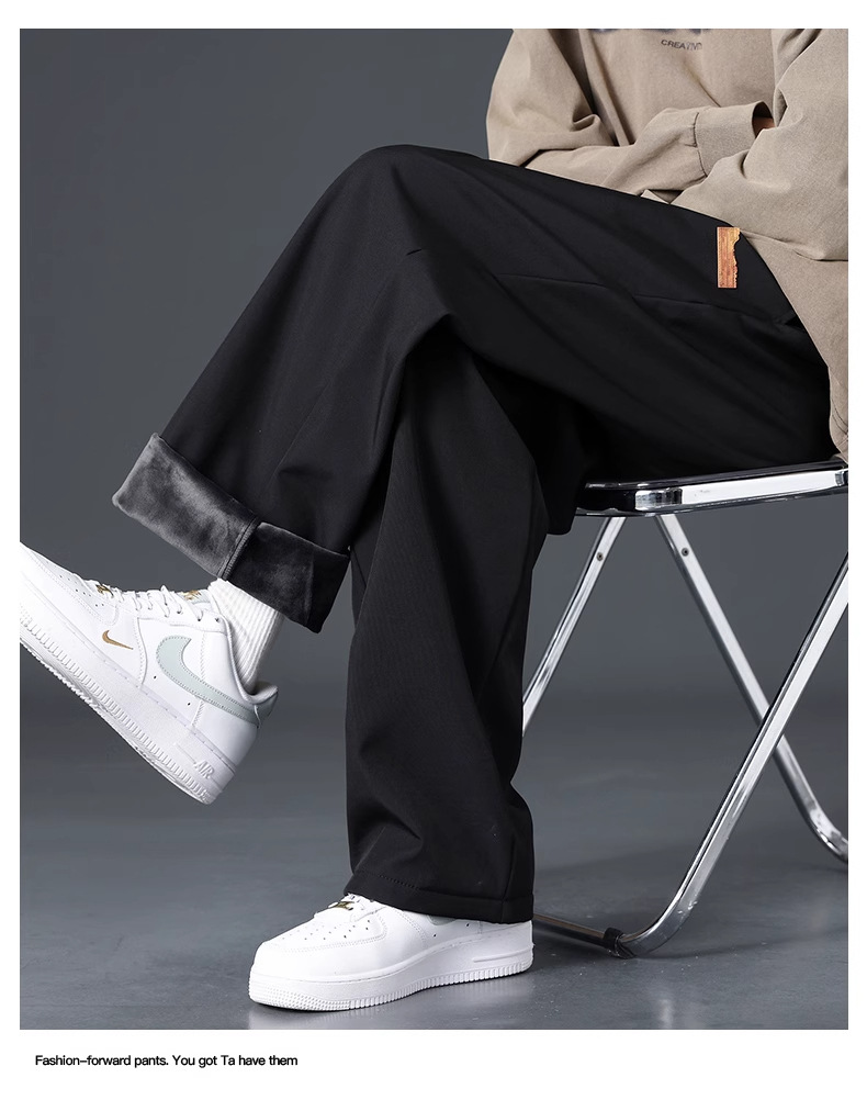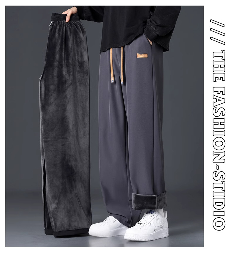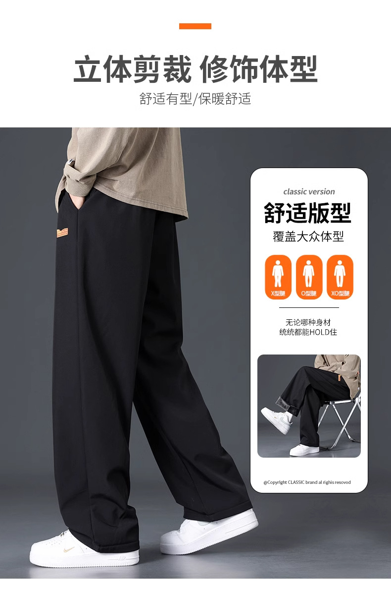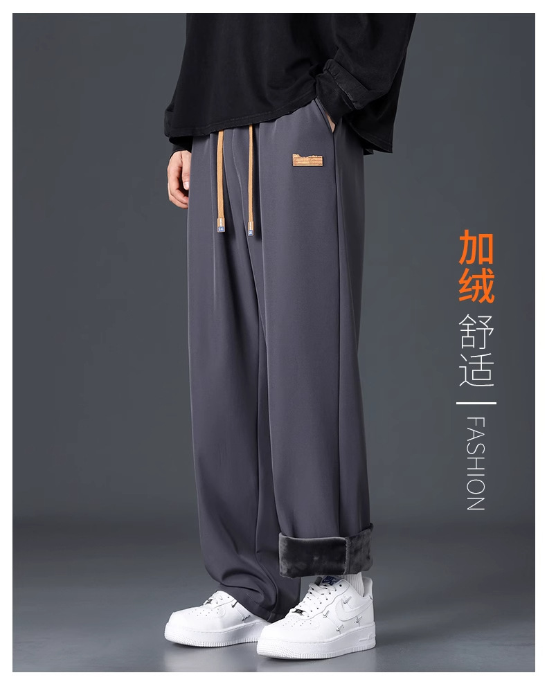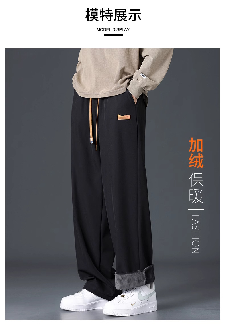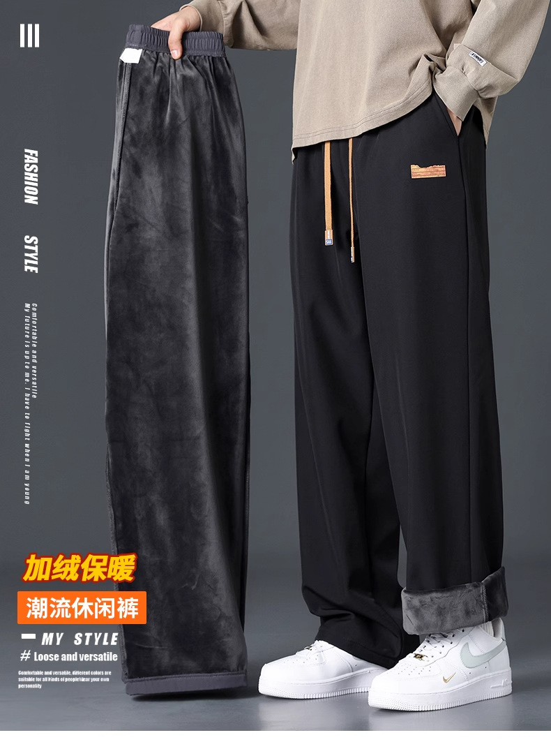 NASAベルベット厚いズボン男性秋冬保温一体ベルベットストレートパンツゆるいスポーツカジュアルパンツ