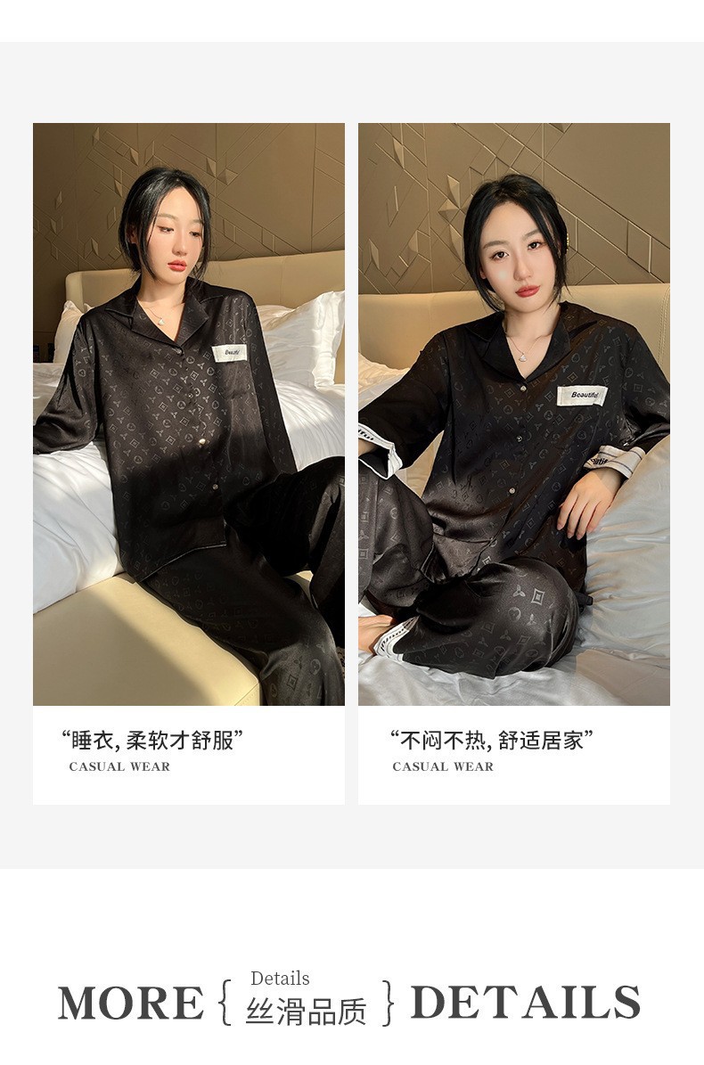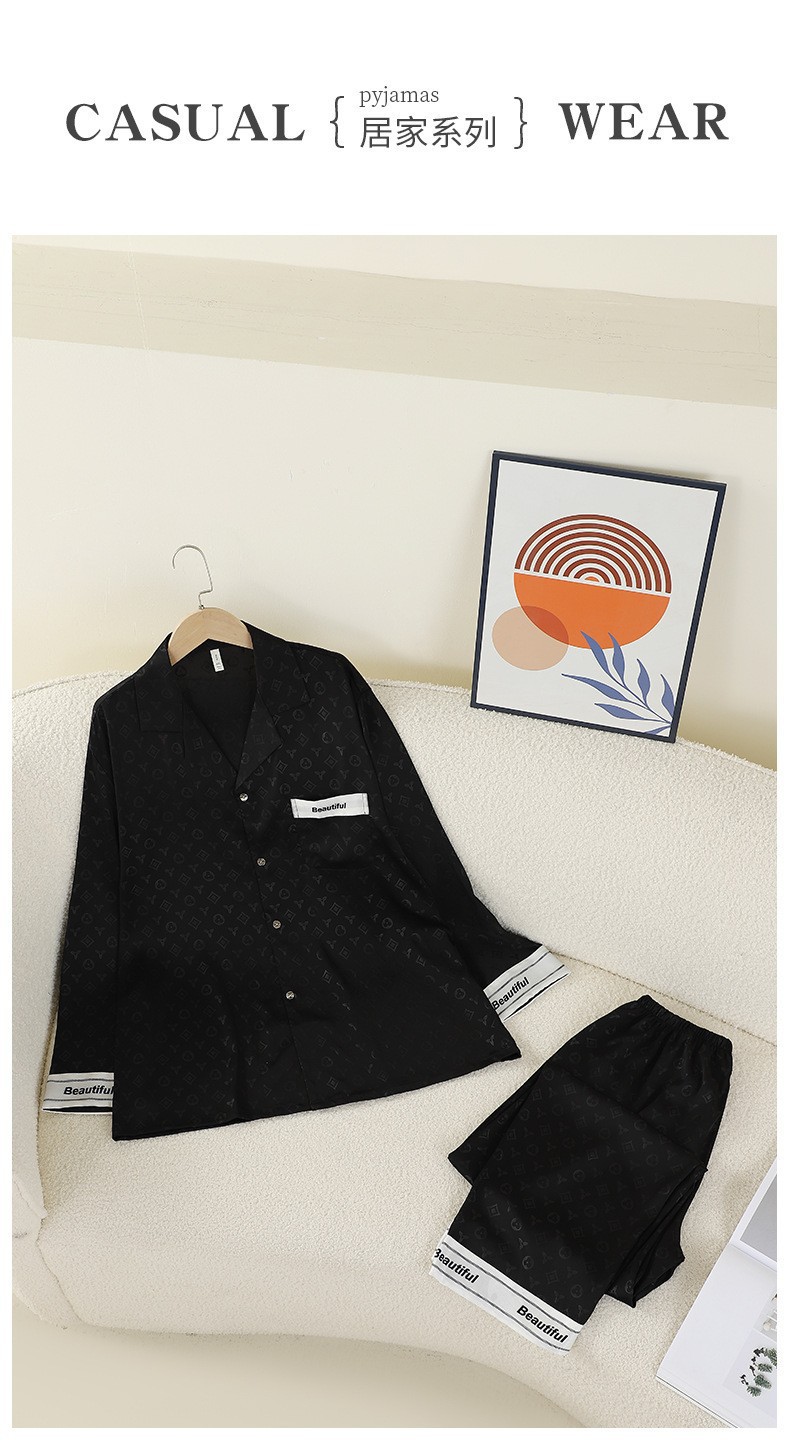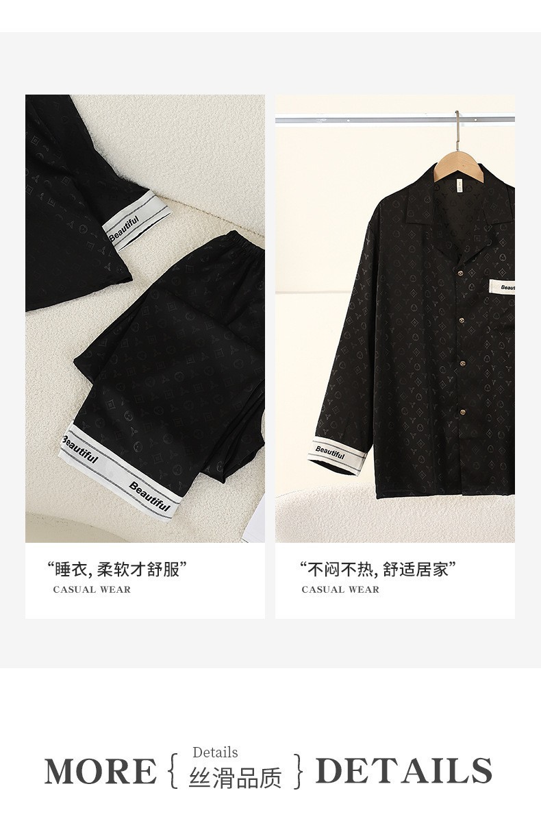 新款黑色情侣睡衣女春秋冰丝长袖仿真丝绸夏季家居服大牌风男套装