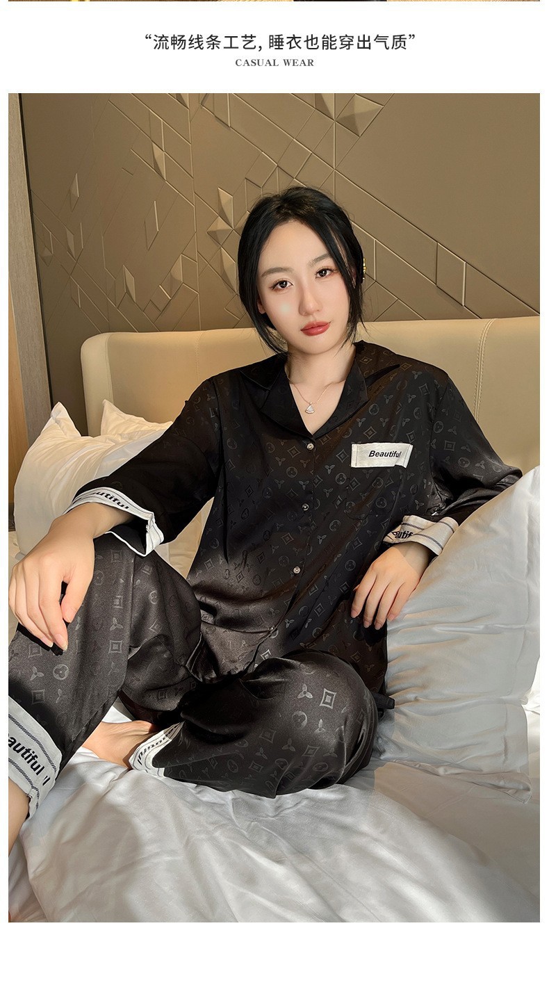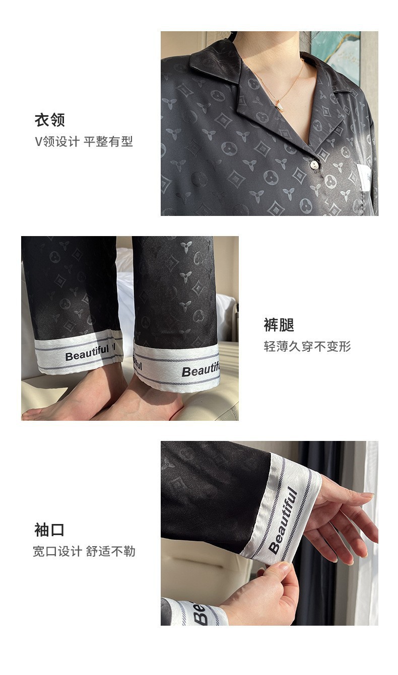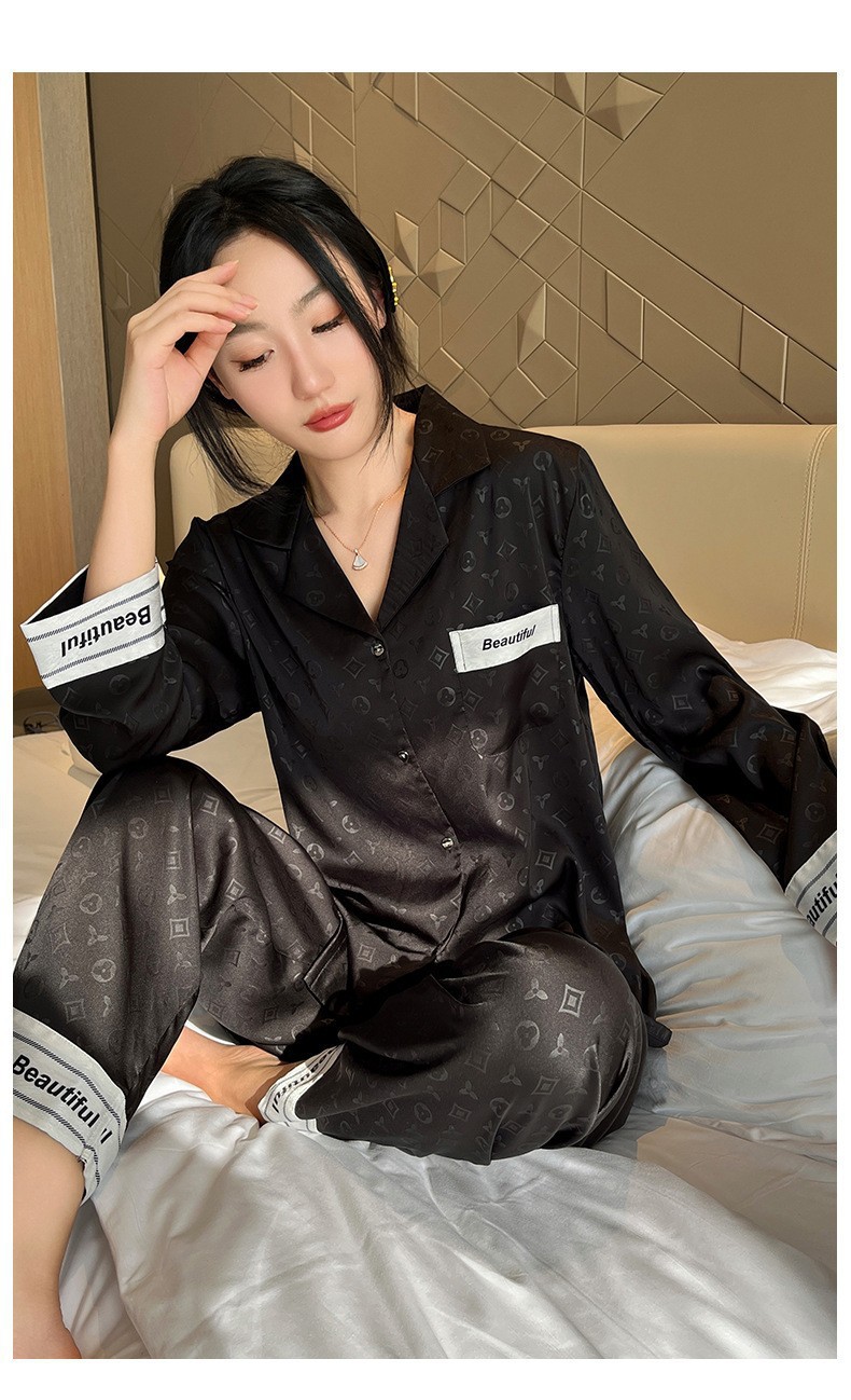 新款黑色情侣睡衣女春秋冰丝长袖仿真丝绸夏季家居服大牌风男套装