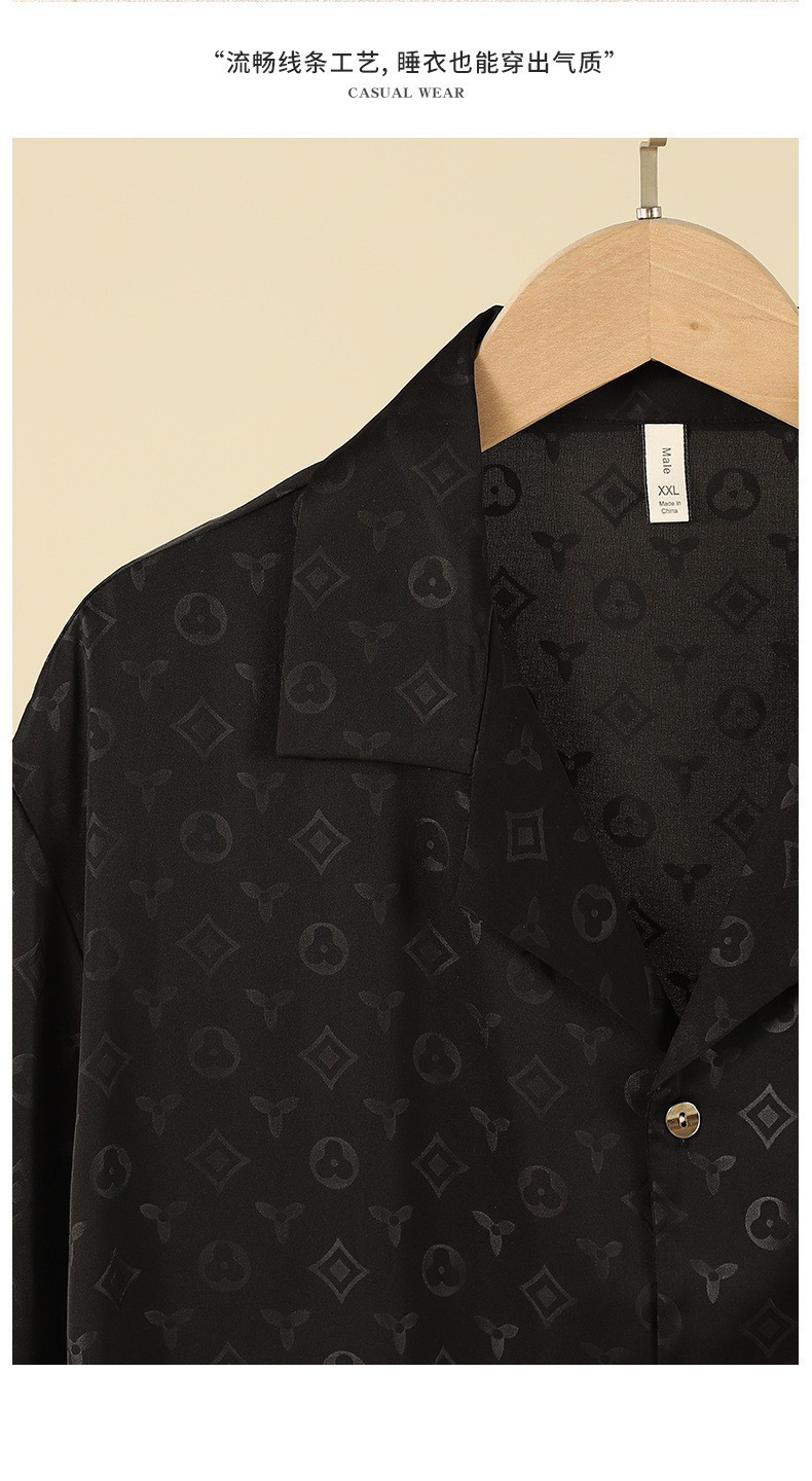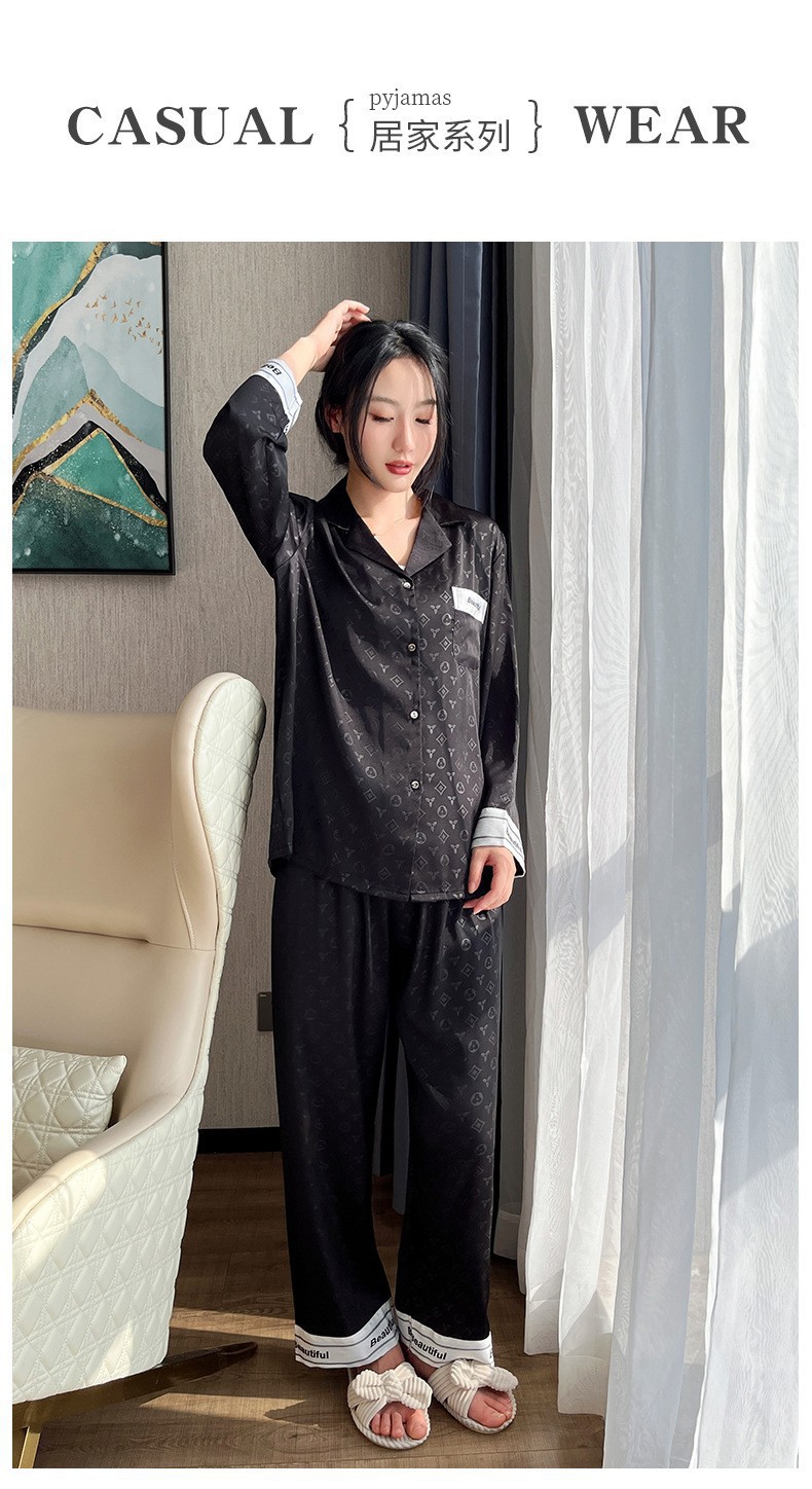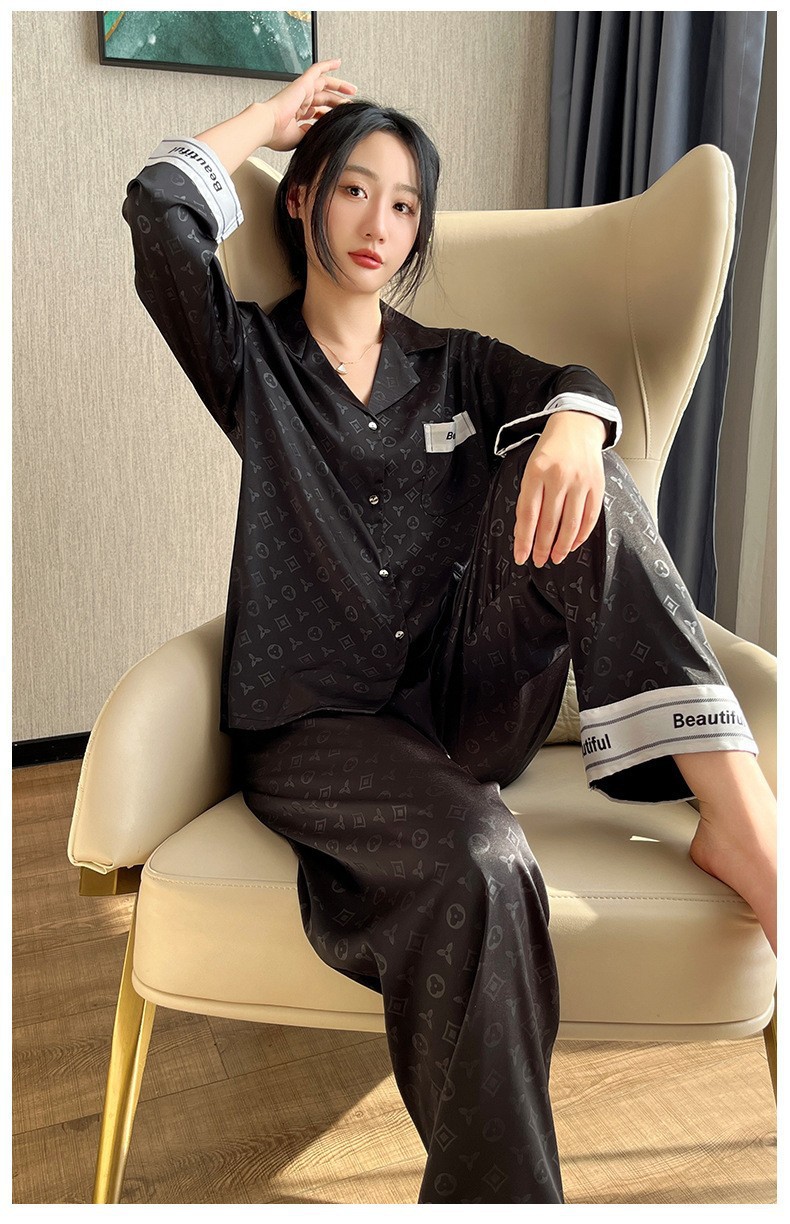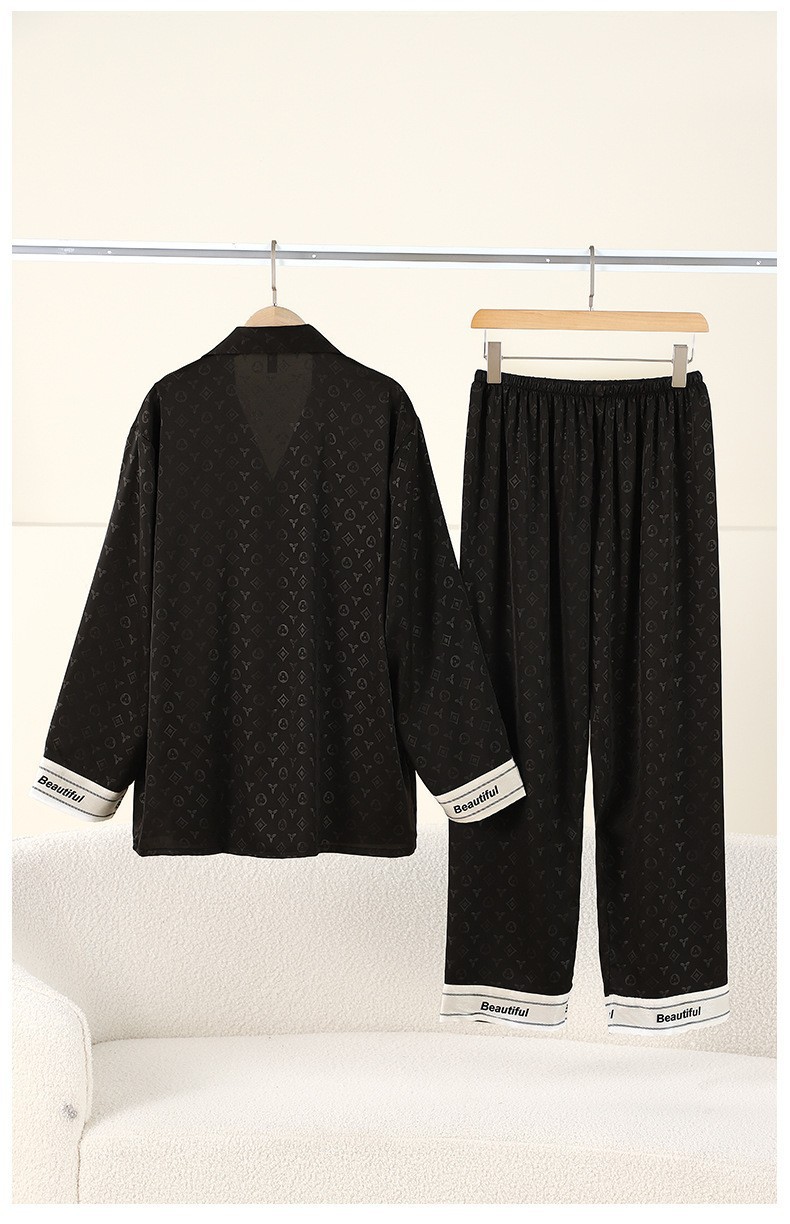 新しい黒いカップルのパジャマの女性春秋氷糸長袖はシルクの夏の家の服の大きいブランドの男性のスーツをシミュレーションします。