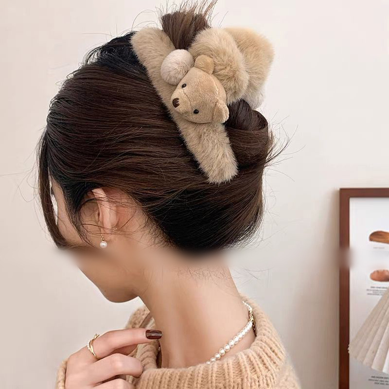 シンプルで万能な秋冬用大きめファーヘアクリップ 女性用2025年新作 シャーククリップ 多量の髪用 ヘアクリップ 後頭部ヘアアクセサリー