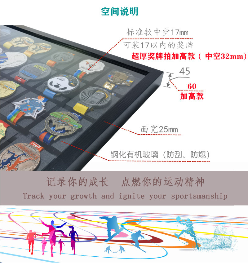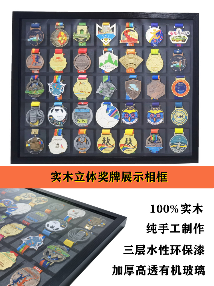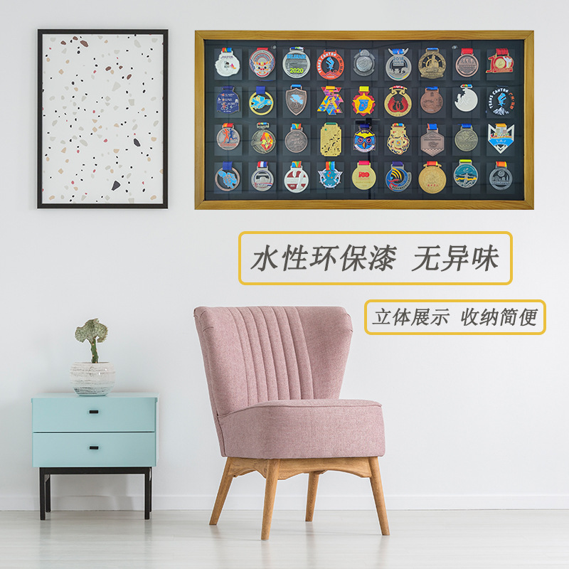額縁フォトフレームマラソンメダル展示棚実木収納スポーツ金メダルスポーツメダル掛け壁中空KEEP