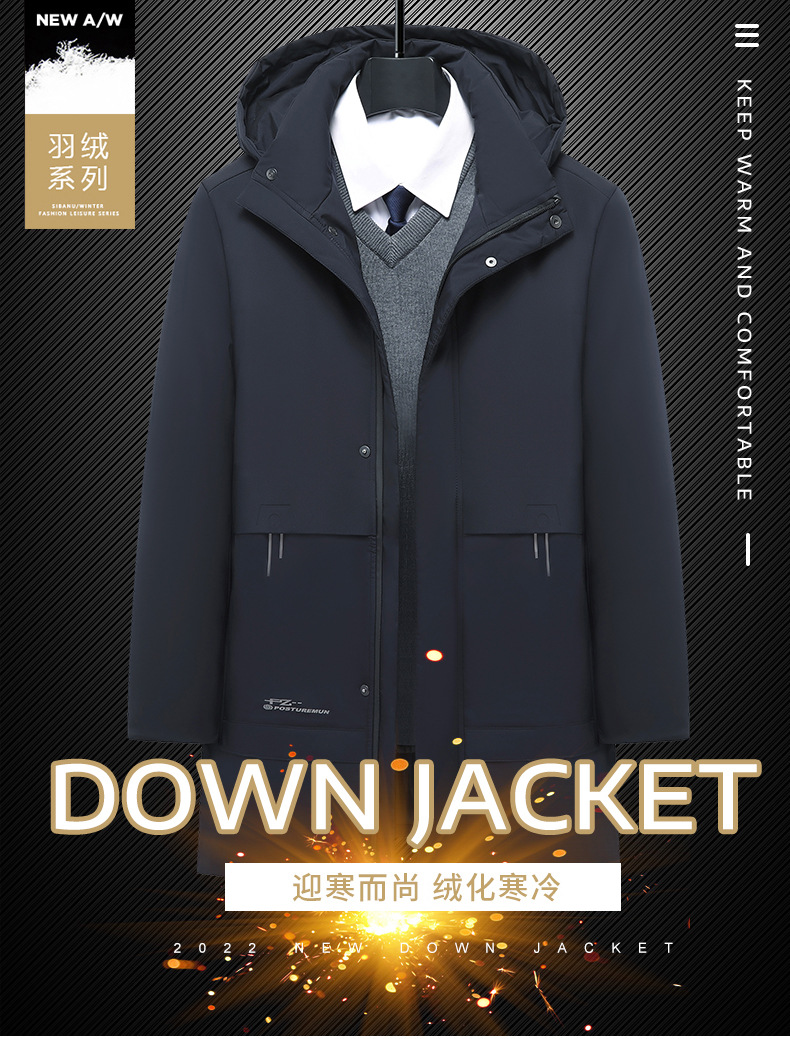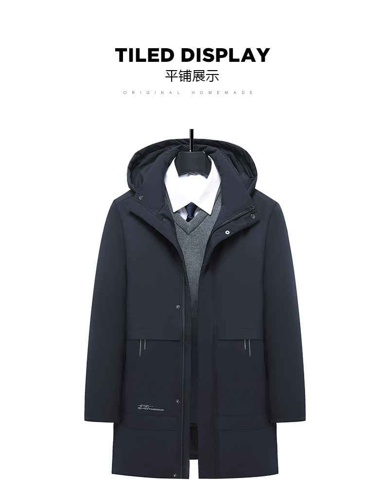 冬用メンズミドル丈ダウンジャケット、中高年のお父さん向け防寒着、取り外し可能なインナーライナー付きビジネスジャケット、防寒仕様