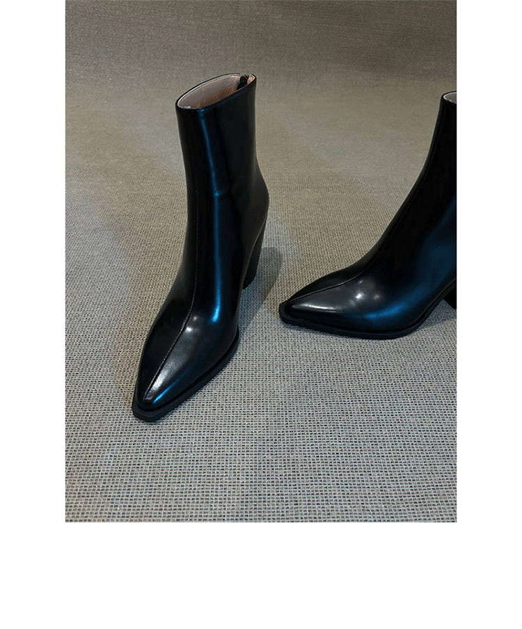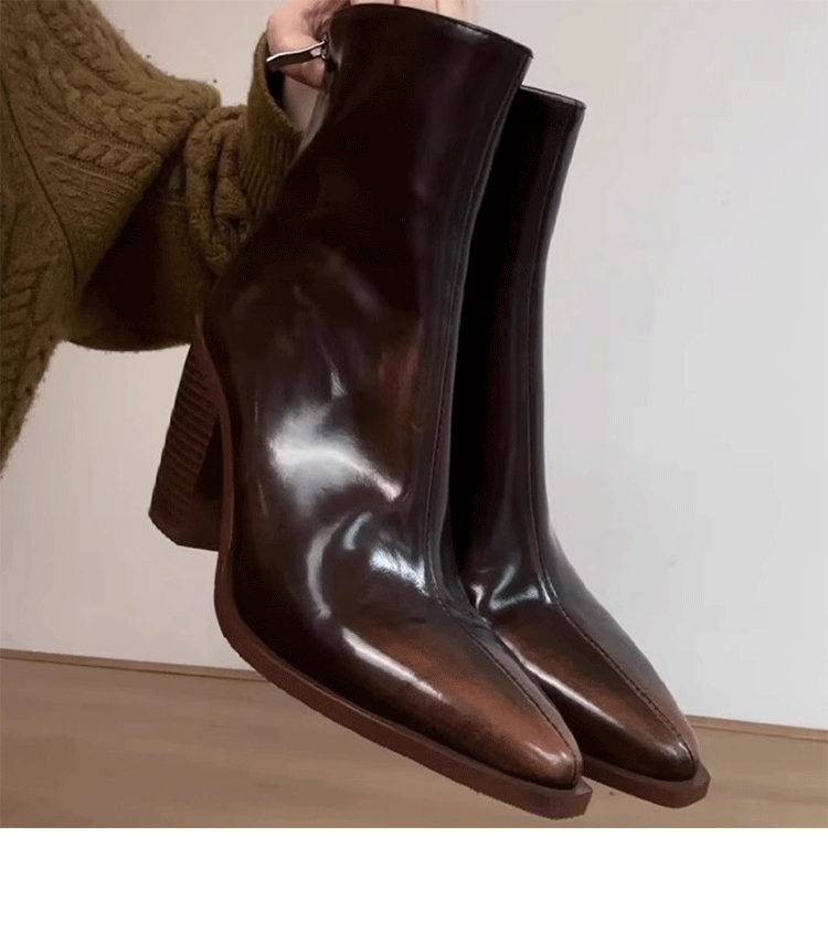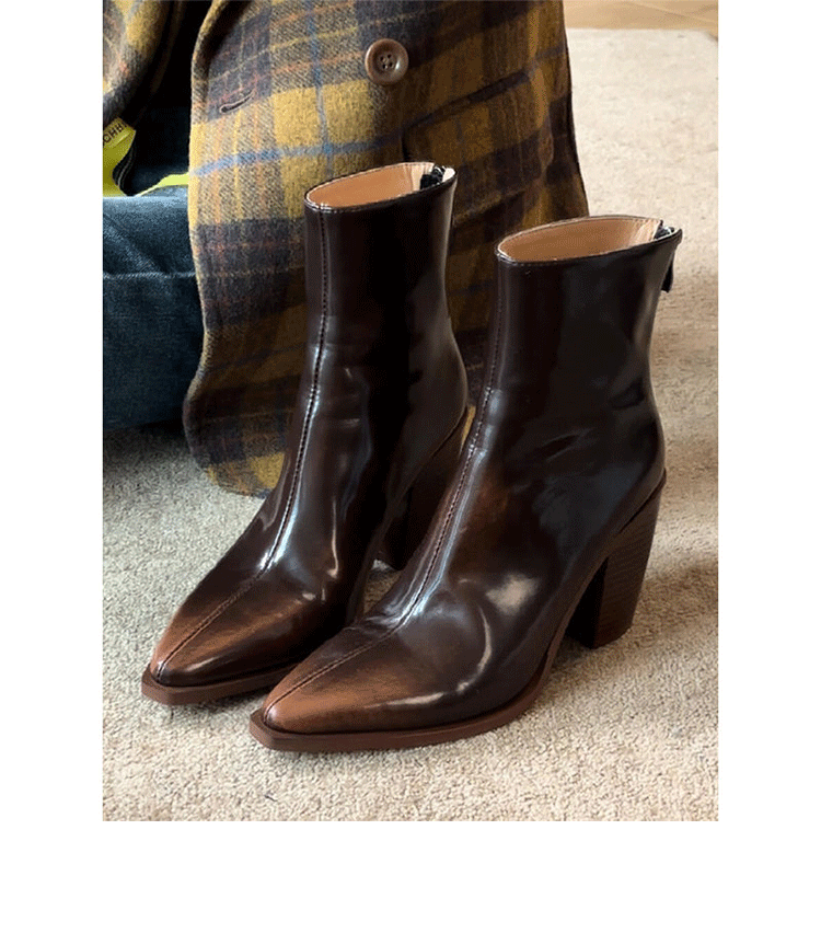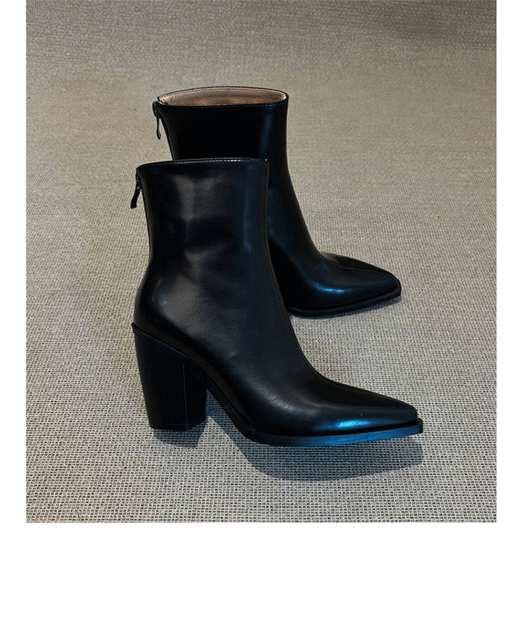 2025秋冬 レトロ ハイヒール 太ヒール 欧米風 ポインテッドトゥ チェルシーブーツ レディース ワイプカラー ショートブーツ バックジッパー スリムブーツ
