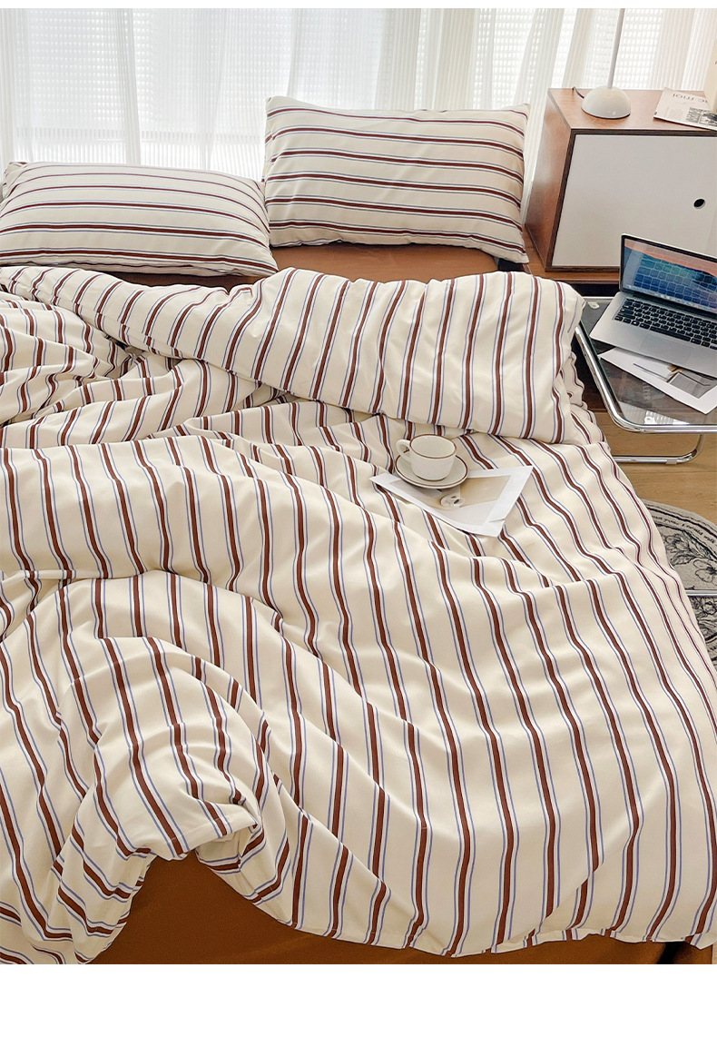 国境を越えたレトロでシンプルなストライプの日本式水洗い研磨ベッド用品4点セットのシーツカバー3点セットの代理