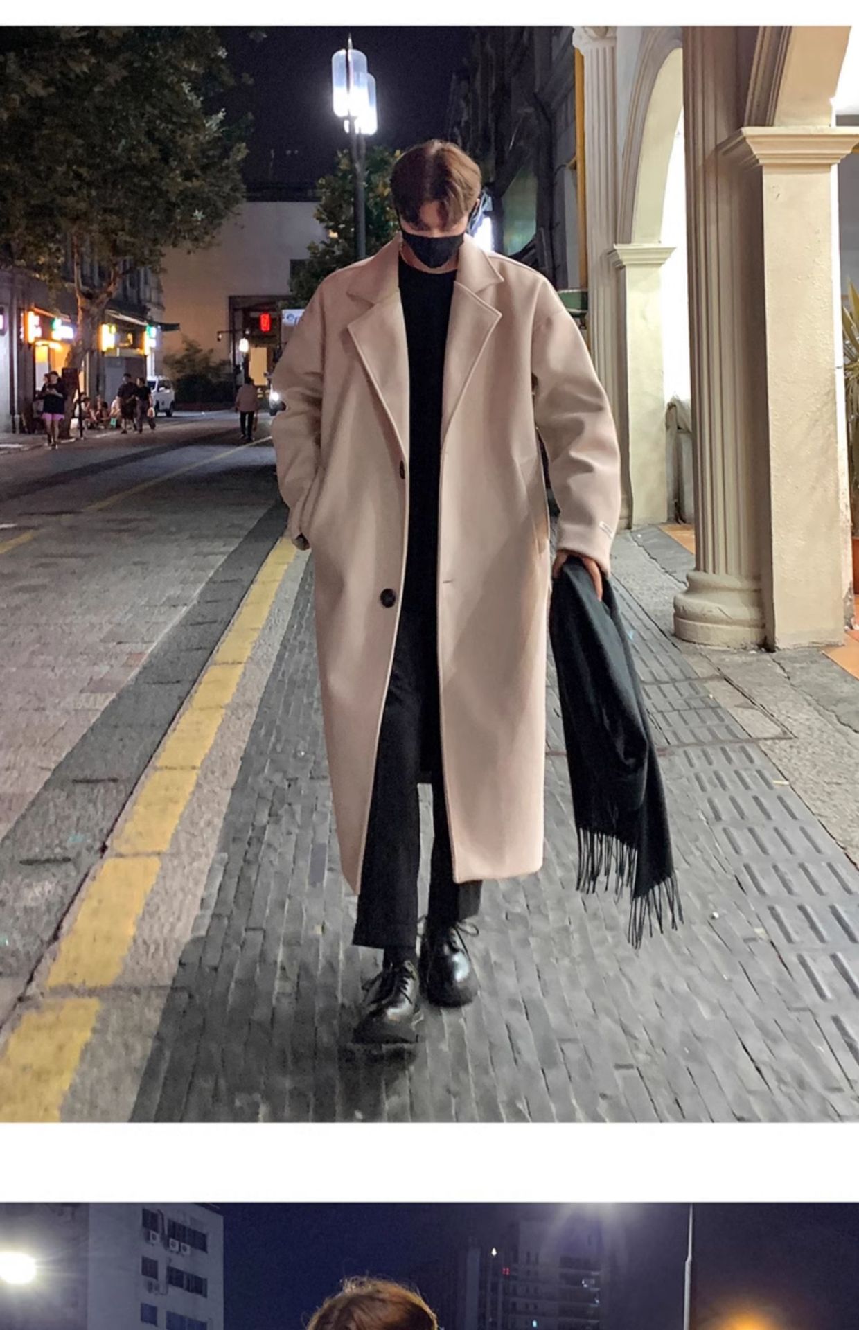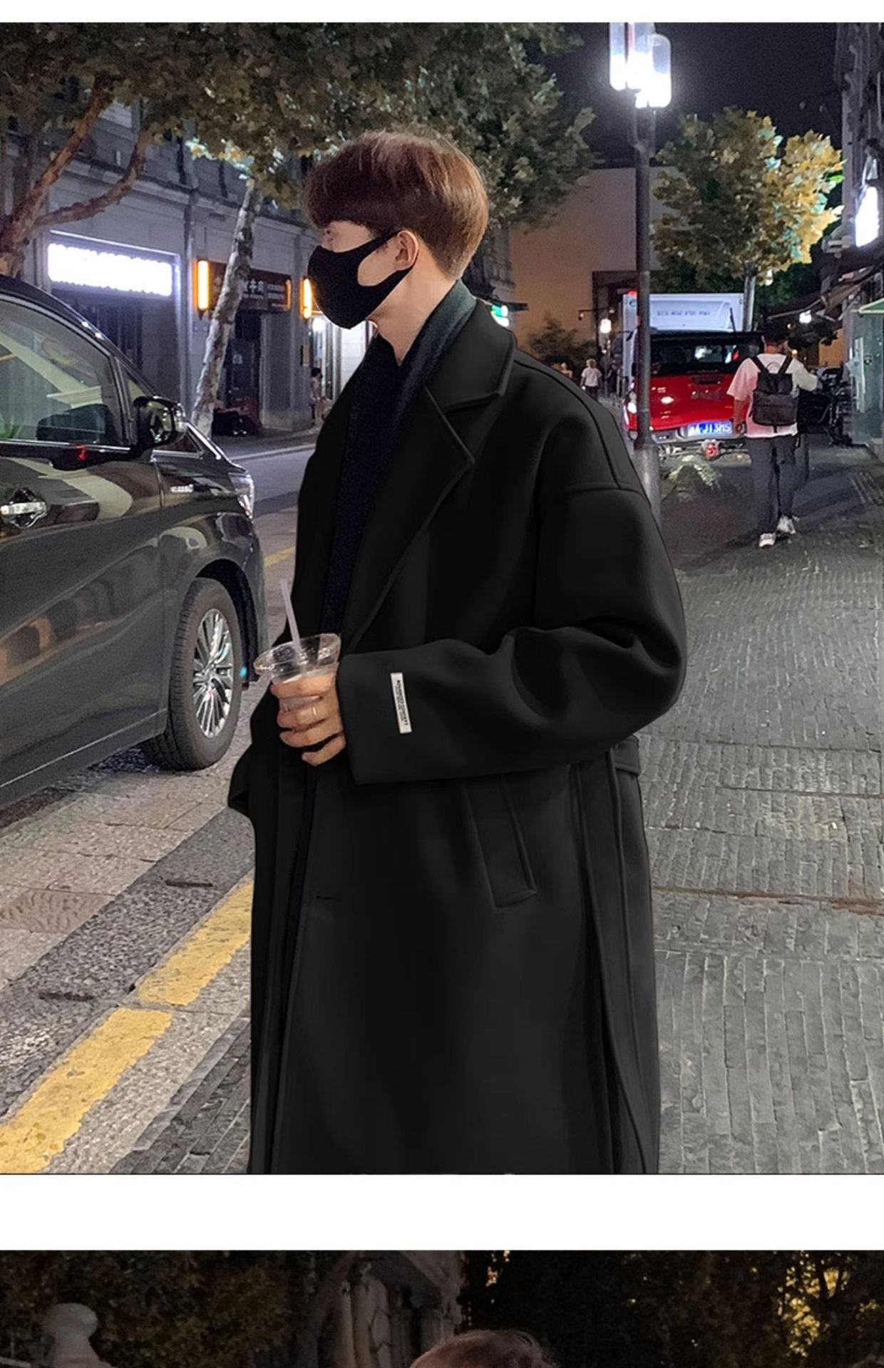 韓国版百合の中長のウインドブレーカーの男性の秋冬のタイプは膝の英倫の風毛のコートを過ぎてゆったりとしています。