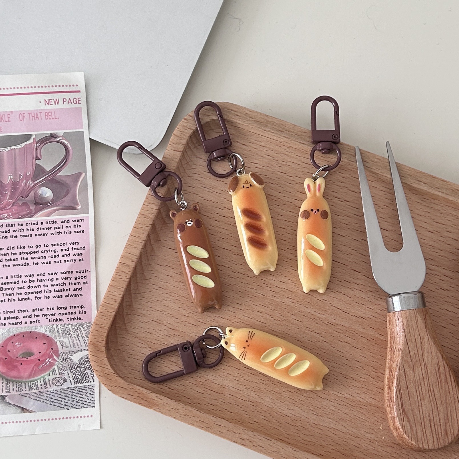 カレーボタンe 27うさぎの熊の棒のパンの食べ物と遊びのキーホルダーが可愛いです。