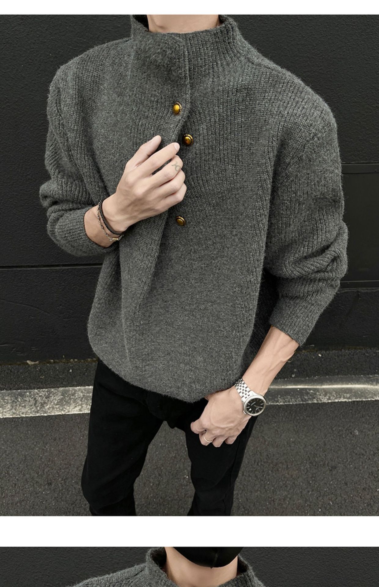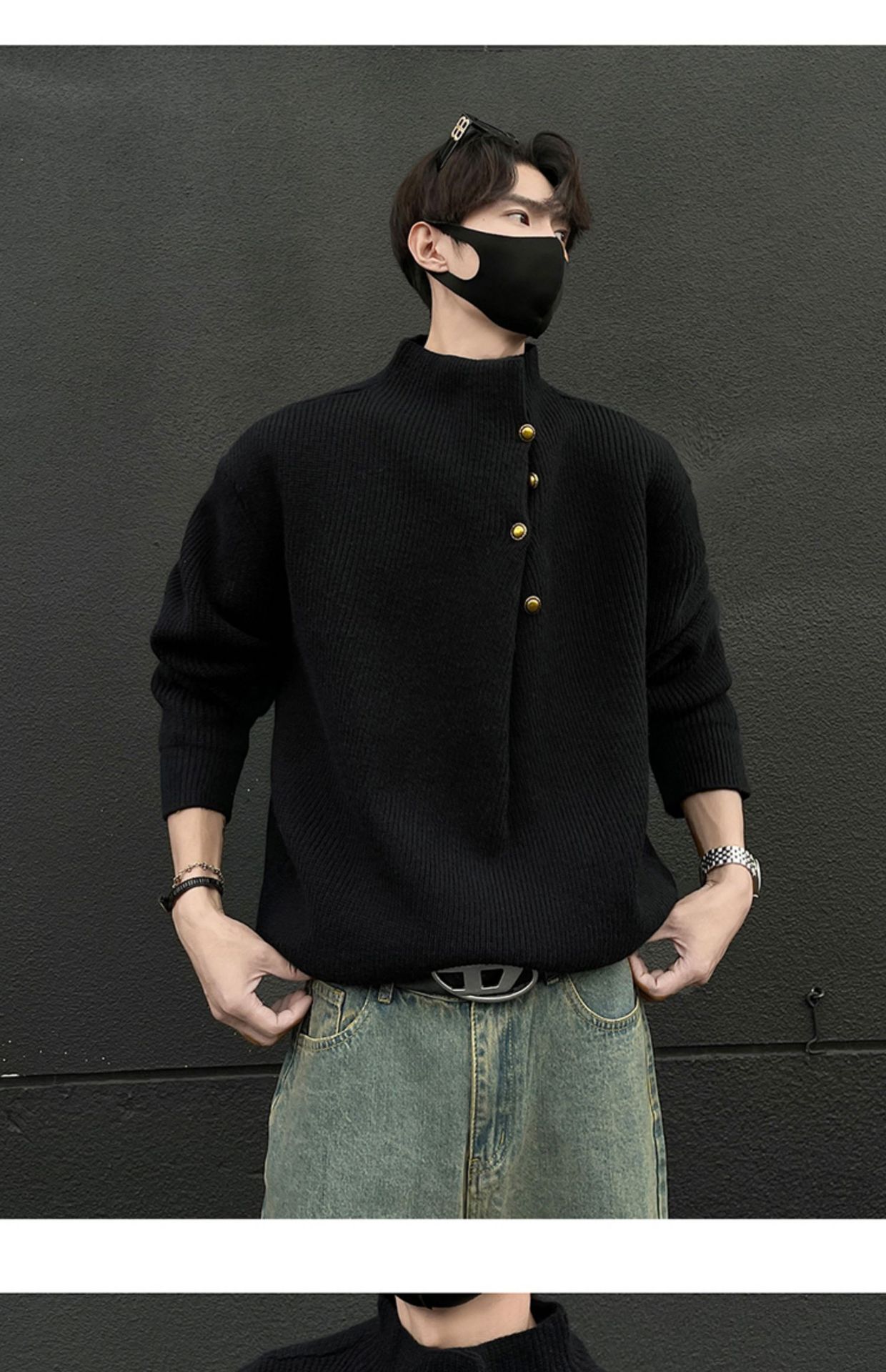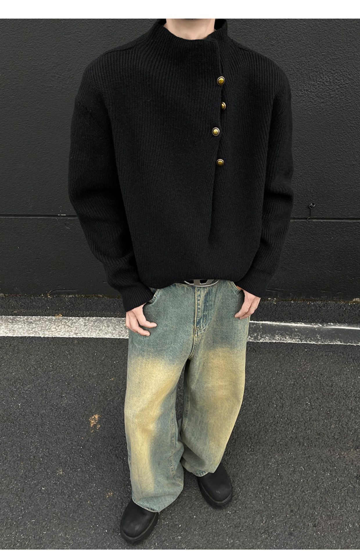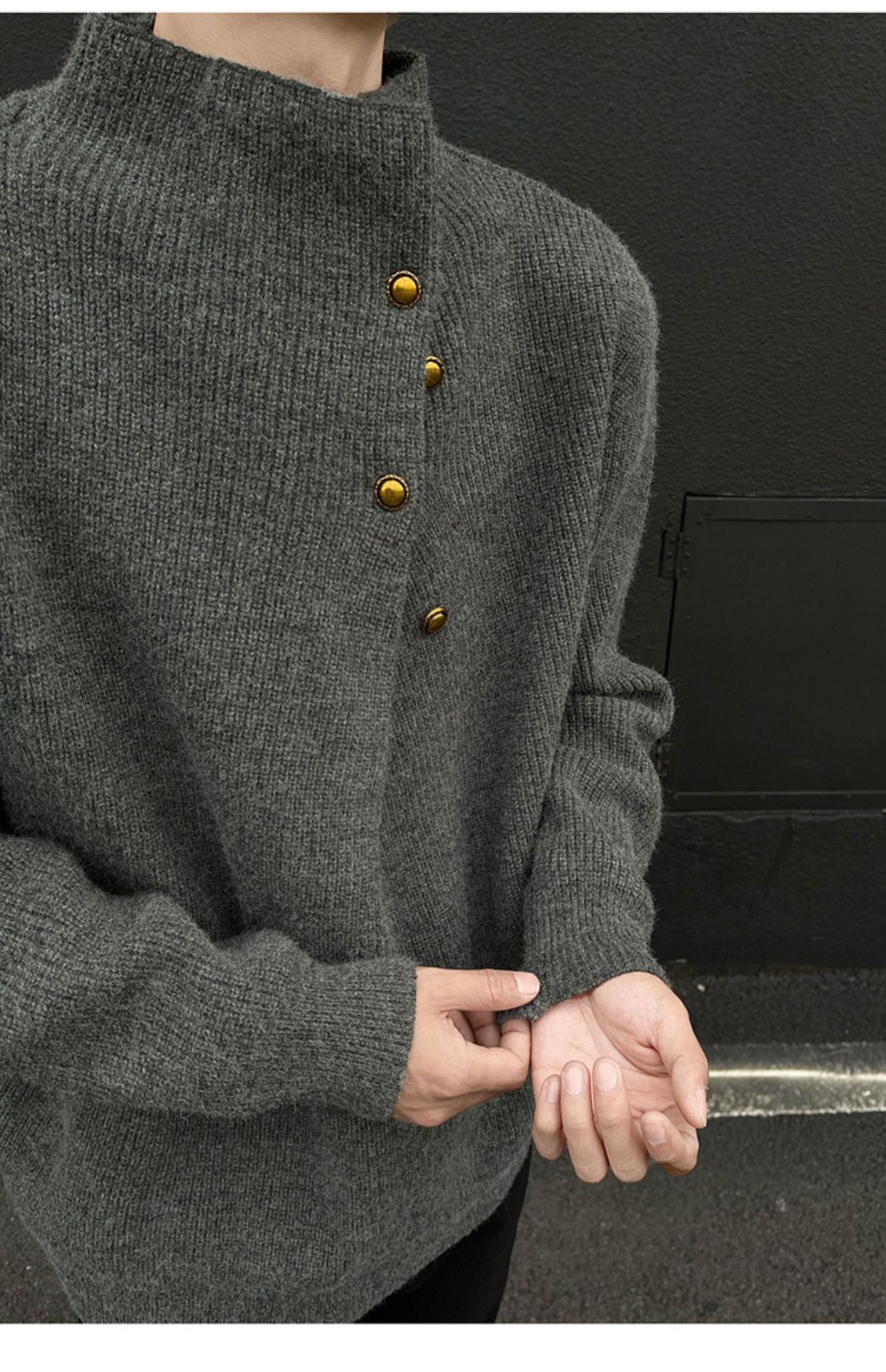 不規則なボタンのデザイン感の高い襟のセーターの男性の韓国系のファッションのブランドのごろつきのハンサムで怠惰なoversizeニットの上着