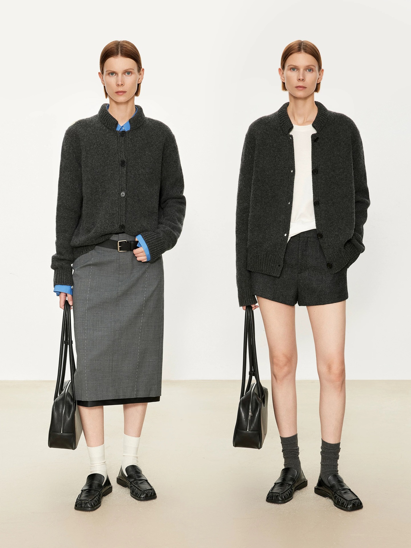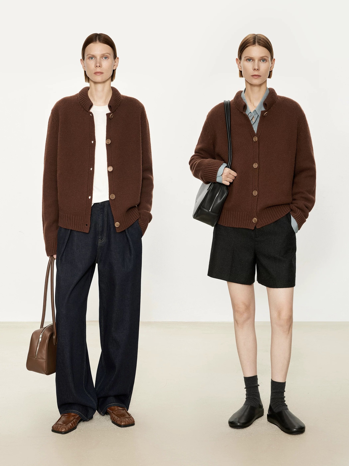 复古小立领开衫 解锁“懒人”时髦 100%绵羊毛~英式风格羊毛粗针 演绎时髦穿搭耳目一新的复古双层小立领开衫融入Jing致纽扣门襟 设计感&实穿性齐行&造型感宽松版型 可以叠穿 有层次, 可单穿可做外套