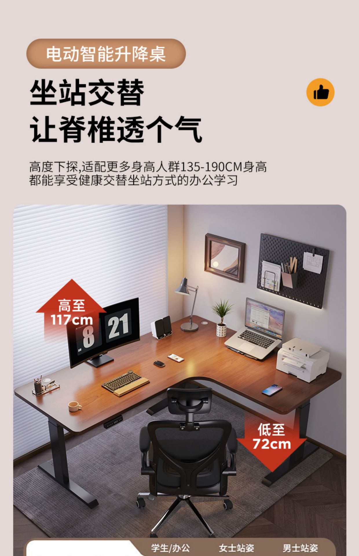 Tコーナースマート電動昇降テーブル家庭用デスク学習机L型テーブルコーナー昇降コンピュータデスク