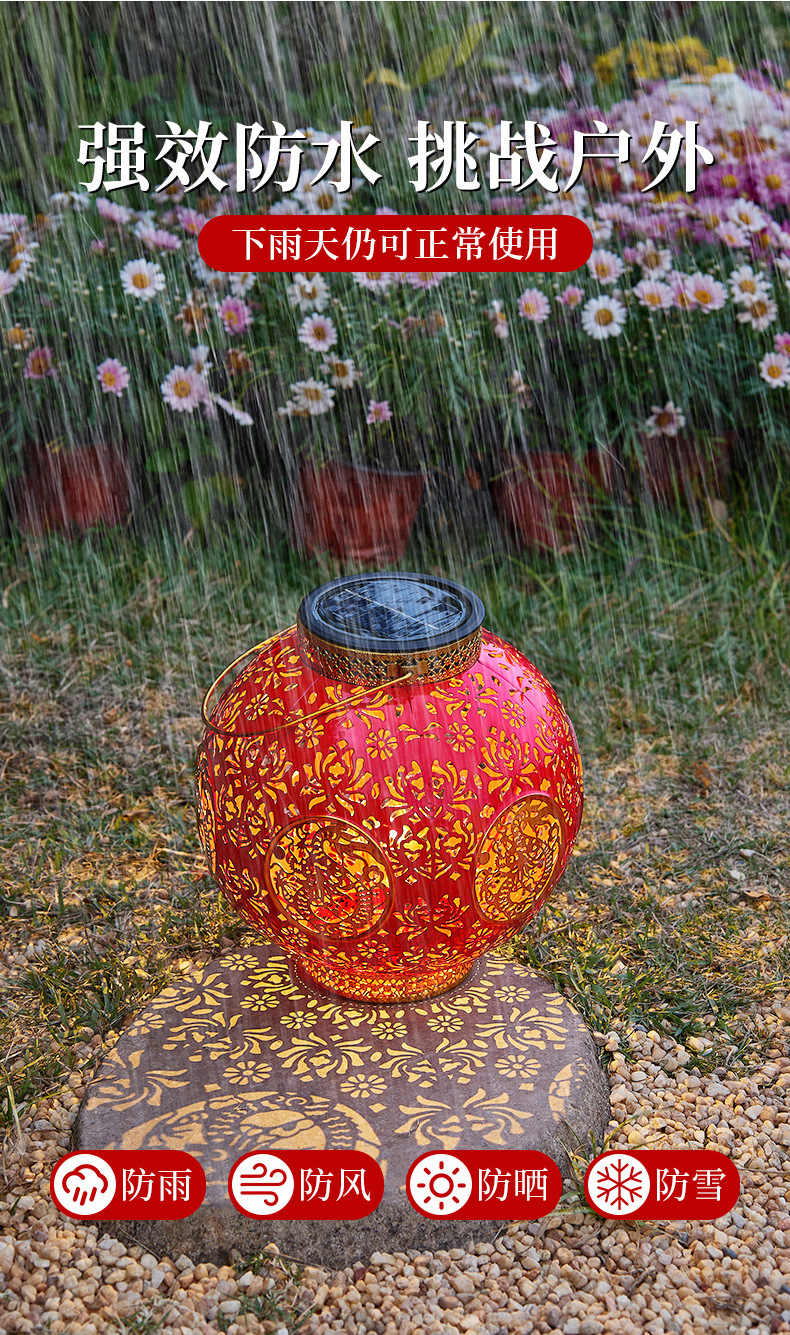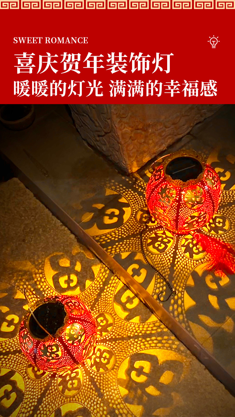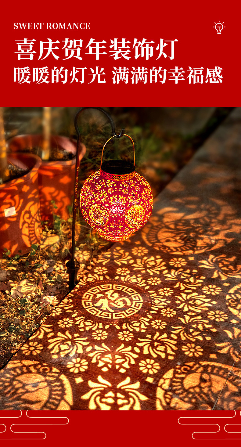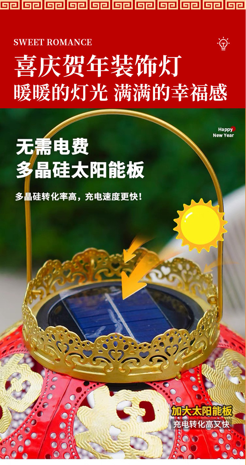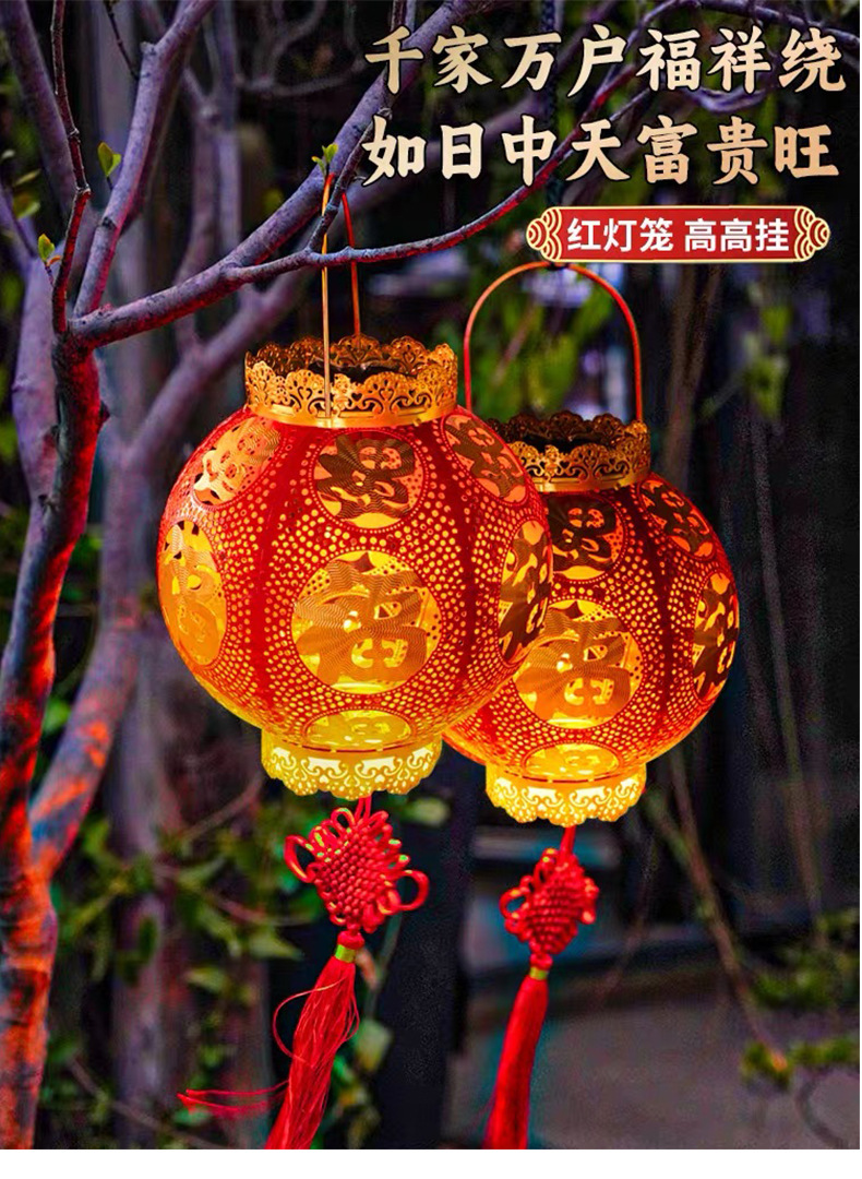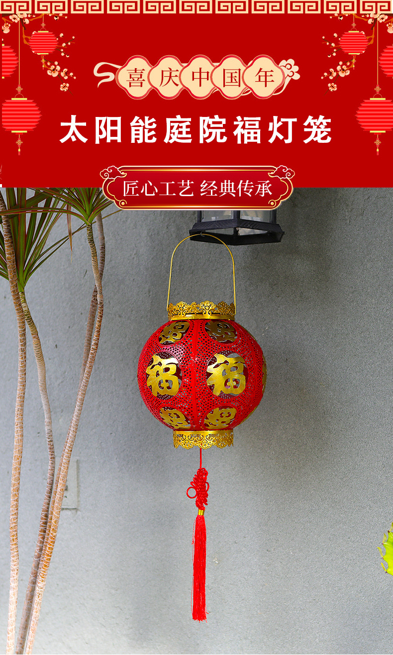 【太陽エネルギーUSB】2025爆発金紅提灯福字太陽エネルギーは新年を祝って庭の花園を飾る