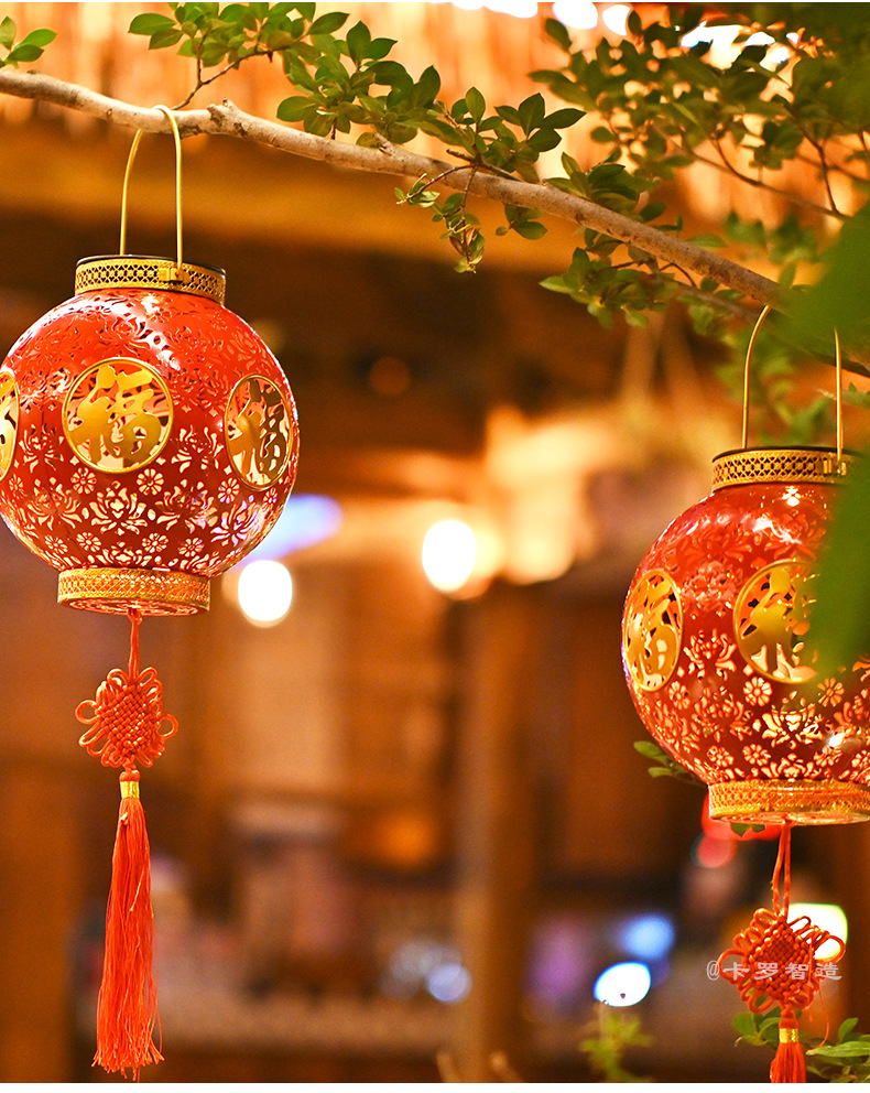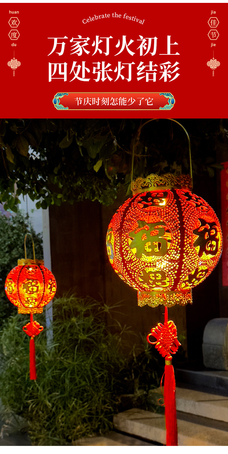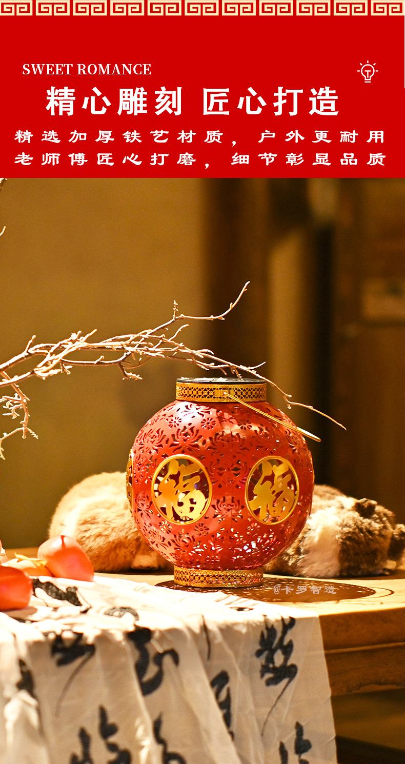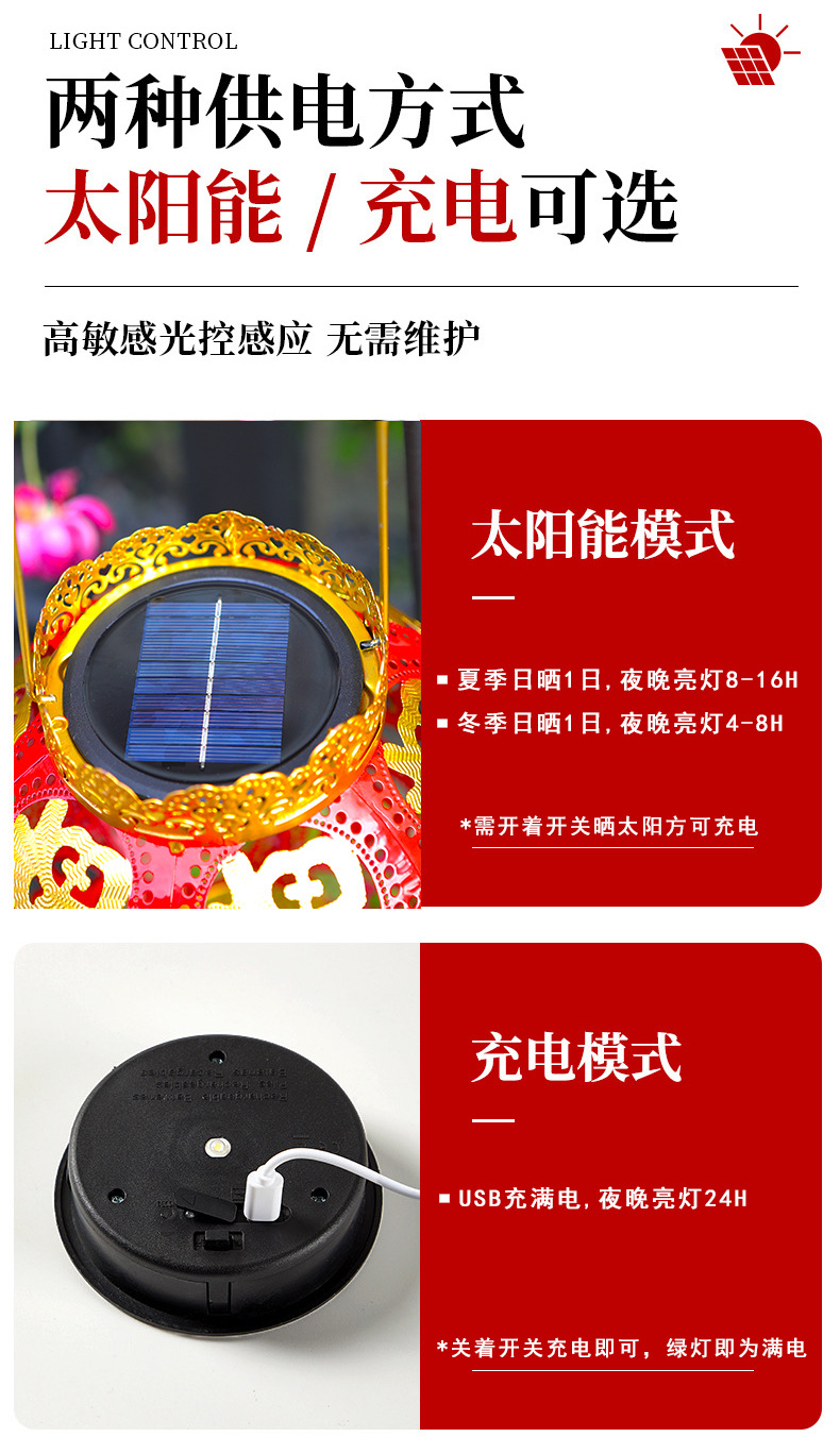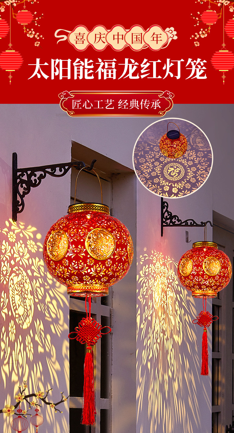 【太陽エネルギーUSB】2025爆発金紅提灯福字太陽エネルギーは新年を祝って庭の花園を飾る