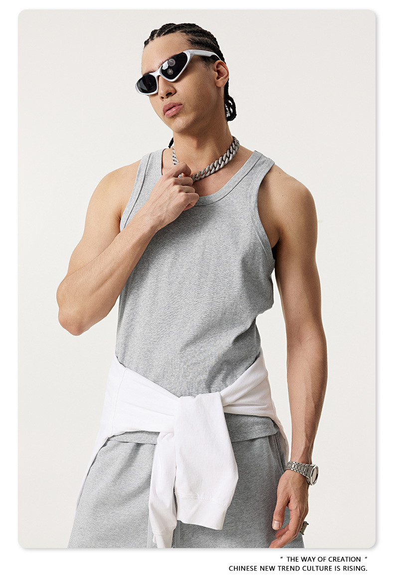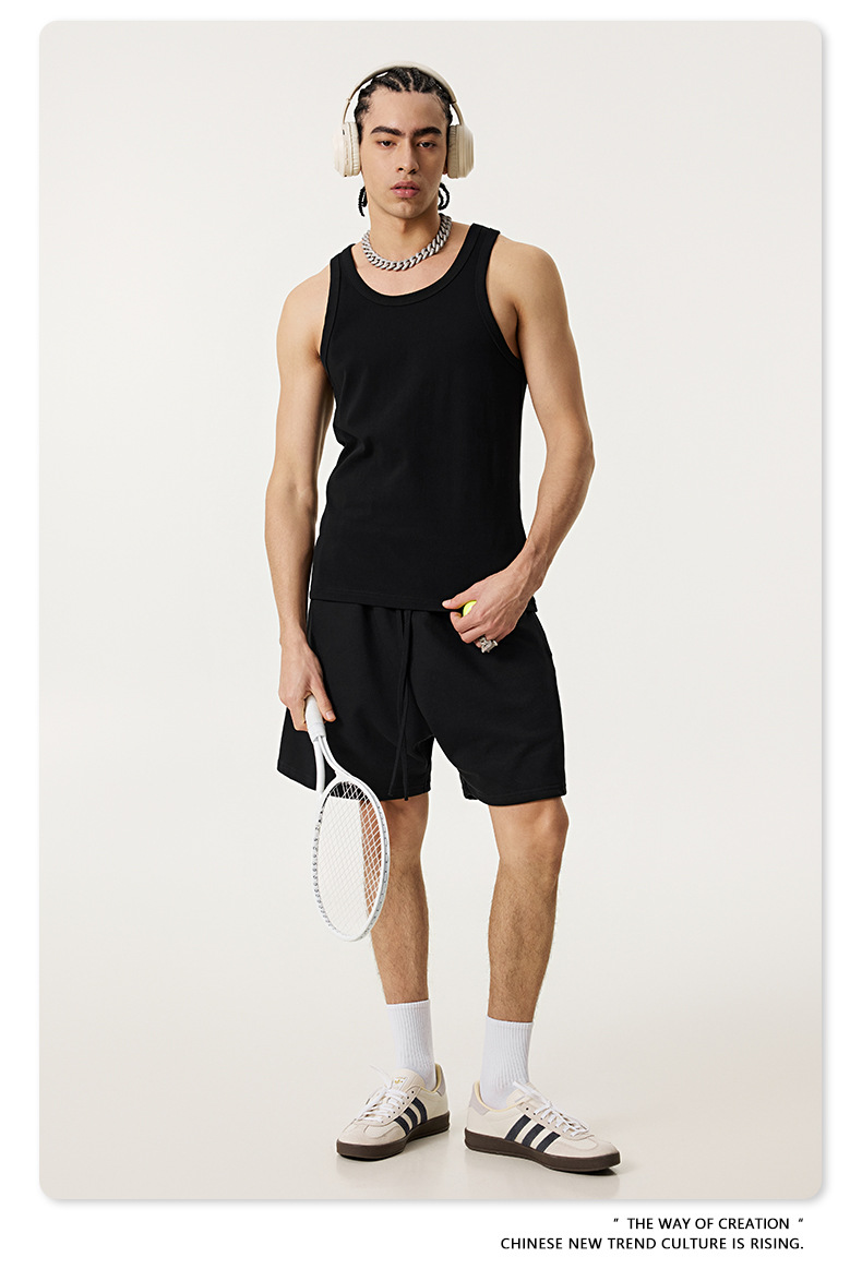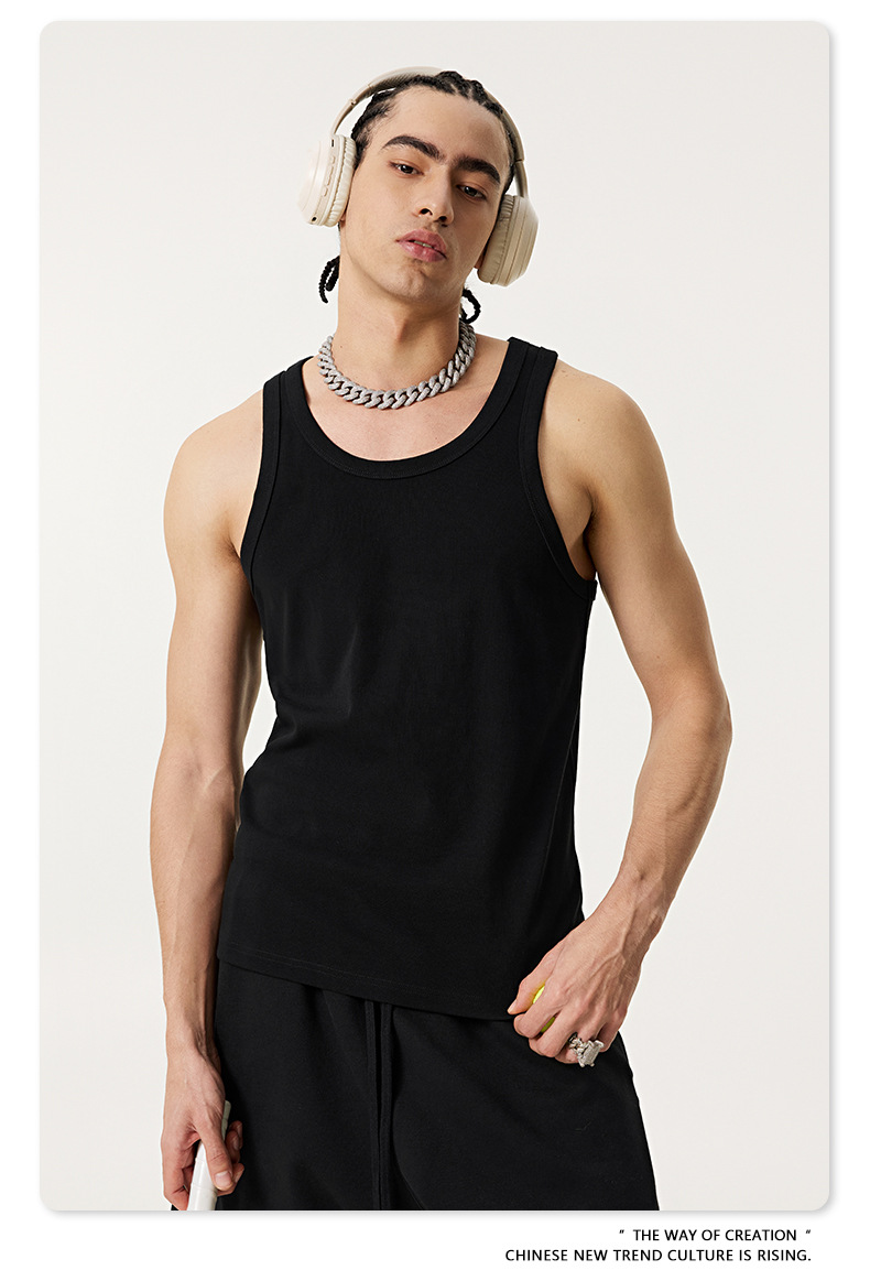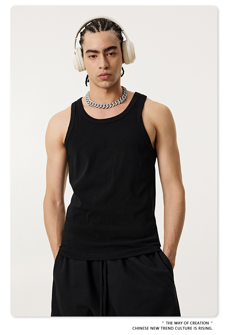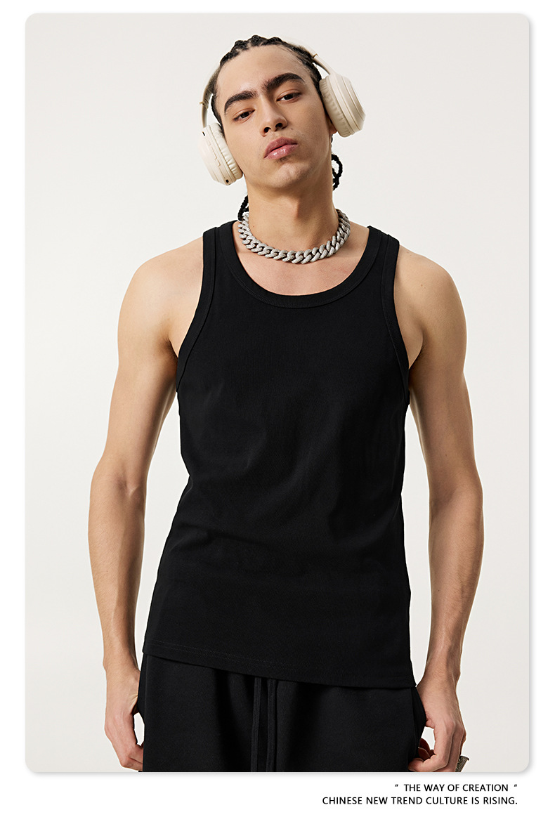 2025夏の韓国の大きいサイズの袖なしのtシャツのメンズの純色のインナーベストのハードルのスポーツのレジャーの汗のシャツの男性の潮