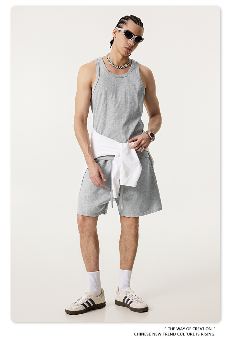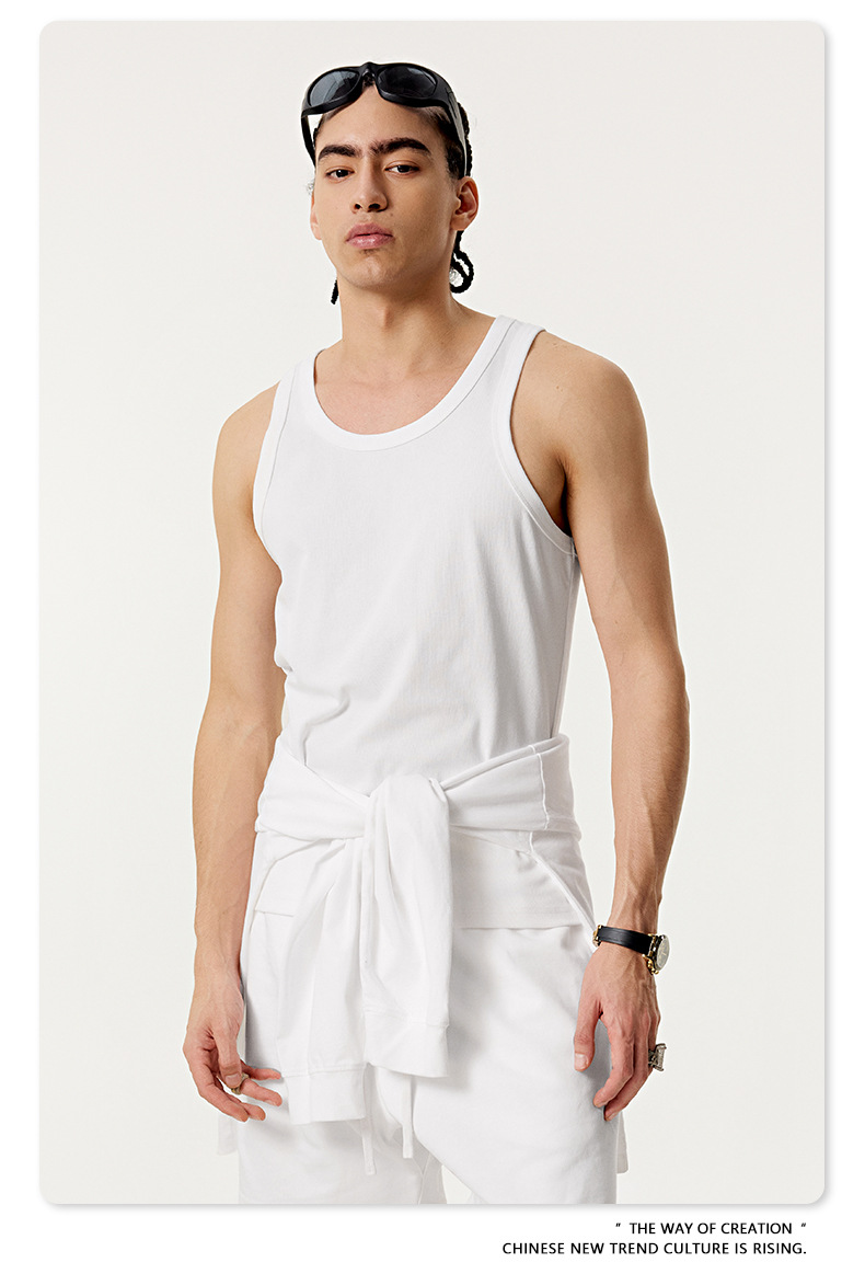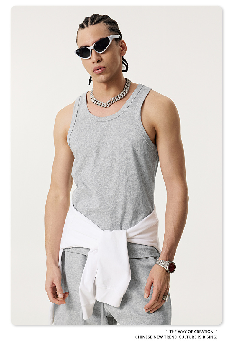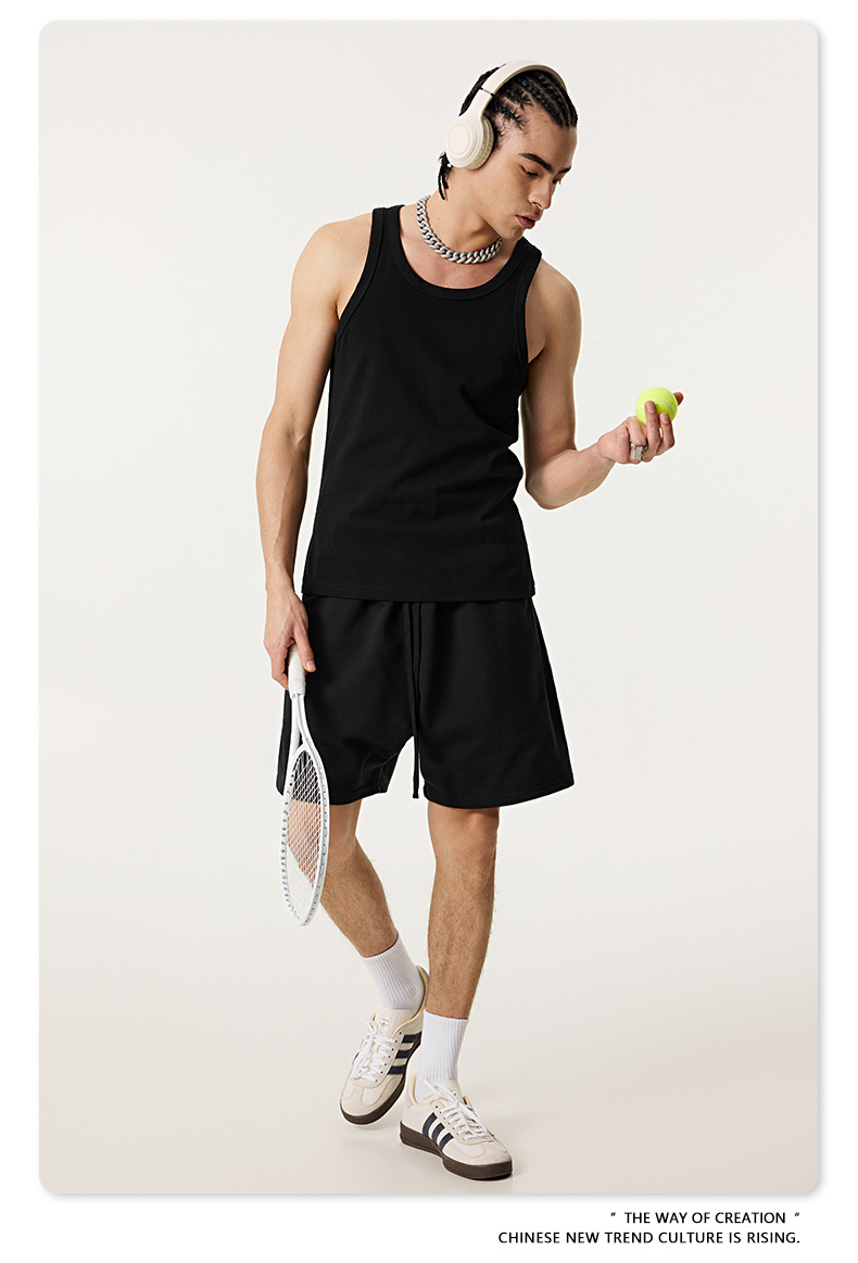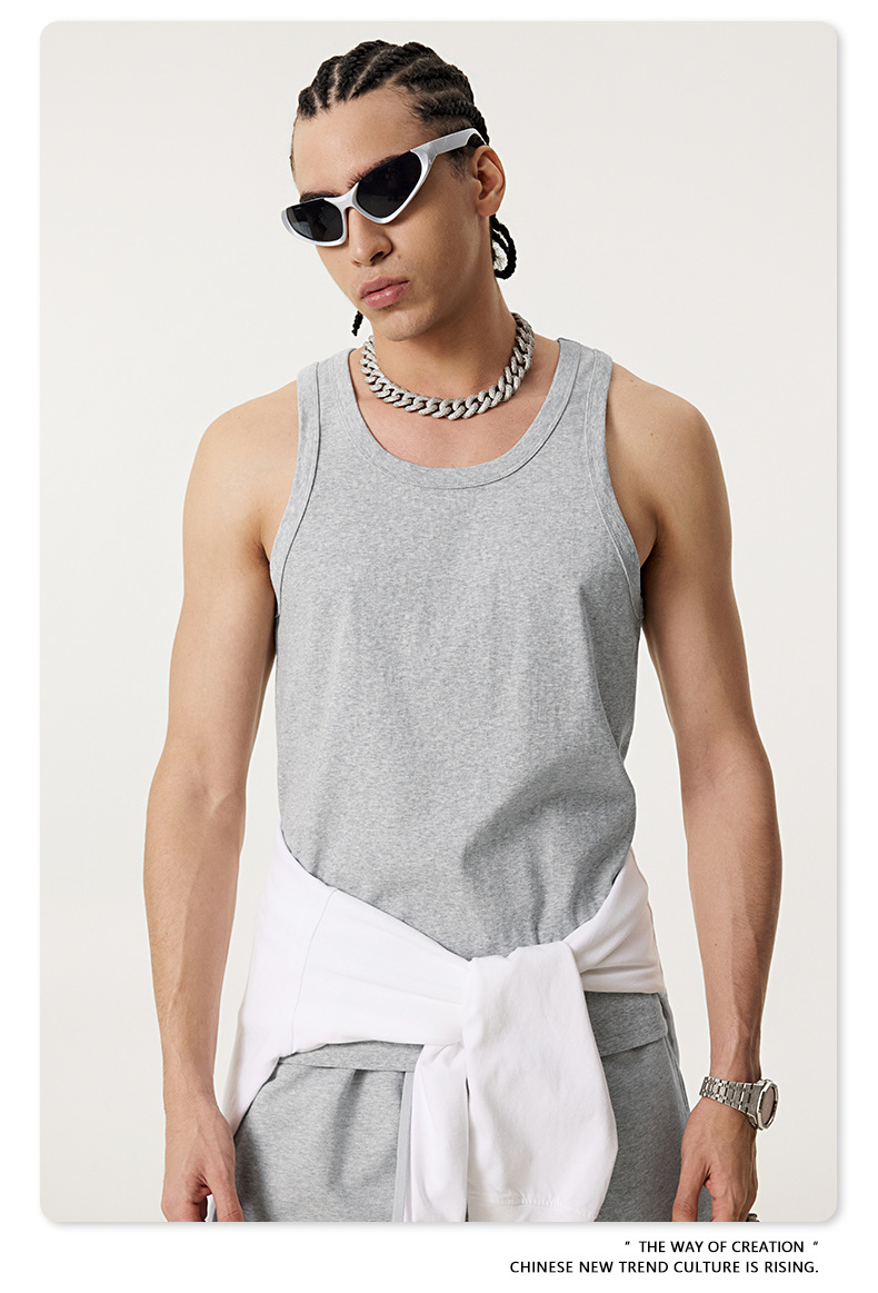 2025夏の韓国の大きいサイズの袖なしのtシャツのメンズの純色のインナーベストのハードルのスポーツのレジャーの汗のシャツの男性の潮
