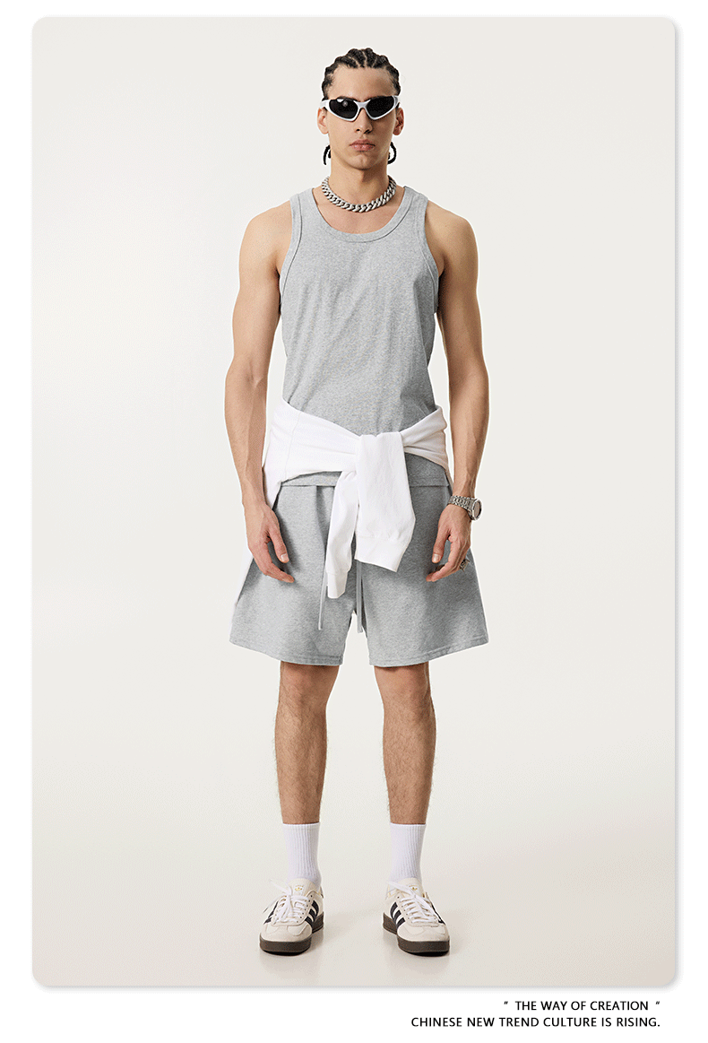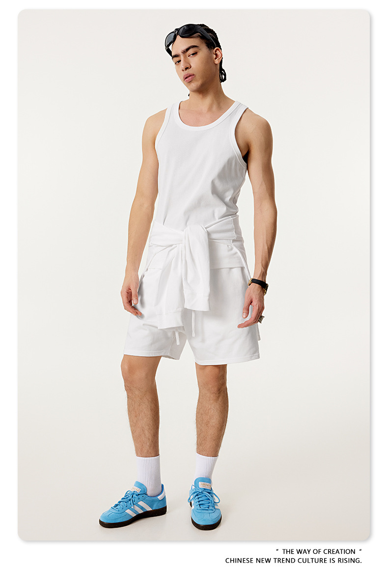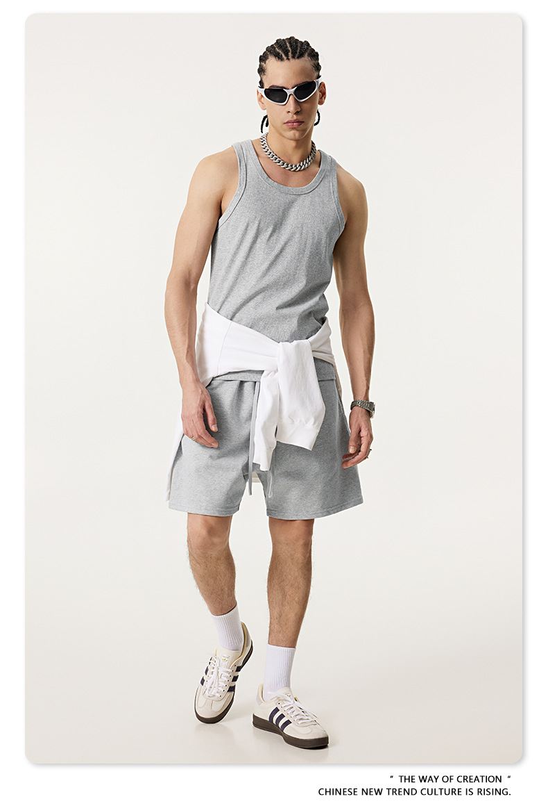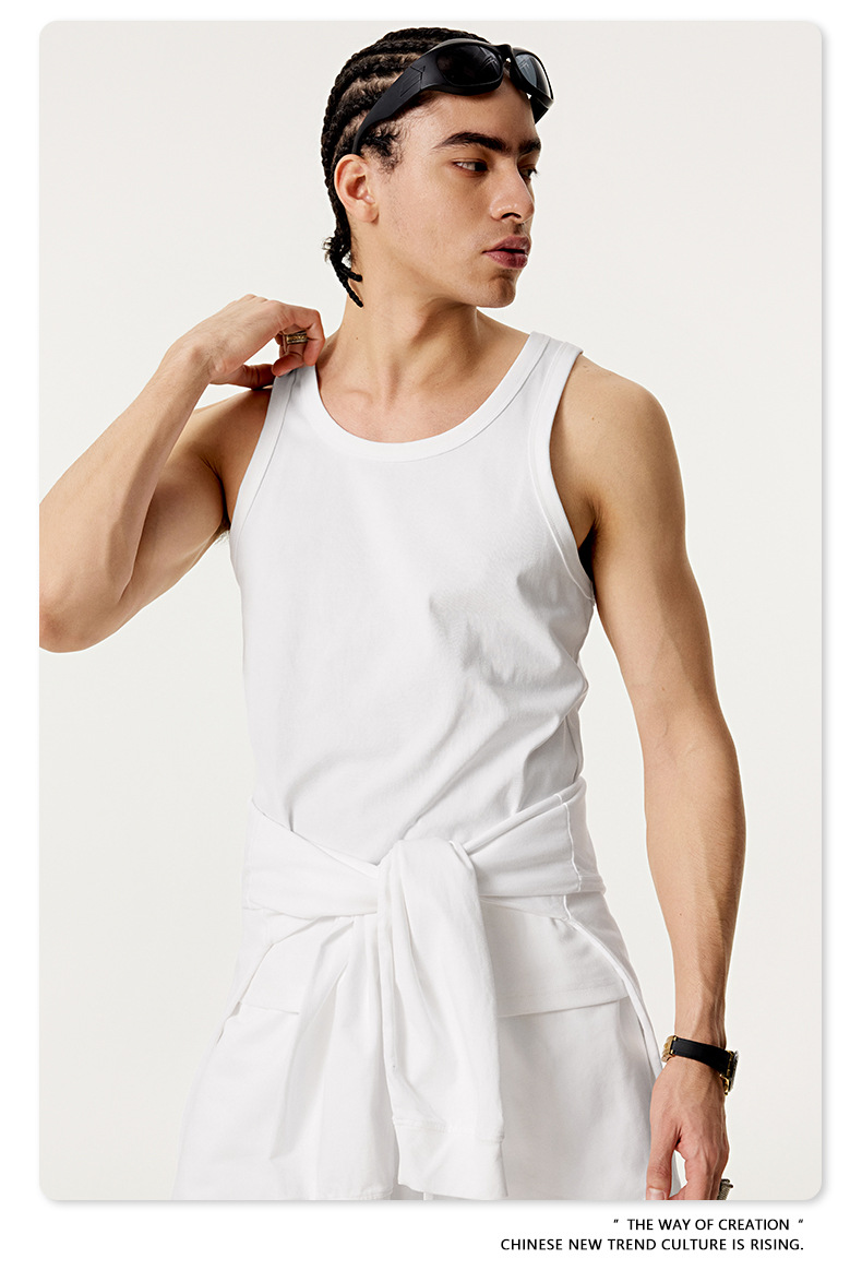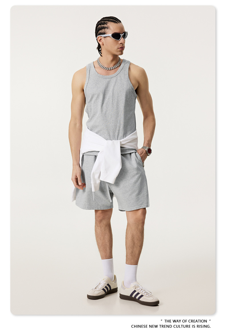 2025夏の韓国の大きいサイズの袖なしのtシャツのメンズの純色のインナーベストのハードルのスポーツのレジャーの汗のシャツの男性の潮