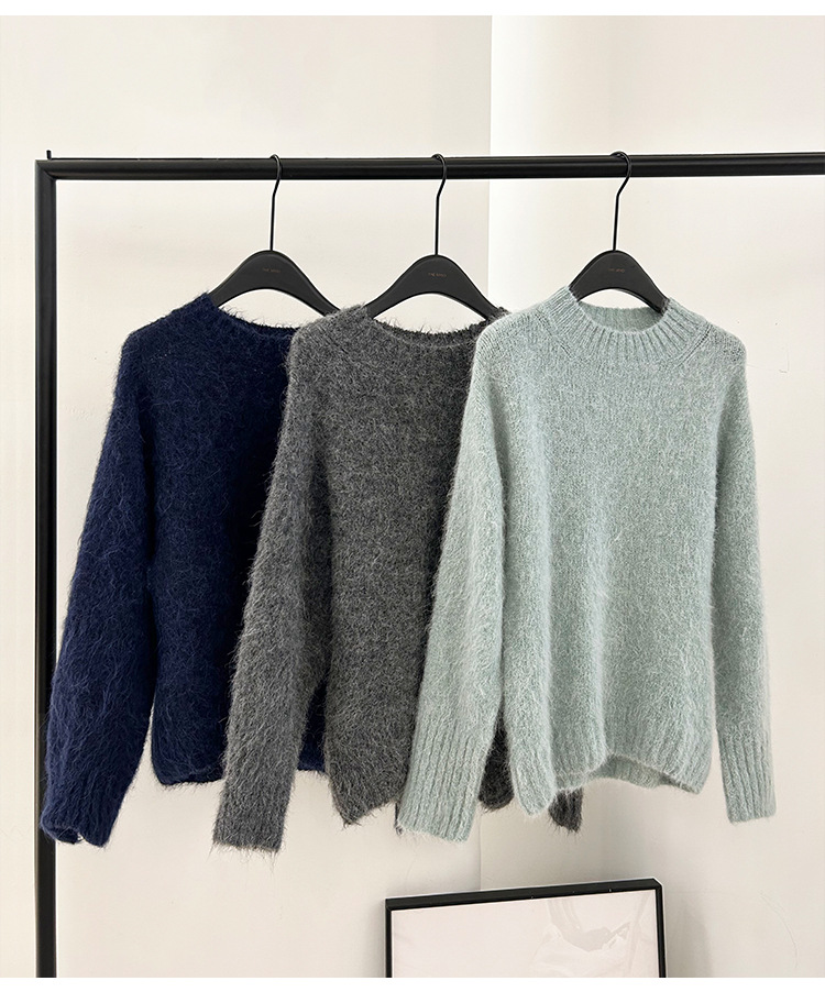 【広州6m】アルパカウールのゆったりとしたセーター2025冬服韓国版シンプル長袖ラウンドネックトップスM9253