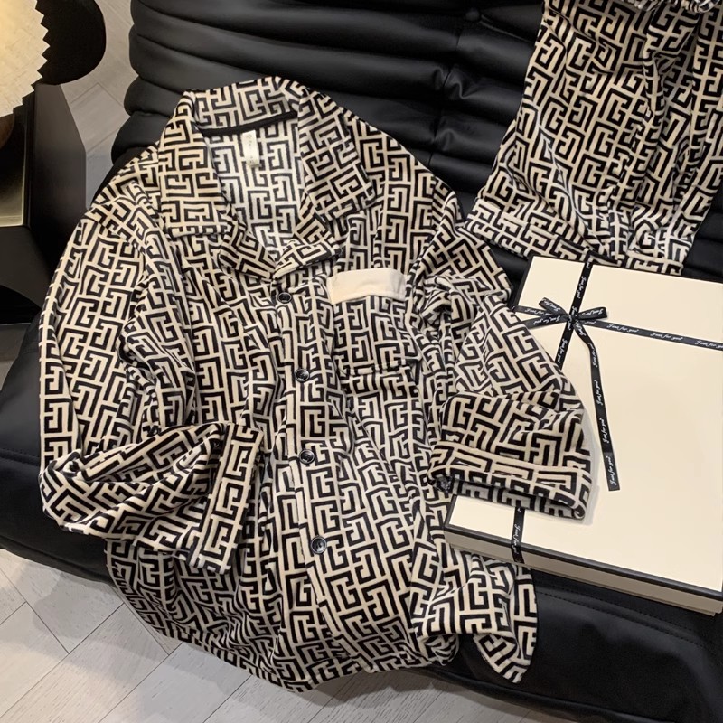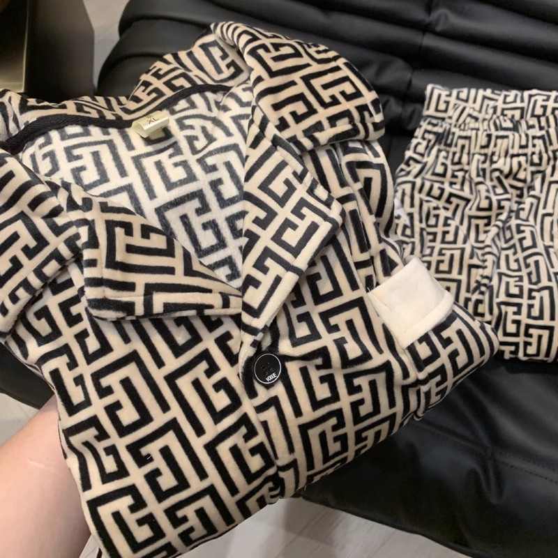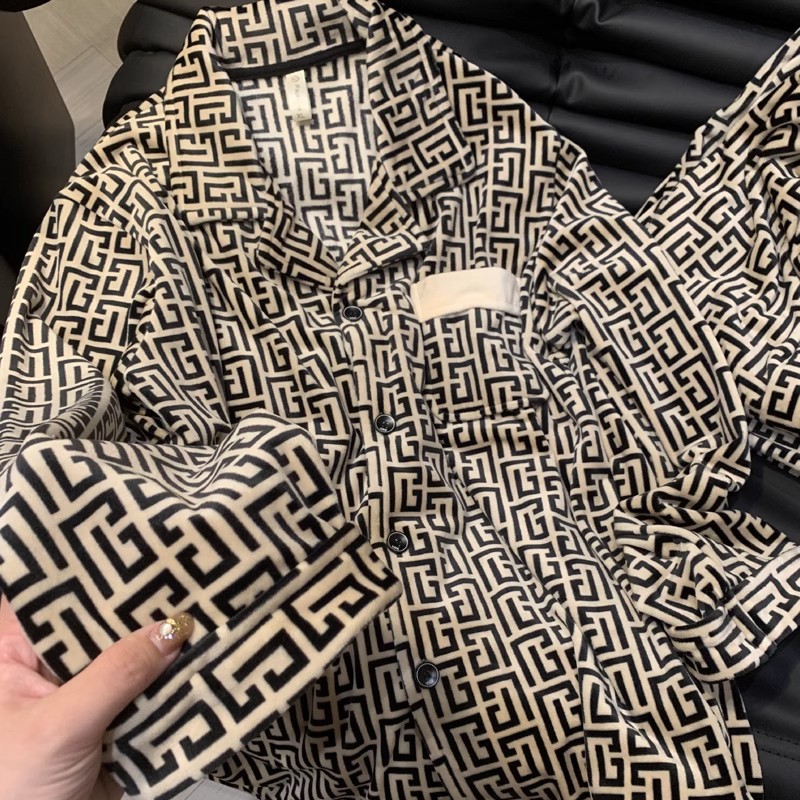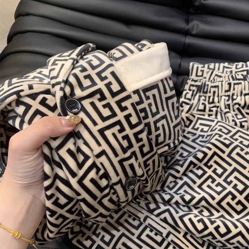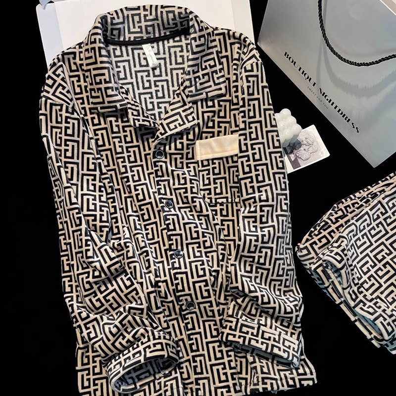 海島毛カップルパジャマ女性スタイル秋冬厚手長袖フランネル男性保温高級ホームウェアセット