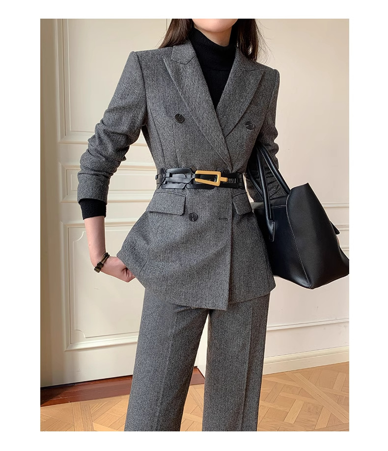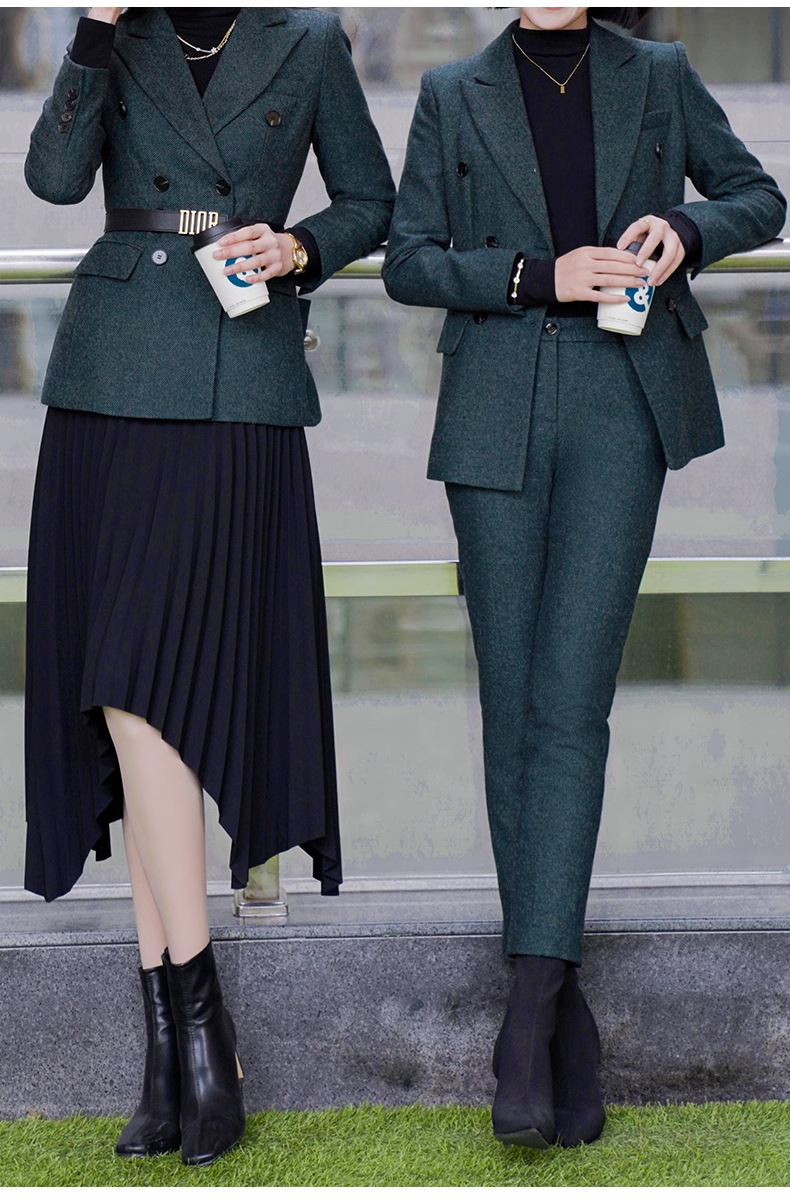 ウールのスーツのコートの女性の冬の厚手の2024の新型の高級感のビジネスの通勤のスーツの毛のスーツの正装
