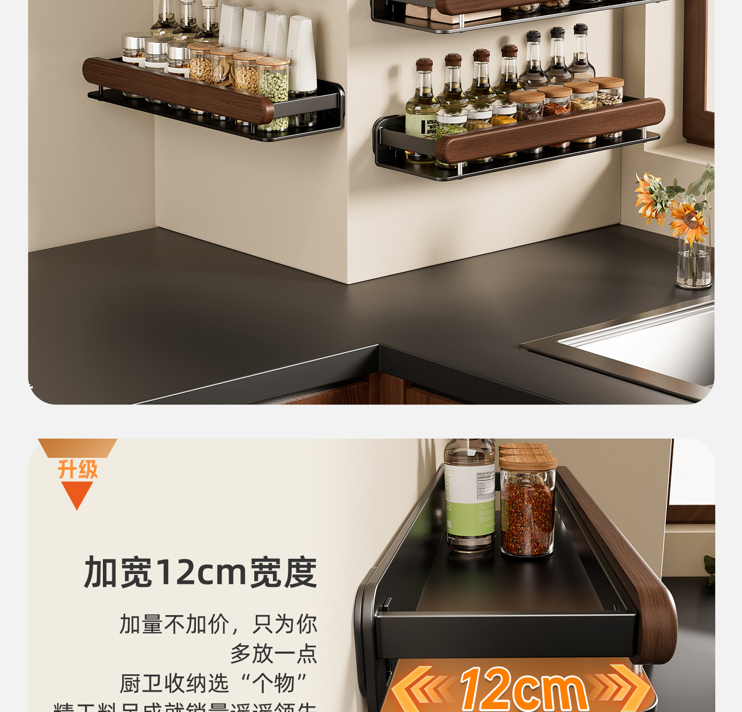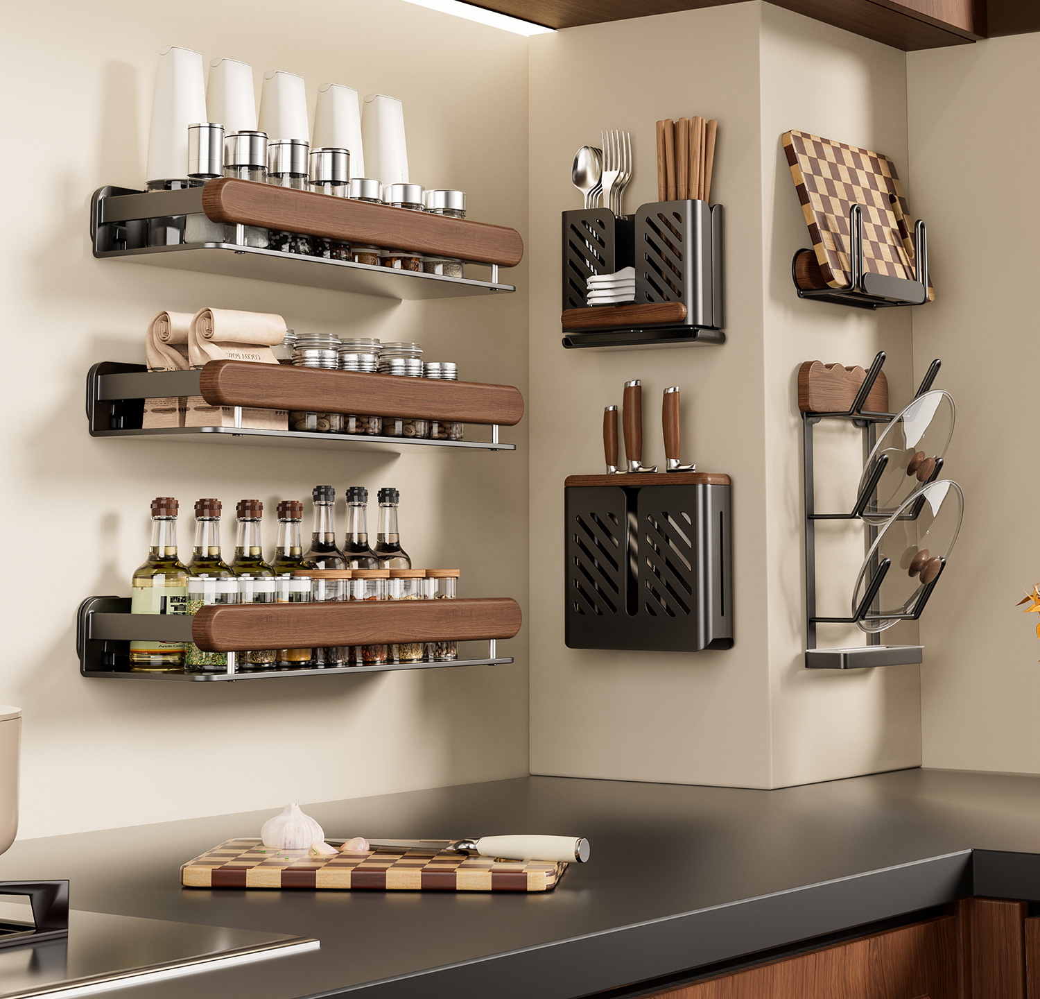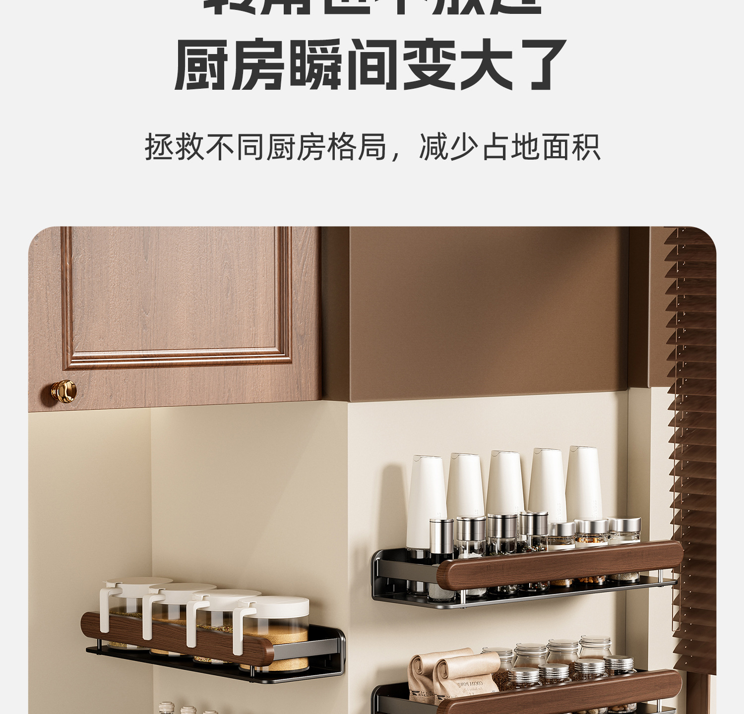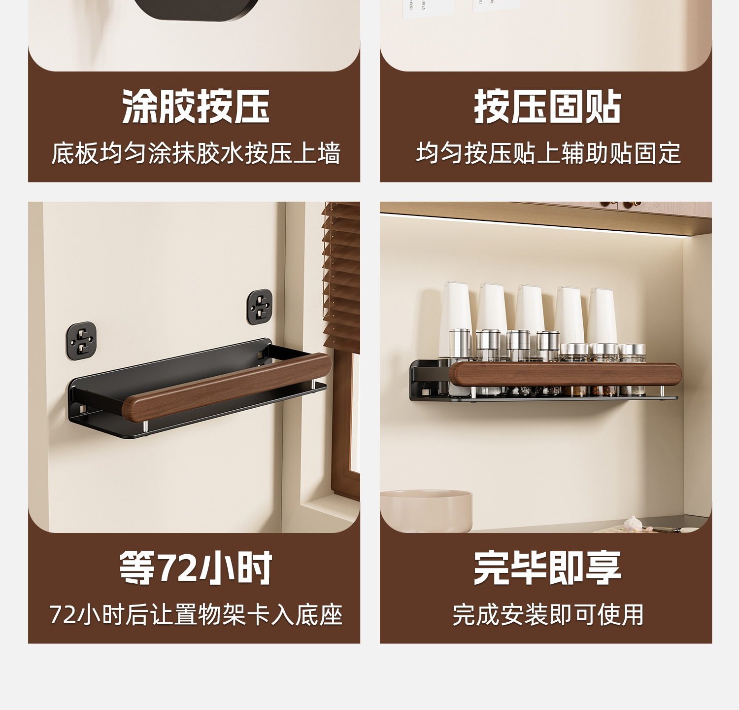 個物胡桃木厨房調味料品缶棚壁掛け式穴なし壁多機能収納棚