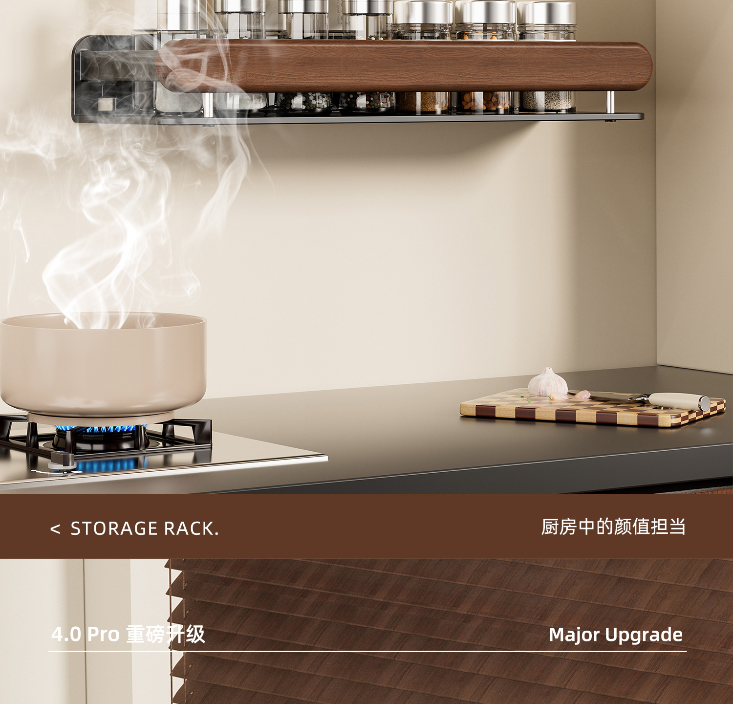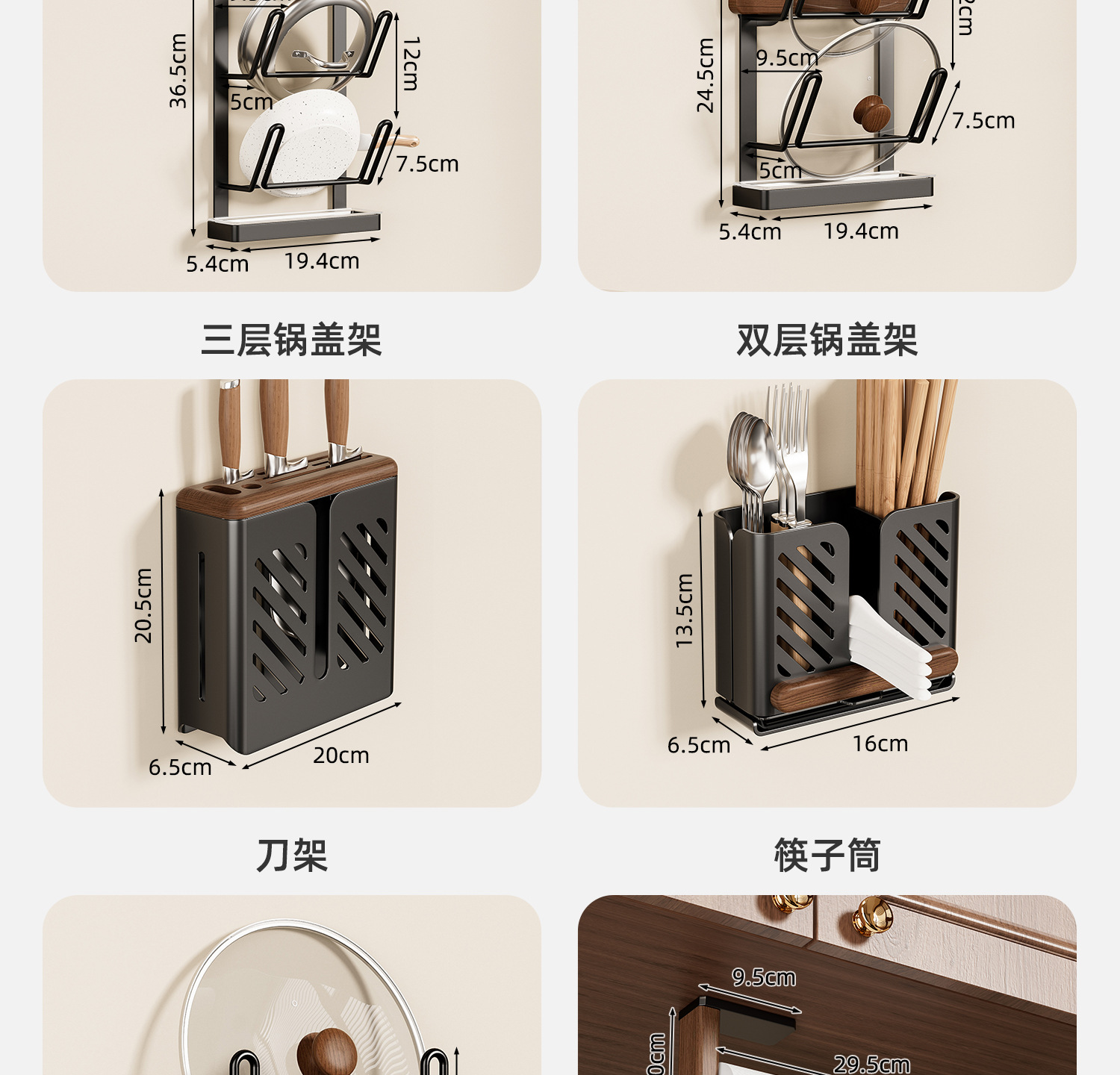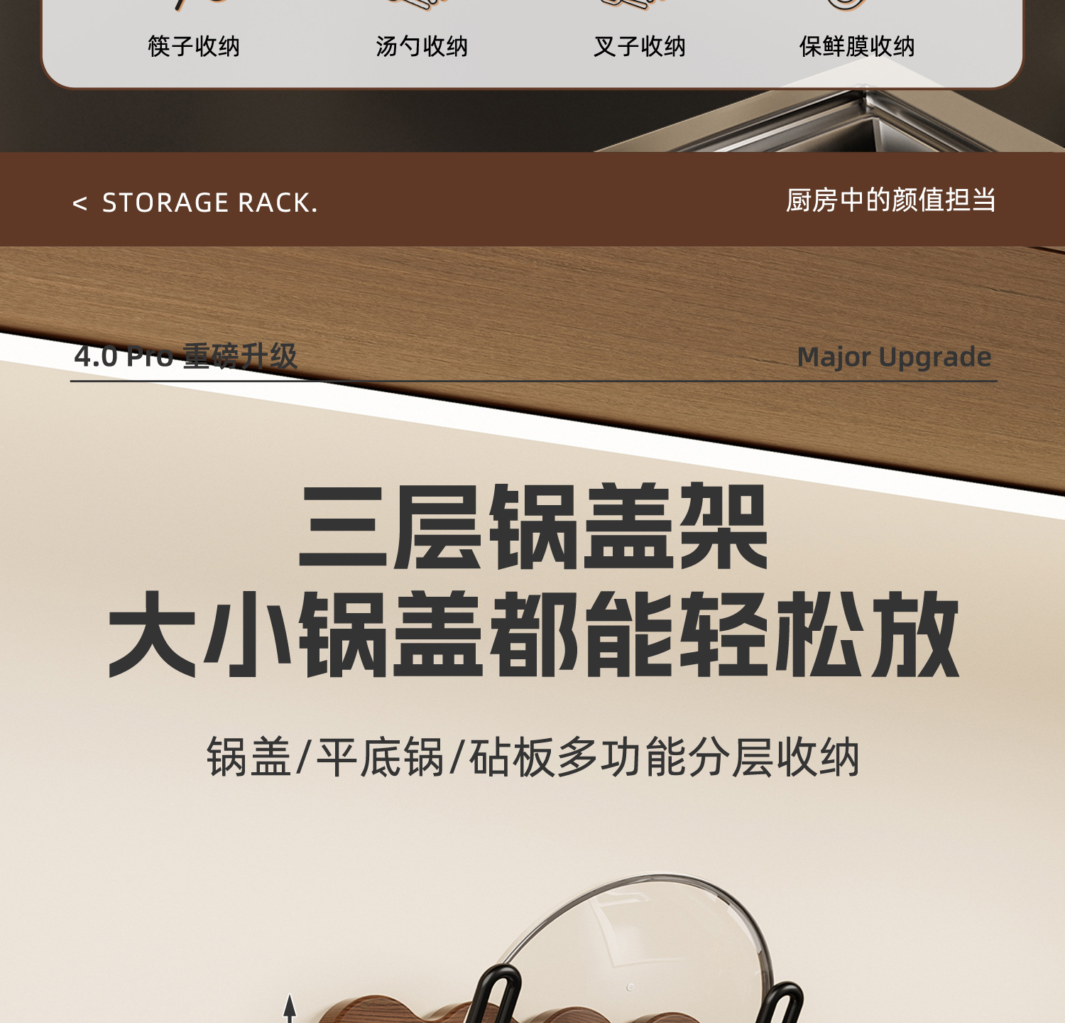 ブラックウォールナット丨三段鍋蓋ラック【取り外し可能】