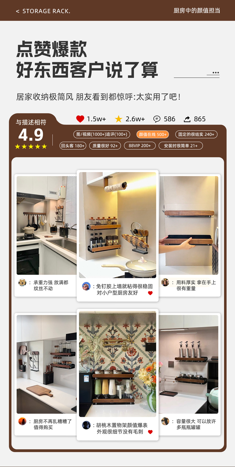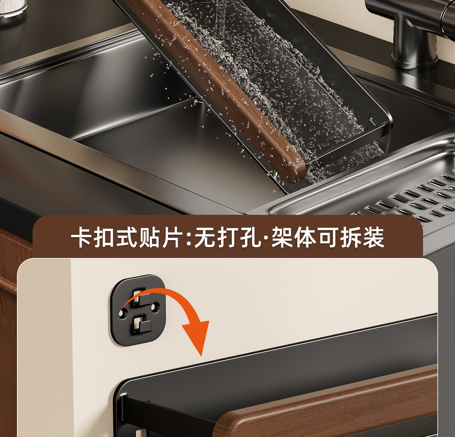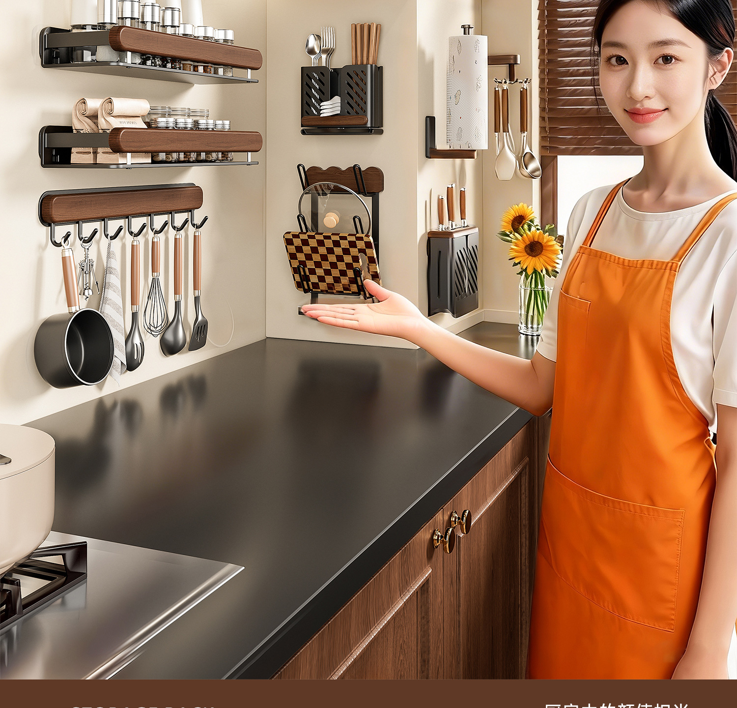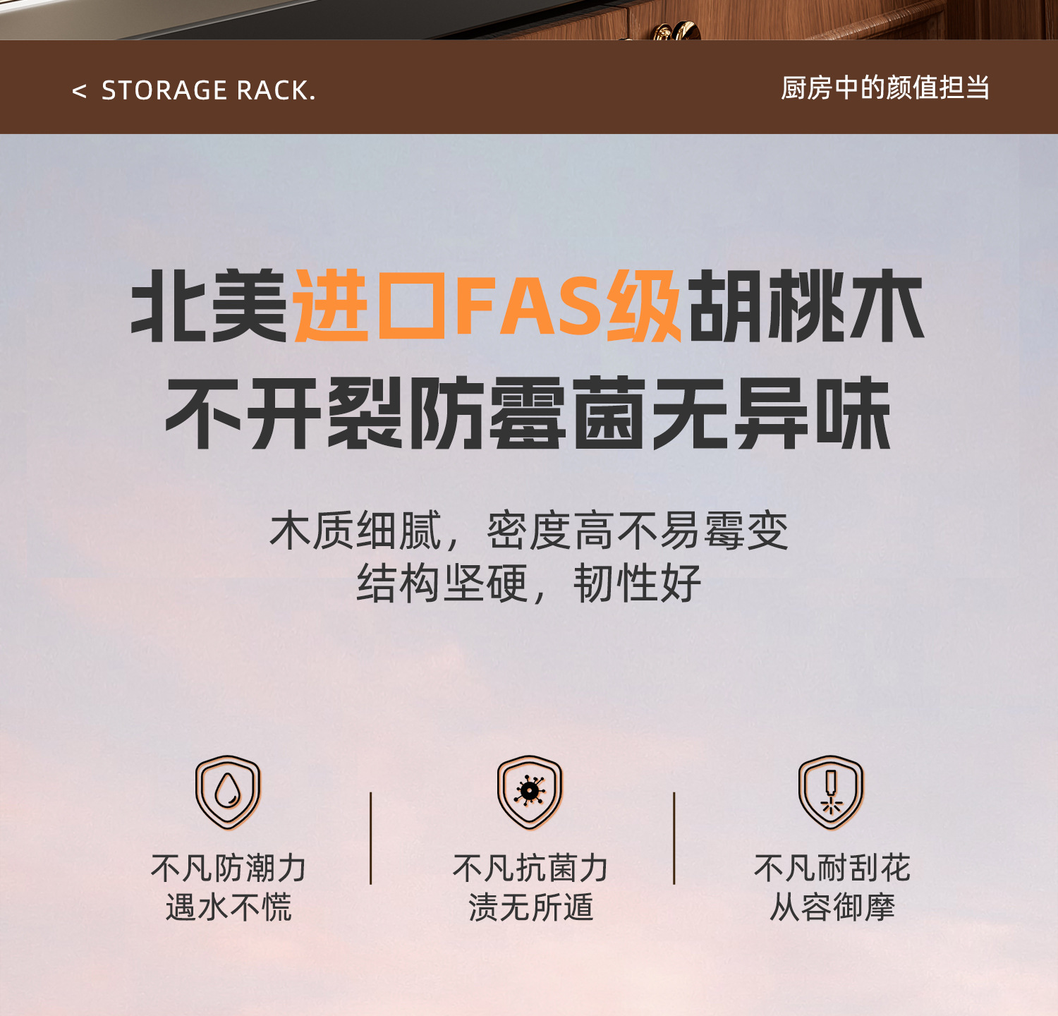 収納クリーニング用品-キッチンラック-ウォールナットキッチンセット