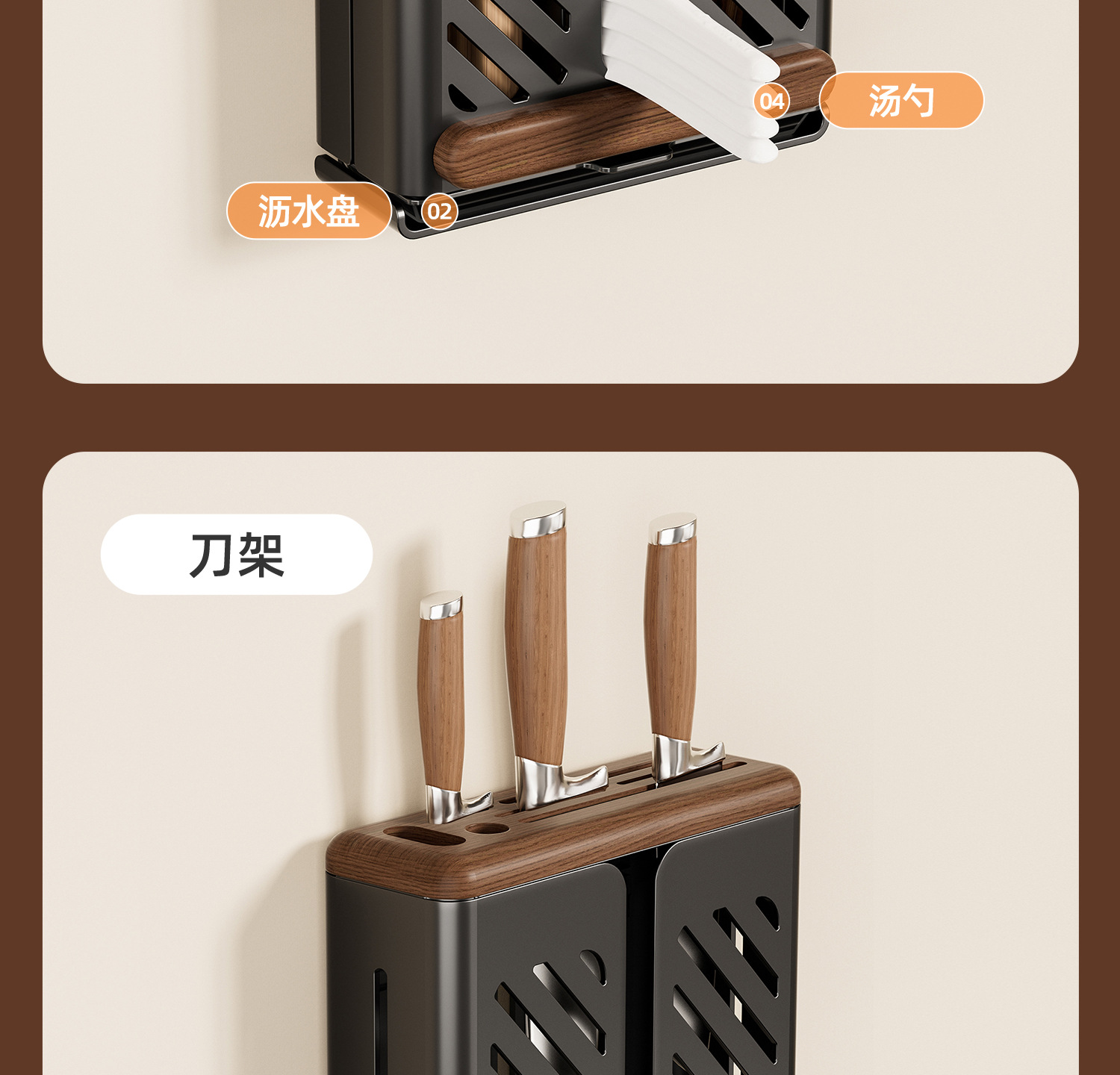 ブラックウォールナット丨ナイフホルダー【取り外して掃除可能】