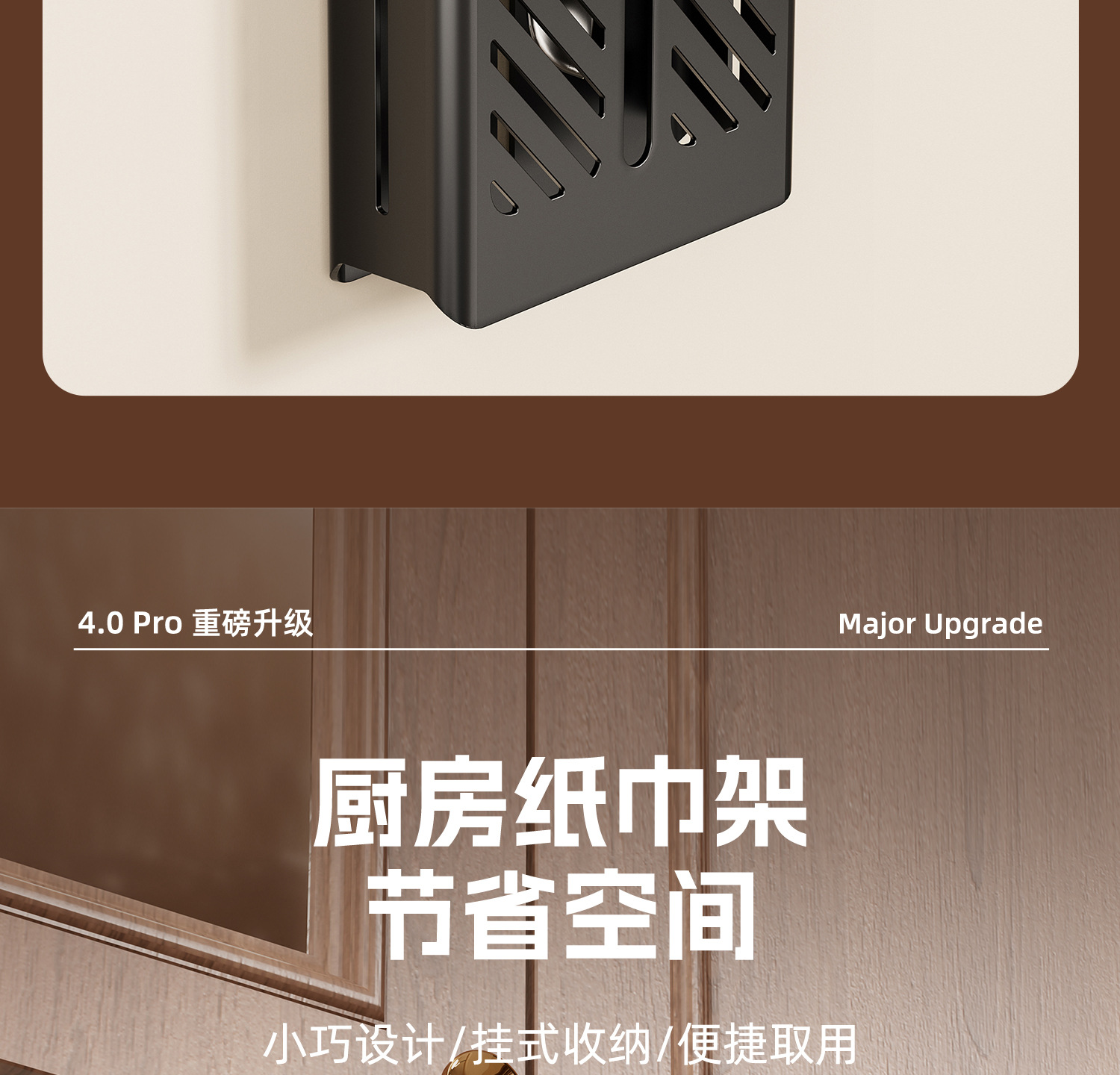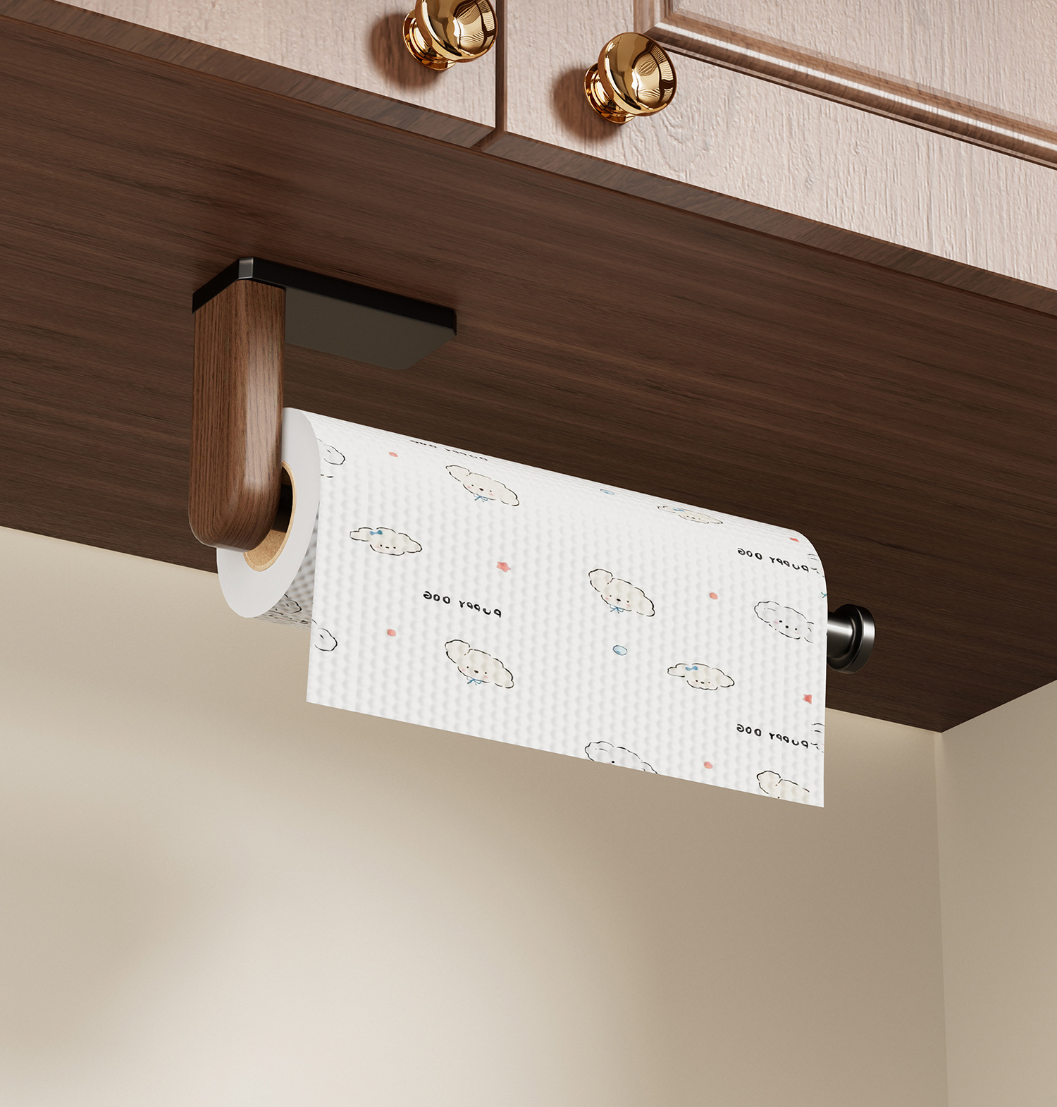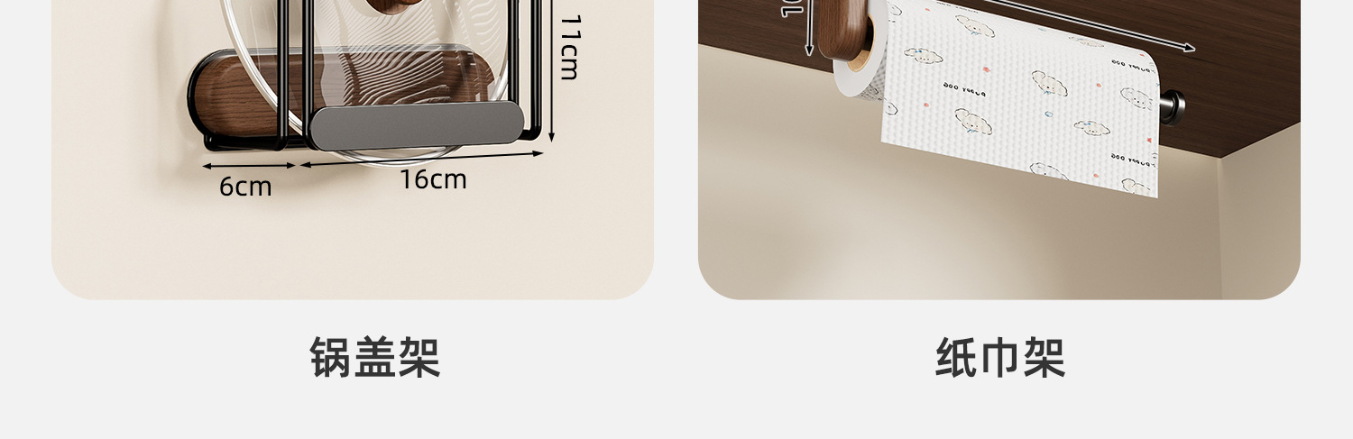 ブラックウォールナット丨キッチンペーパータオルホルダー【穴あけ不要】