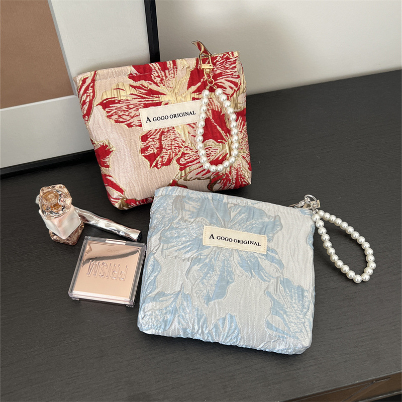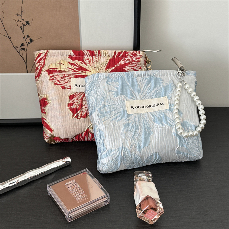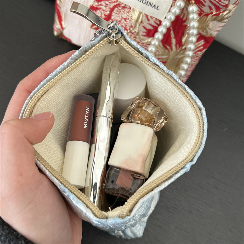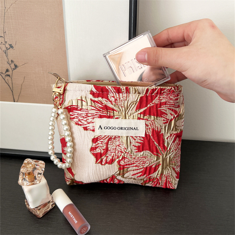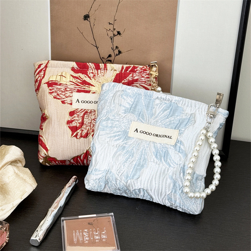 トランペットの高級感のある手は化粧バッグを持っています。布芸の財布を持っています。