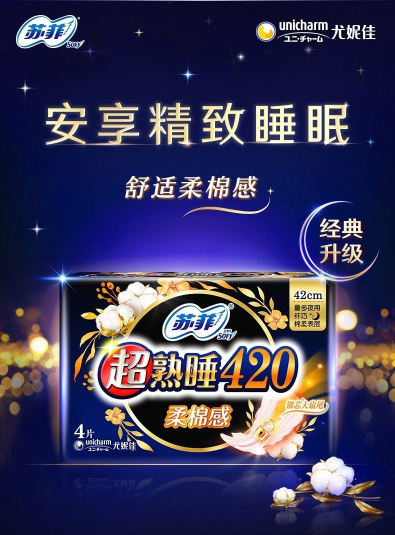超眠りソフトコットンフィール 420 夜用 4粒 箱サイズ:48パック バーコード:516714