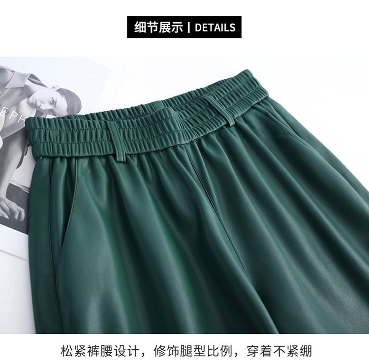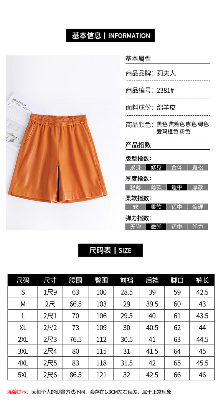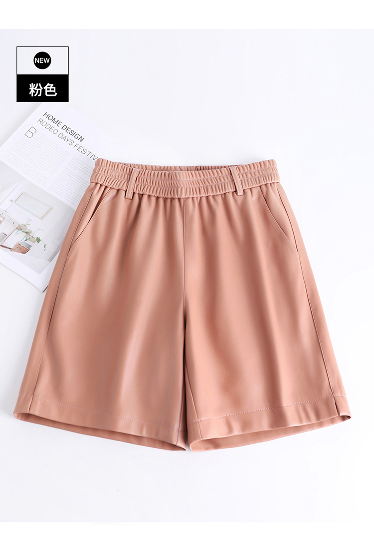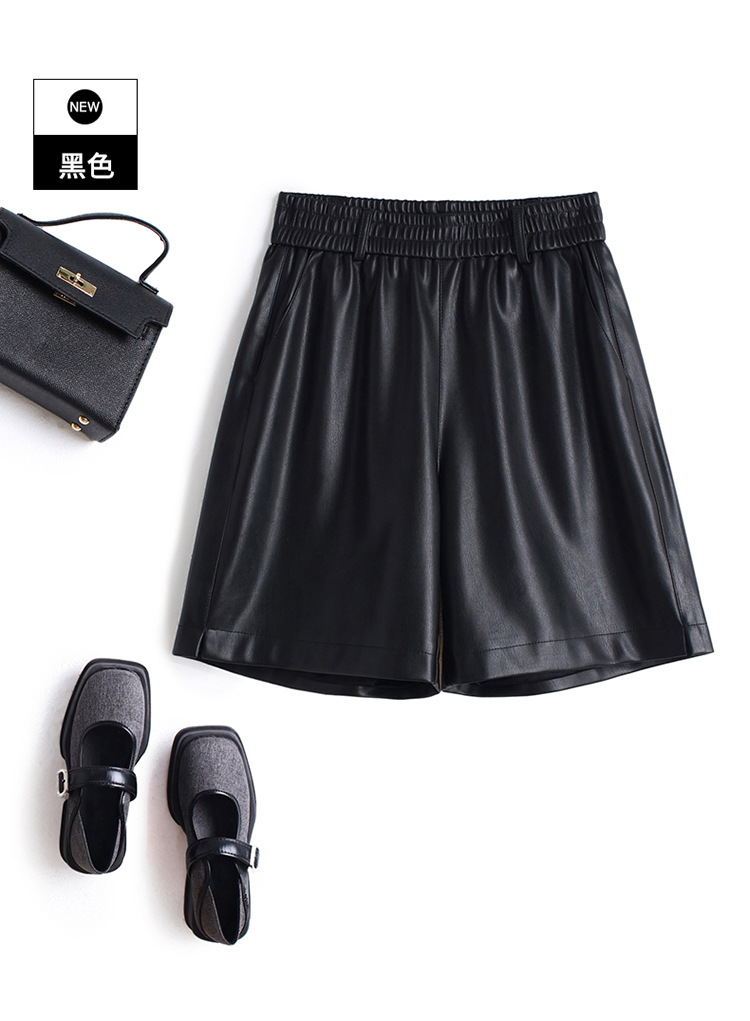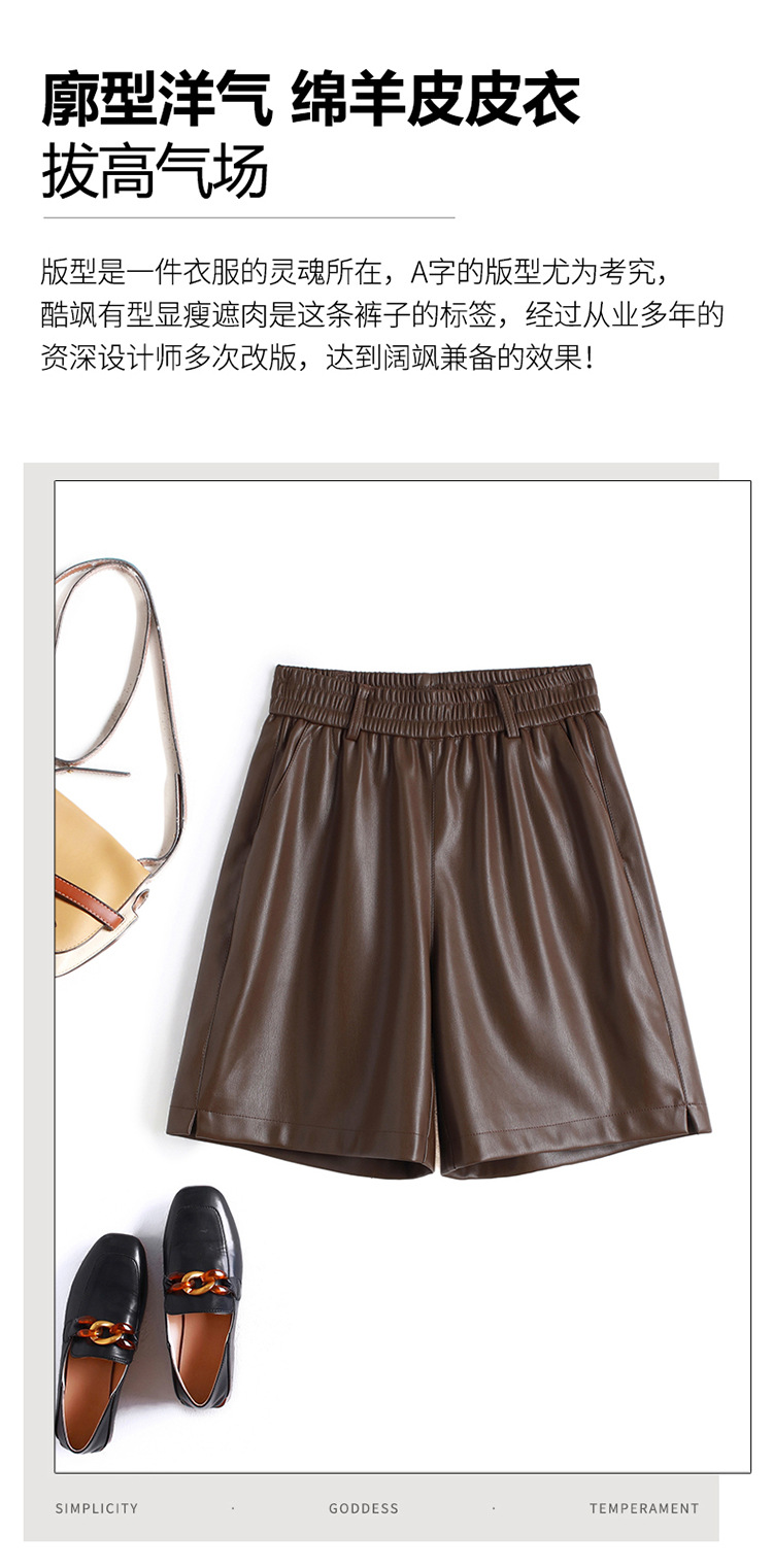 海寧本革ショートパンツ レディース 2025秋冬 羊革パンツ ハイウエスト ワイドレッグ 細見え ブーツパンツ 脚長効果