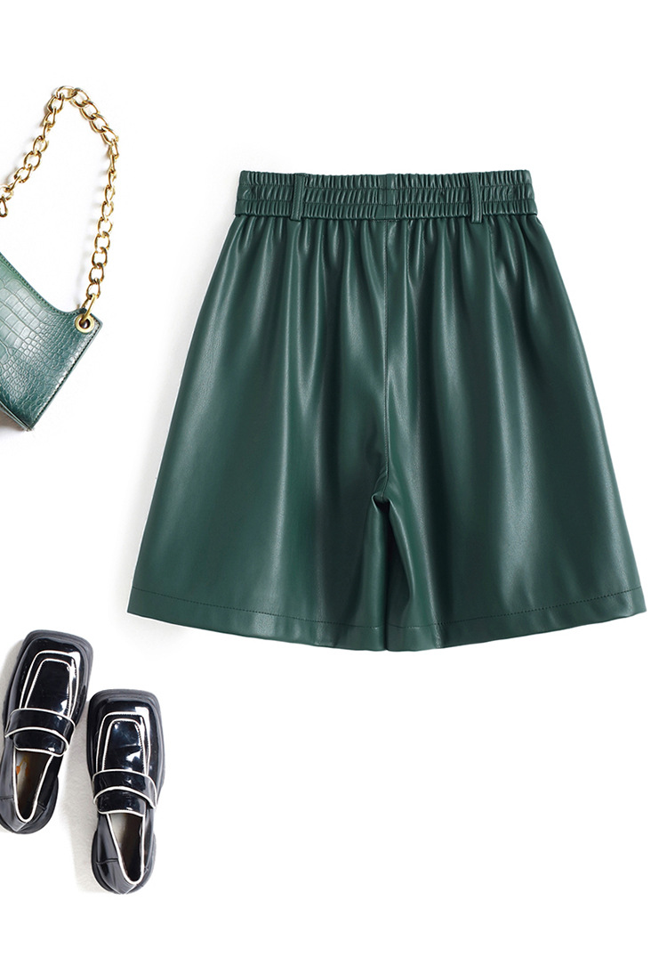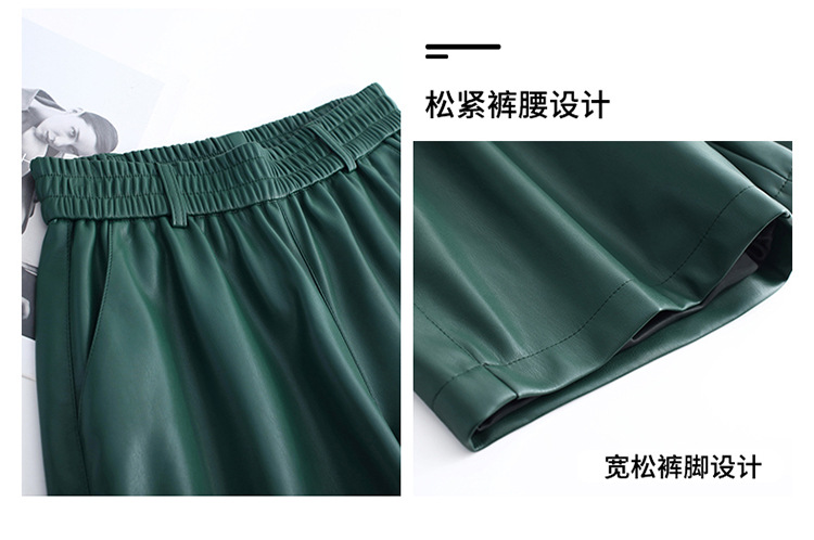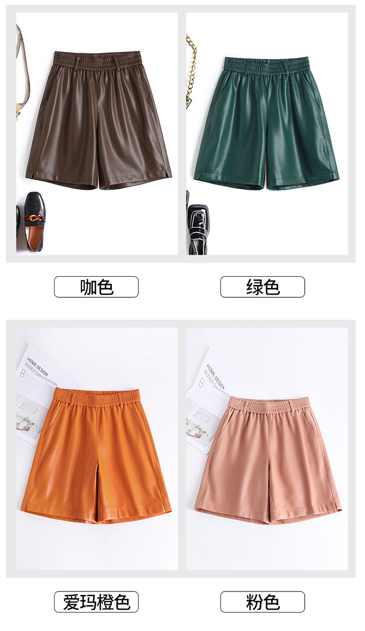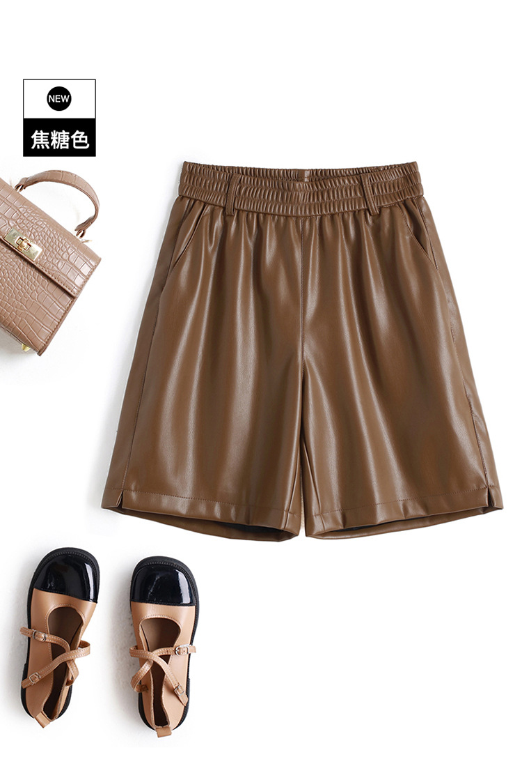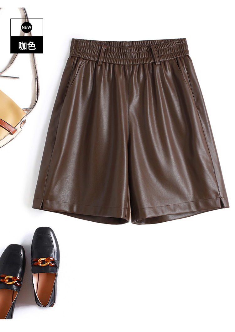 海寧本革ショートパンツ レディース 2025秋冬 羊革パンツ ハイウエスト ワイドレッグ 細見え ブーツパンツ 脚長効果