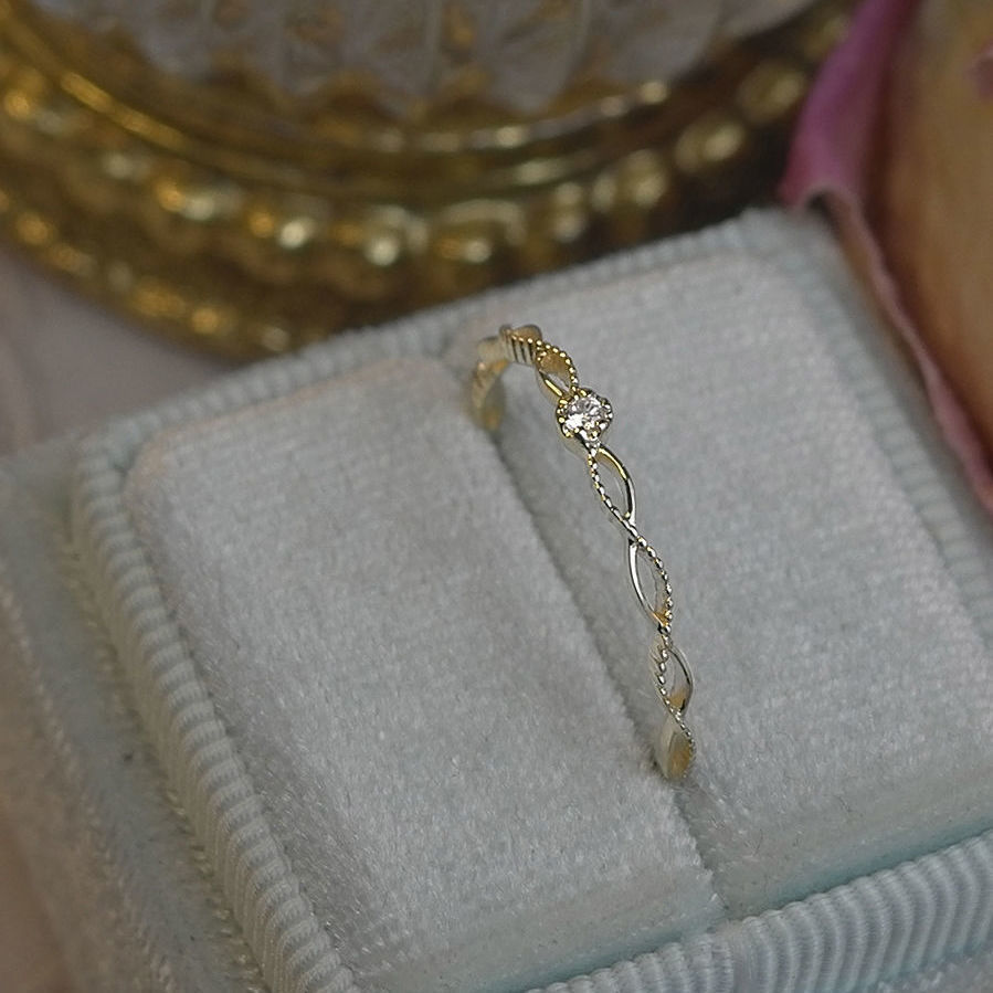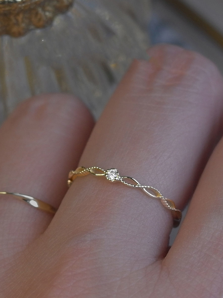 【透かし網】日系の軽い豪華な指輪の透かし彫りの細いドリルの高級感の女性のクリスマスのプレゼントの百合のシンプルな指輪